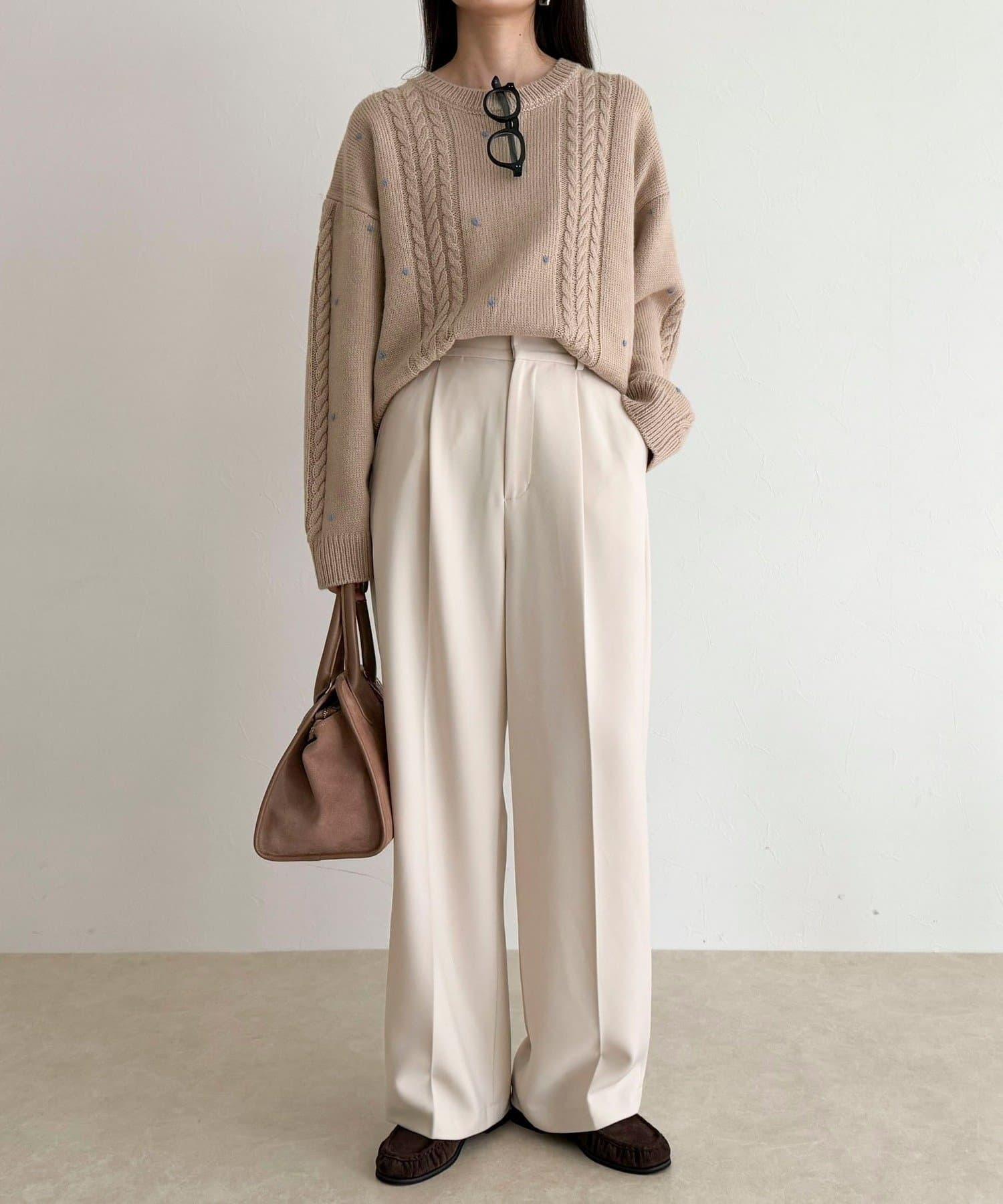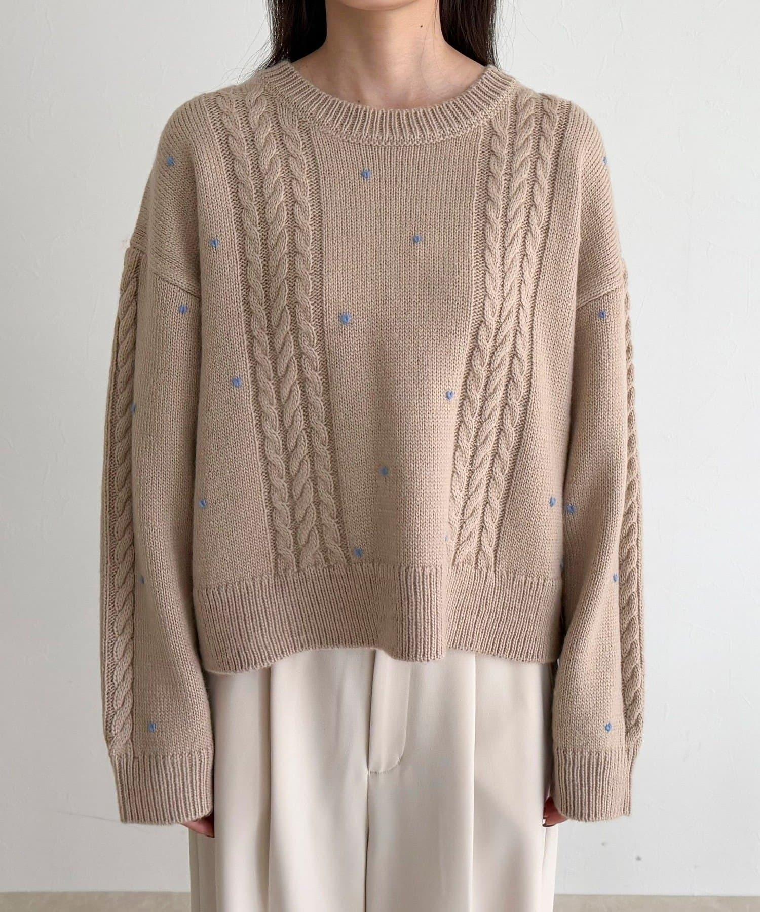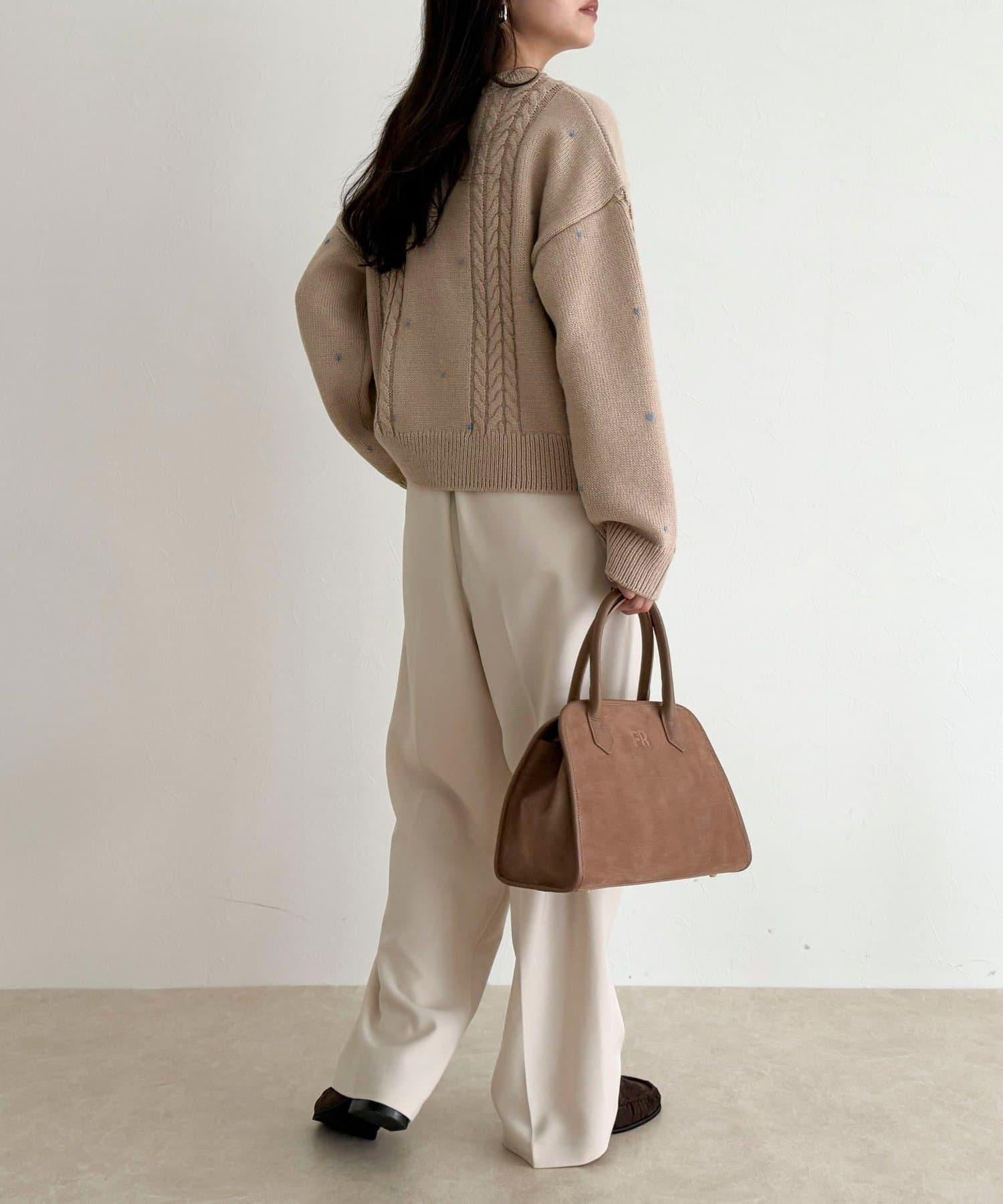 身高 156 厘米的工作人員(穿 38 號):心形刺繡近看很可愛,遠看也不浮誇,我可以像大人一樣穿它!即使疊穿也不會有緊繃感,很有可能作為秋冬針織衫的主角活躍起來◎。