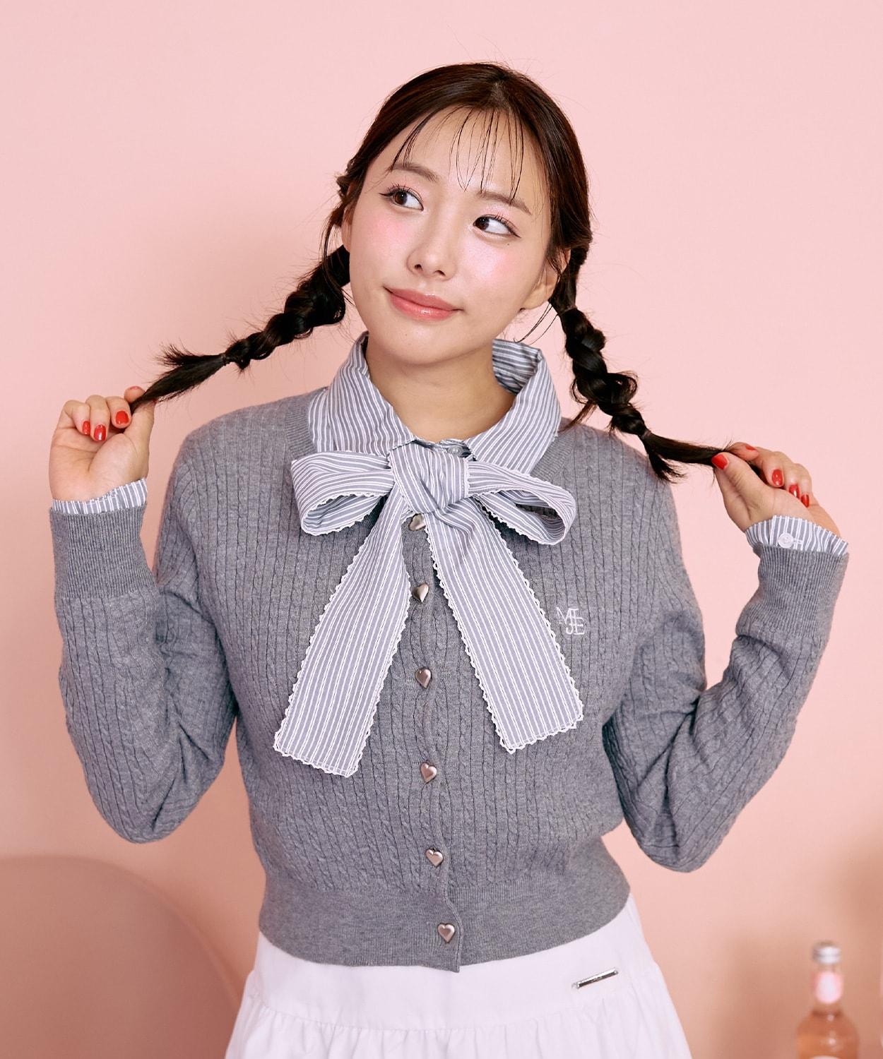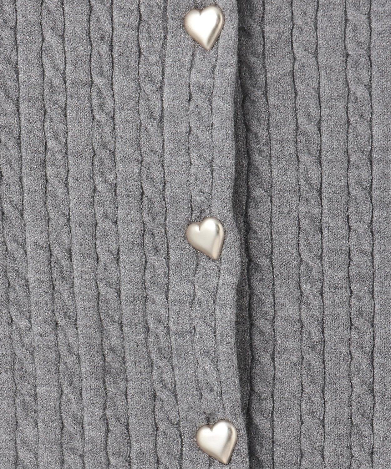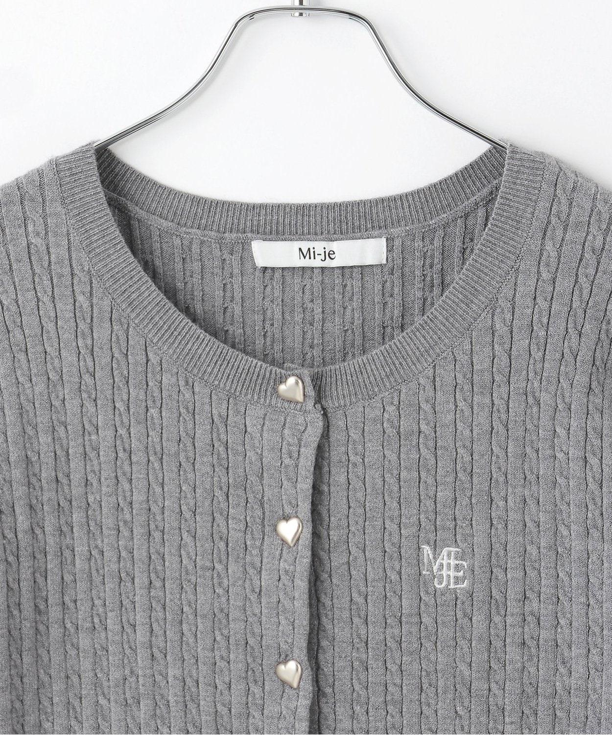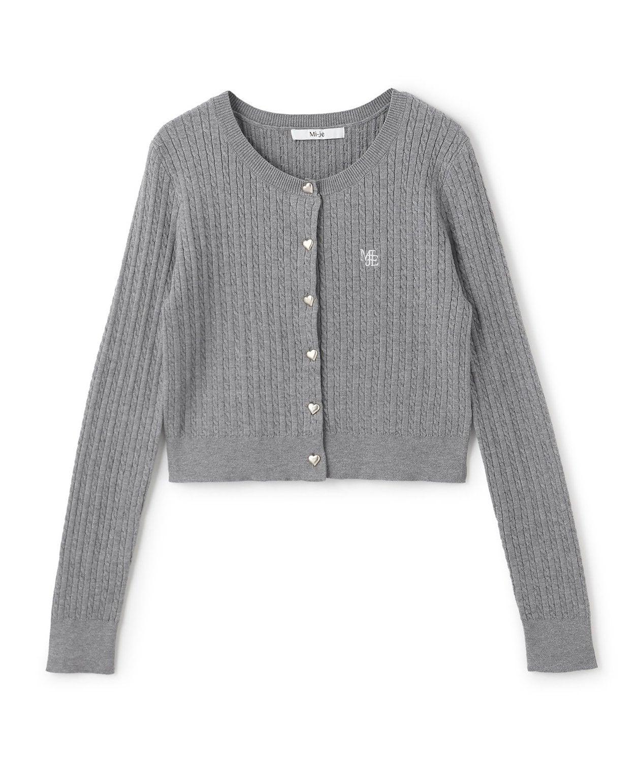 此款 開衫 具有前衛的外觀,心形紐扣更顯甜美! 柔軟的針織紗線讓穿著非常舒適! 胸前的原創徽標刺繡十分搶眼!纖細的電纜圖案給人淑女、精緻的印象,是一款易於打理的設計。