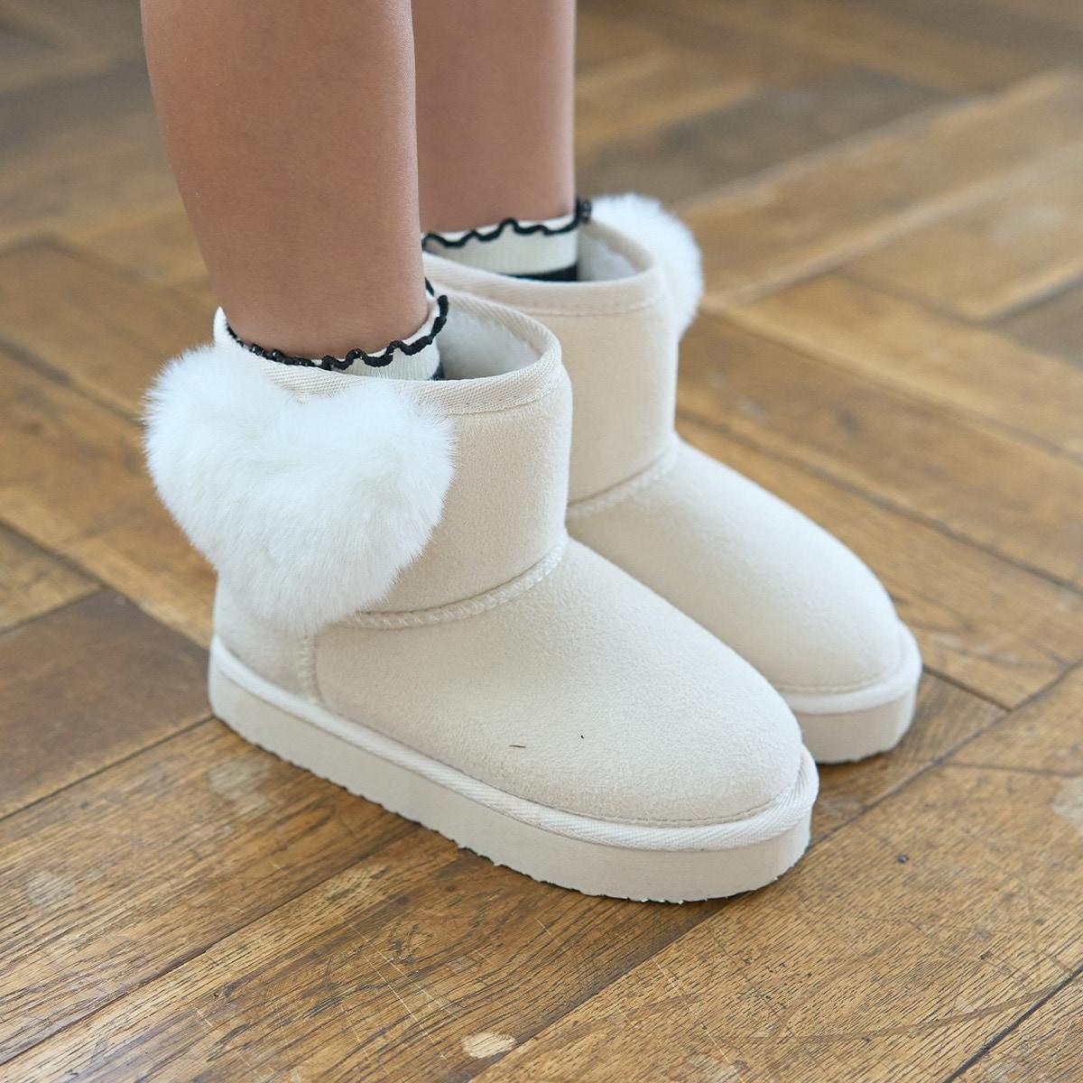 今年的仿毛長靴將雙腳包裹在溫暖之中,加上可愛的心形皮草!
