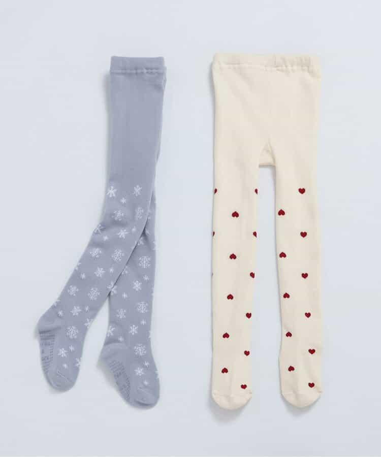 從腳部開始,"apres les cours "緊身褲和襪子 "Heart and Snow Pattern Tights "設計時尚。與大福一起享受造型樂趣。