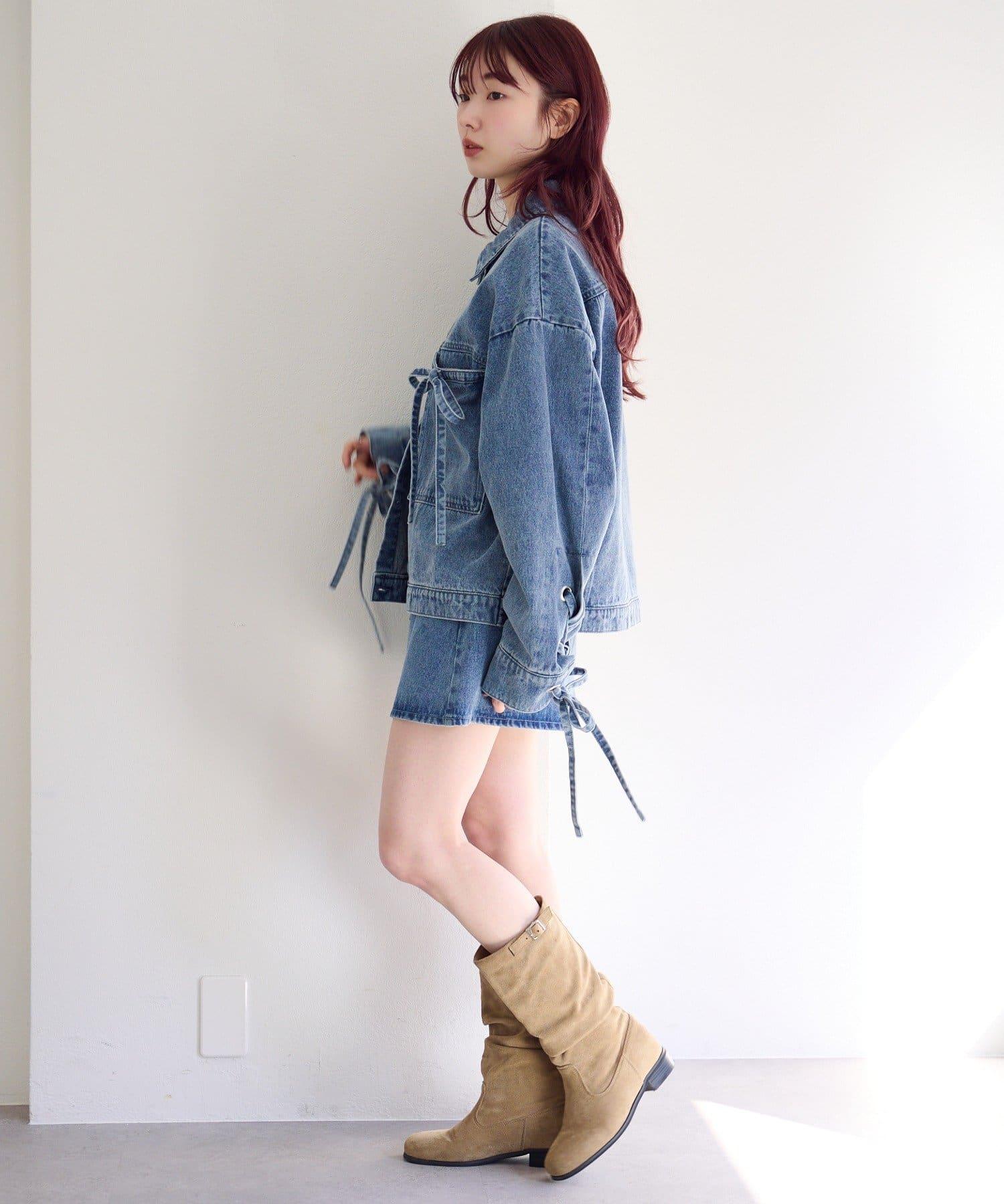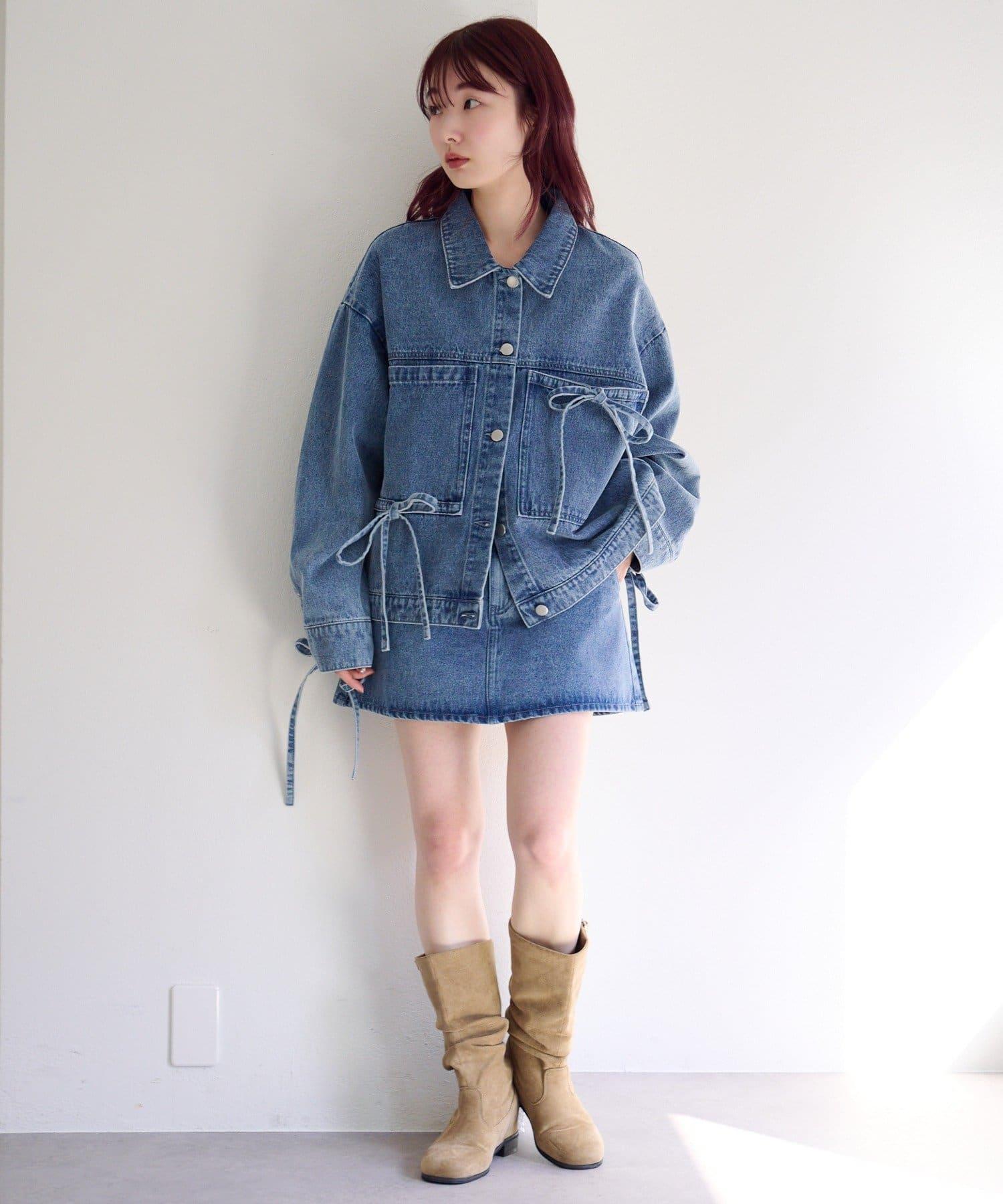 成套搭配 翻蓋設計 牛仔 迷你半身裙