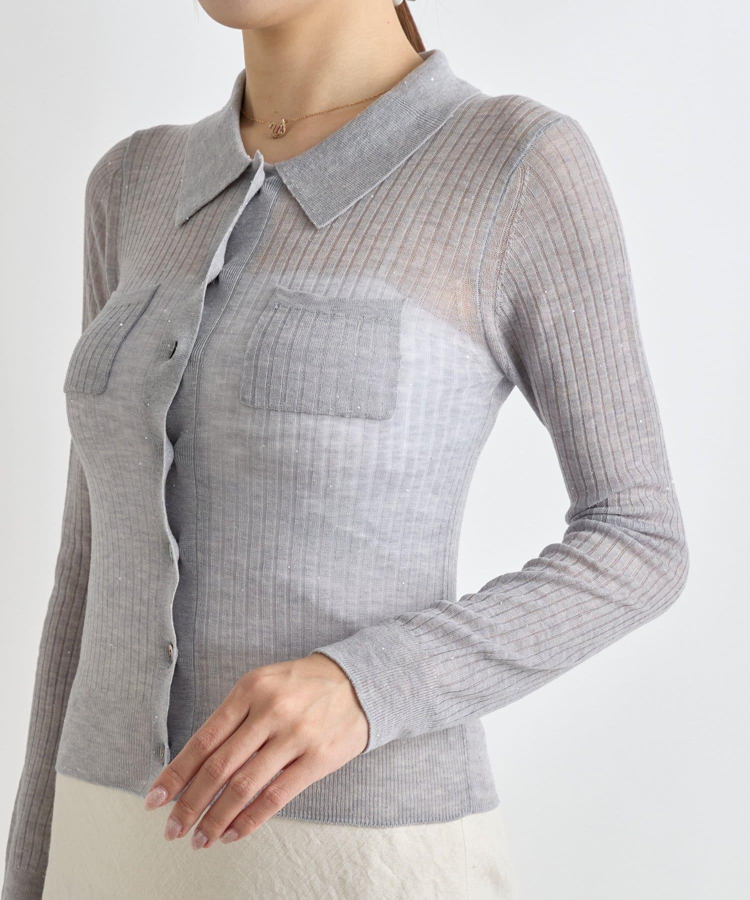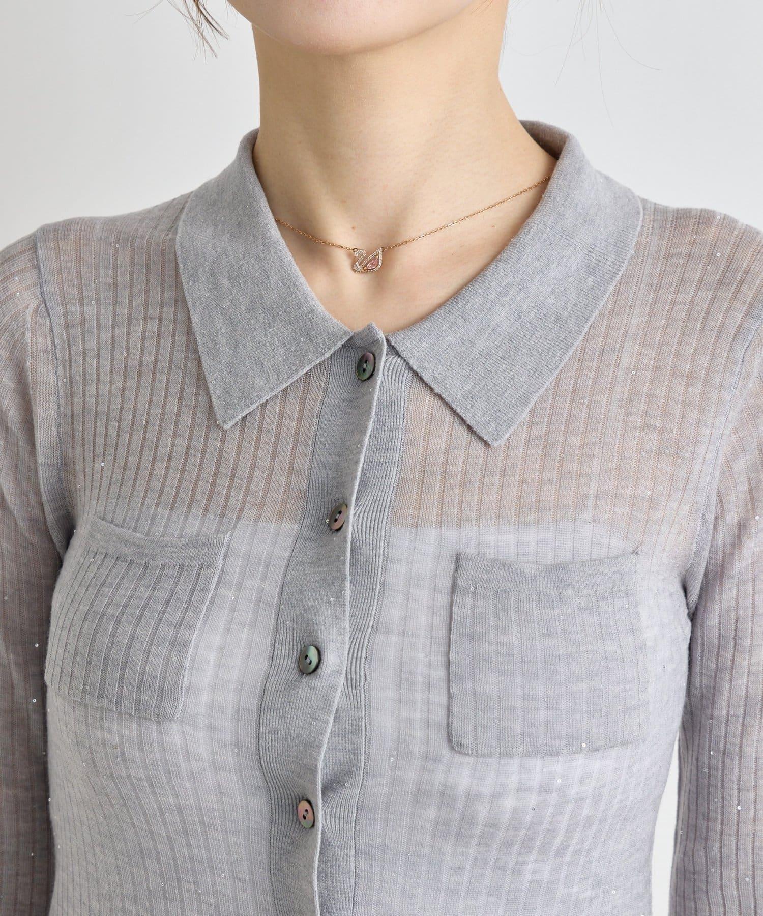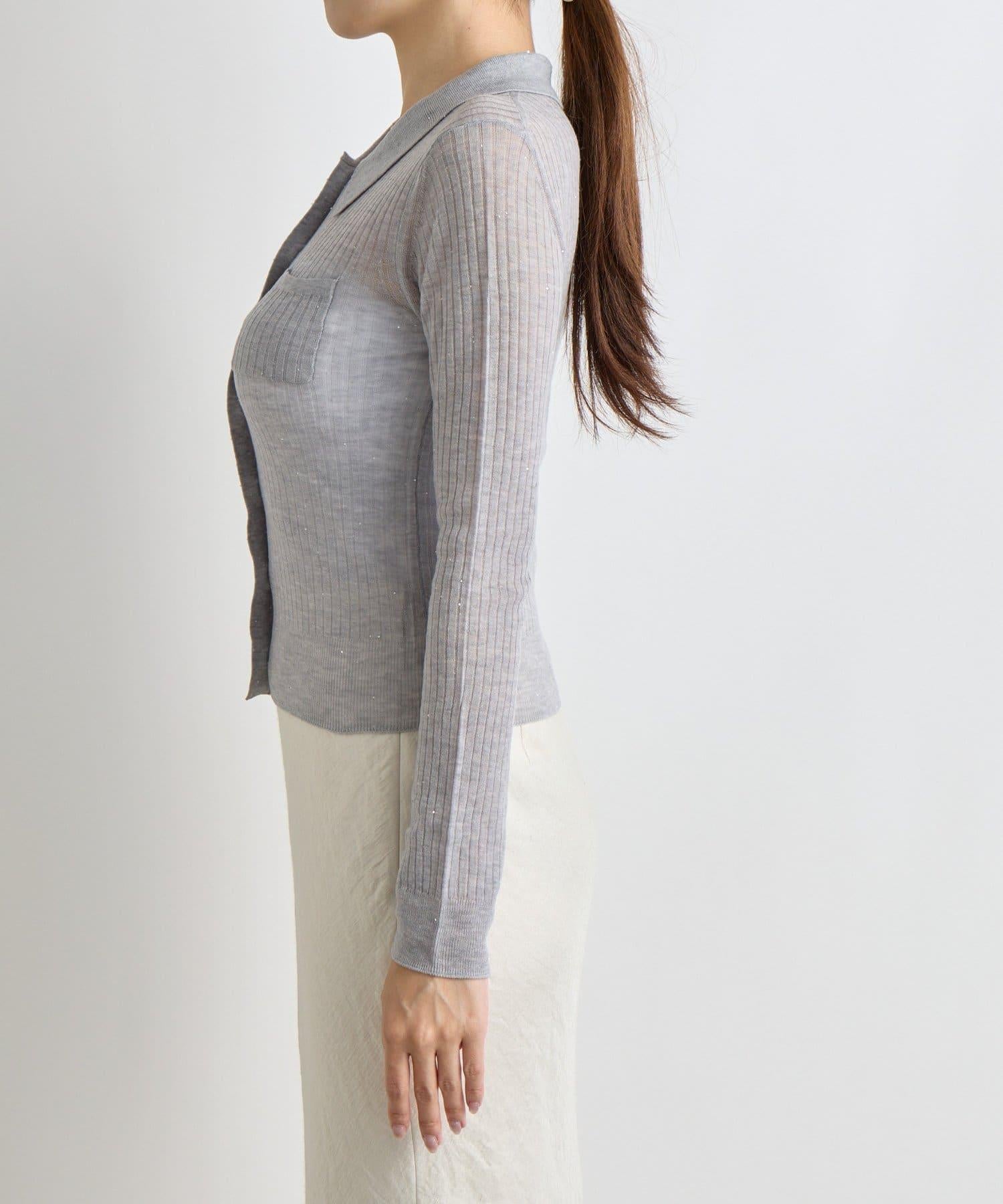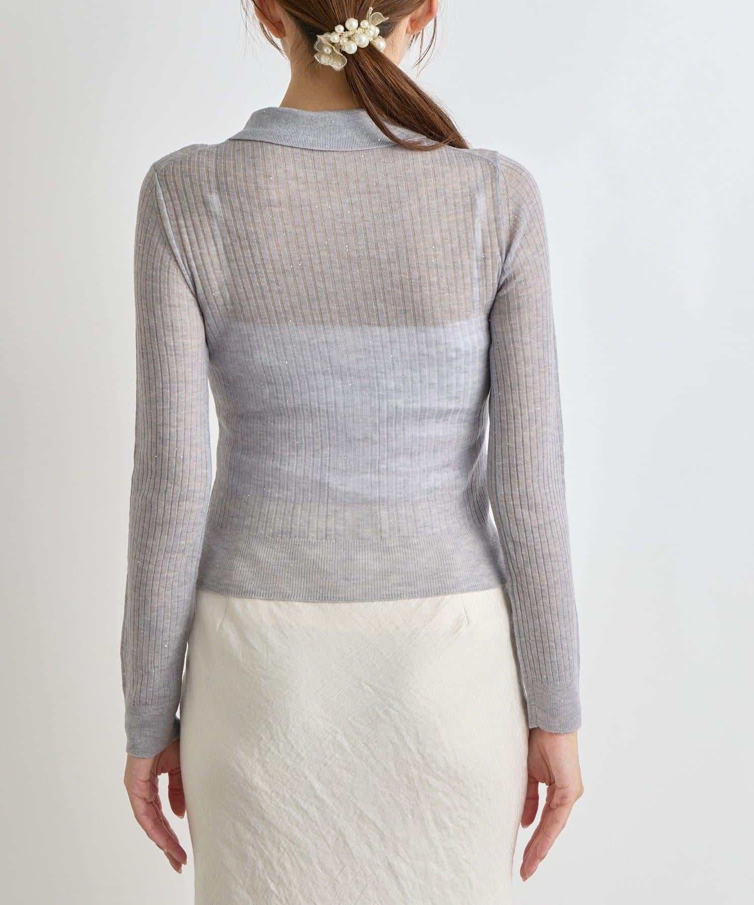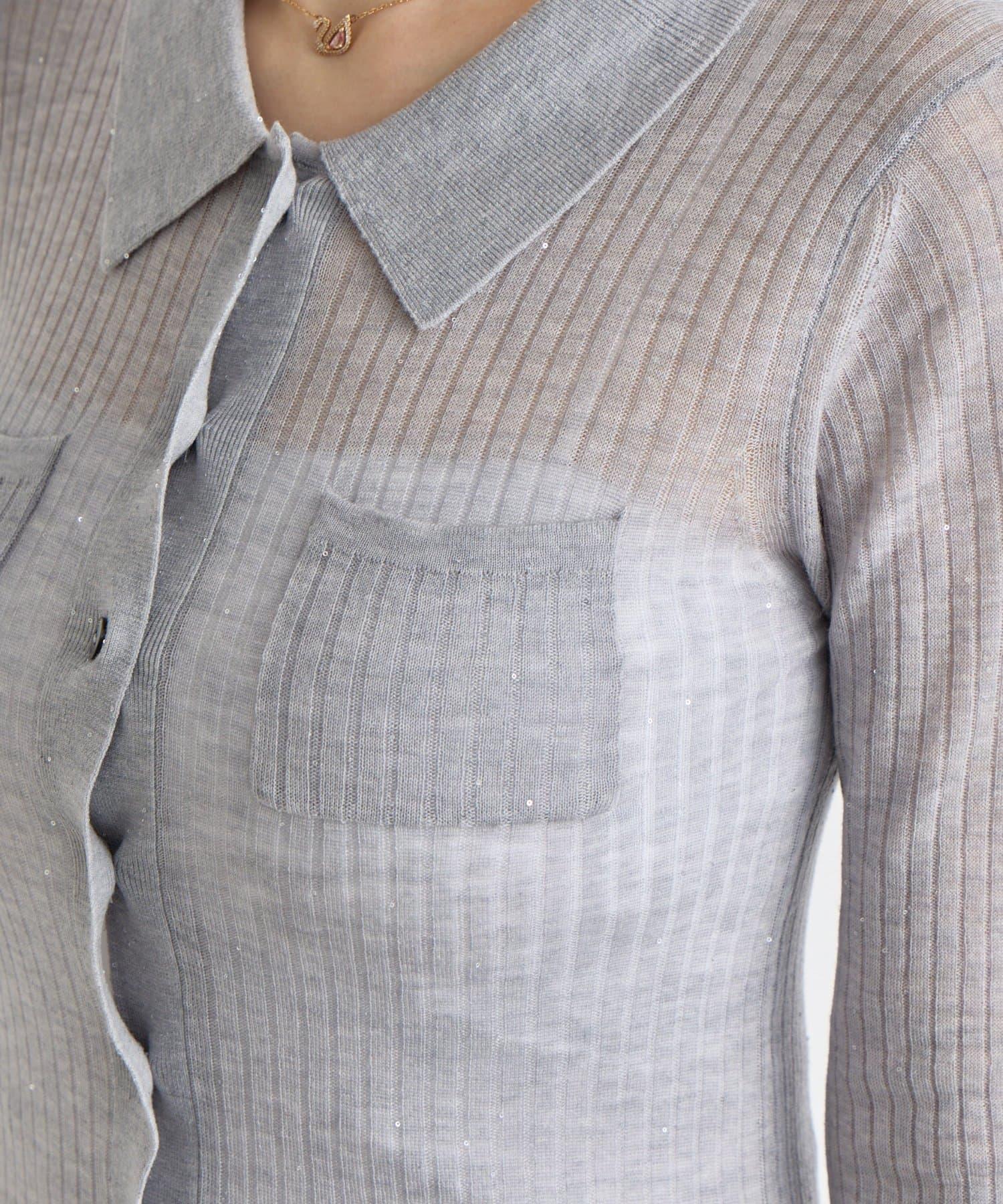 【成熟感透視針織衫】透視亮片翻領羅紋針織衫