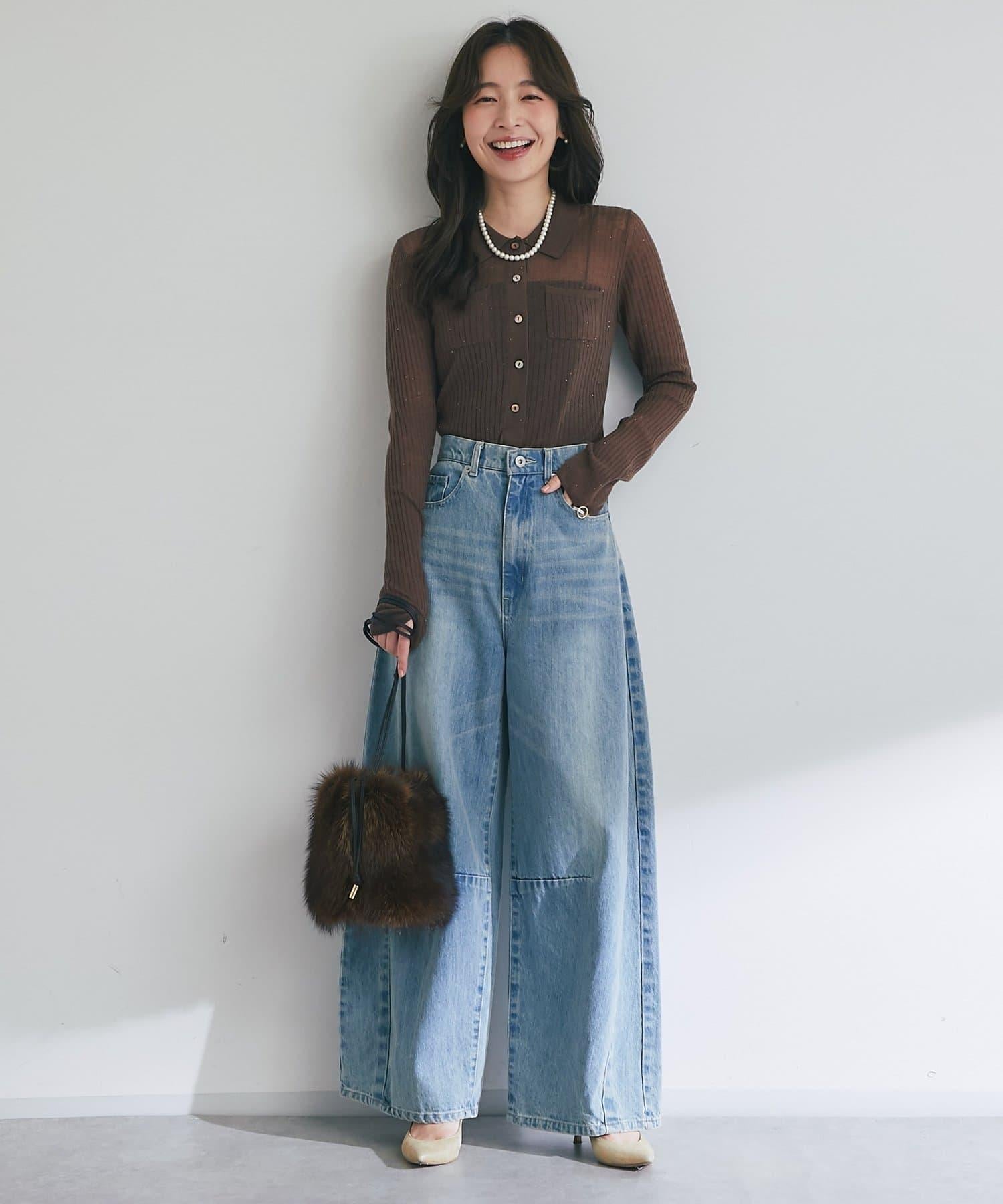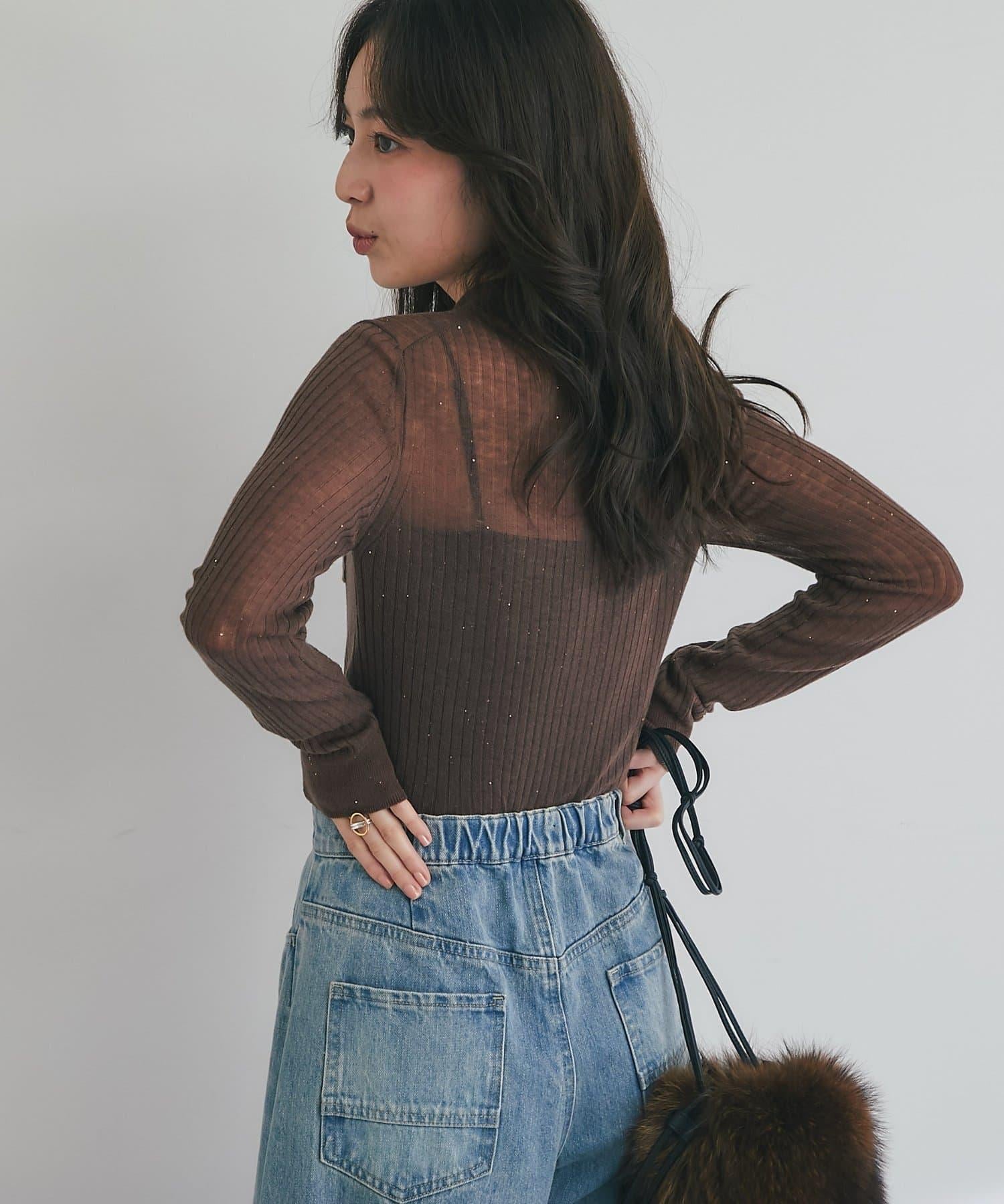 透視亮片雙向羅紋針織衫(LBZ1052205A0010)