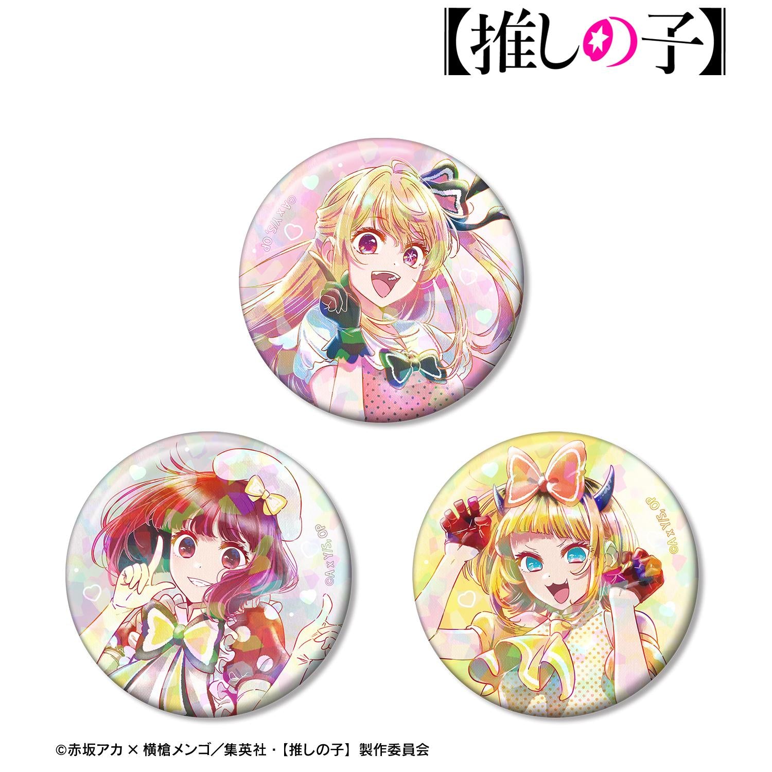 露比、有馬加奈和孟喬的插圖被賦予了新的魅力,並採用全息圖工藝製作了這套三枚罐頭徽章。