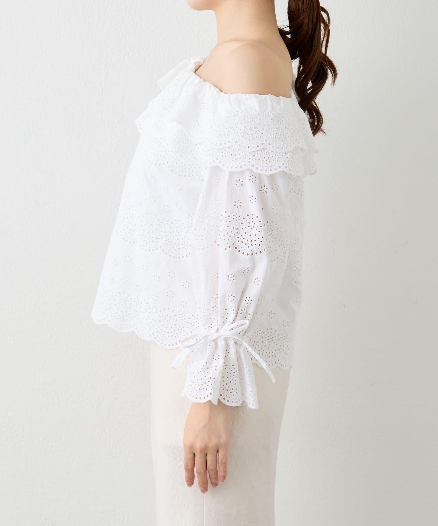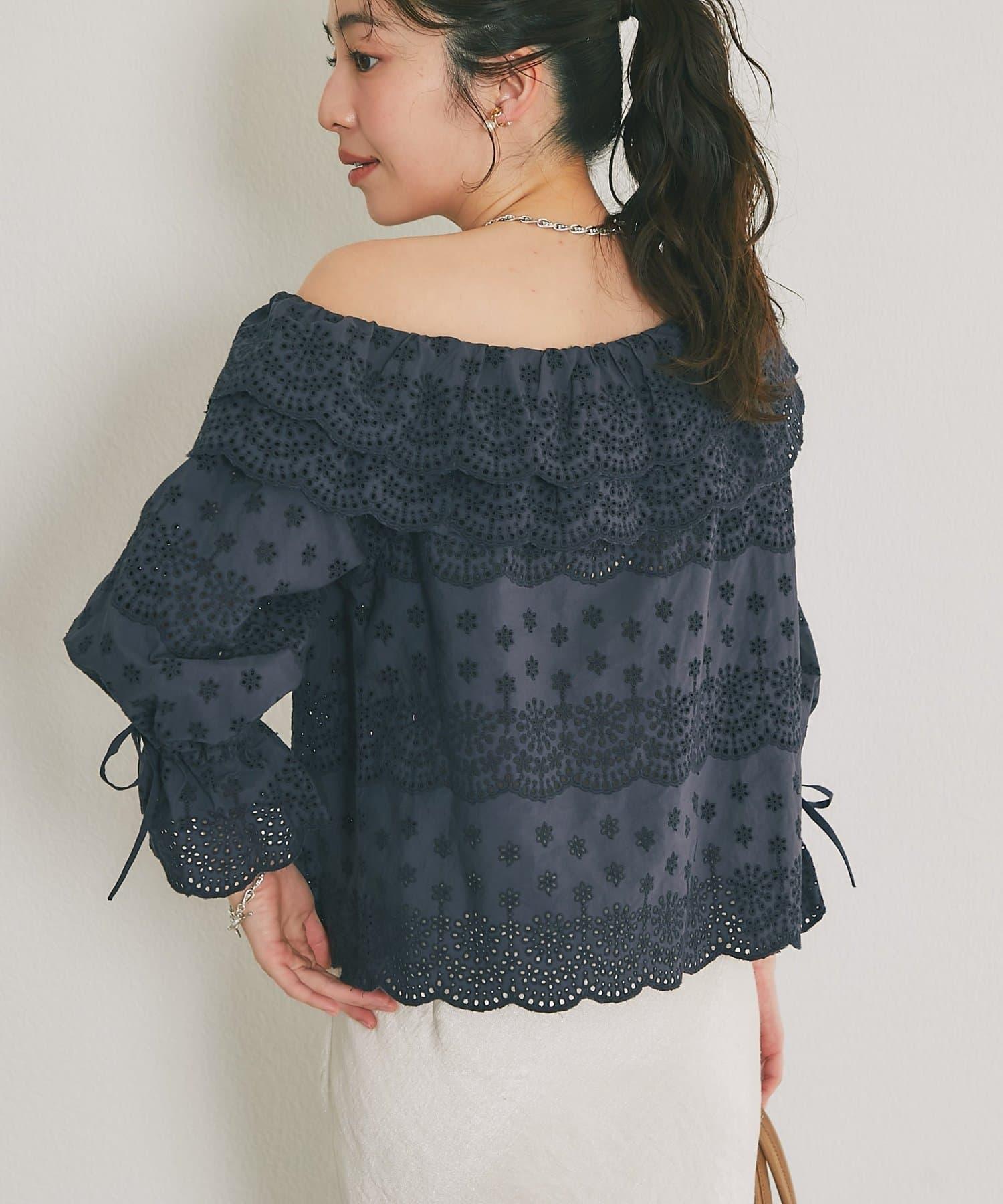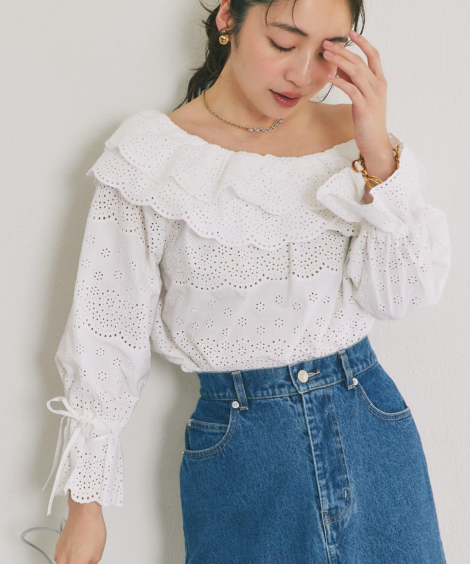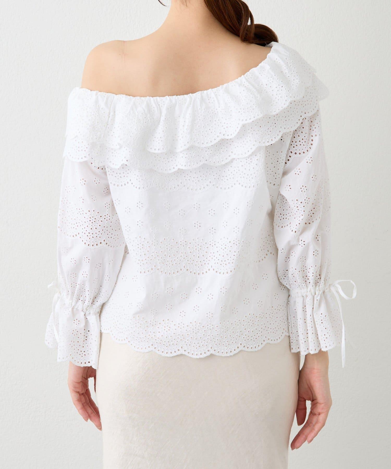 單肩流蘇設計上衣,飾有扇形刺繡。