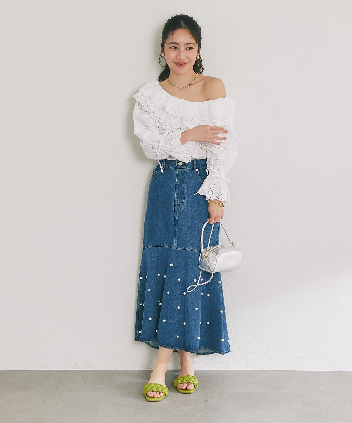 短款的長度使扇形下襬成為從下往上穿時的一個亮點。