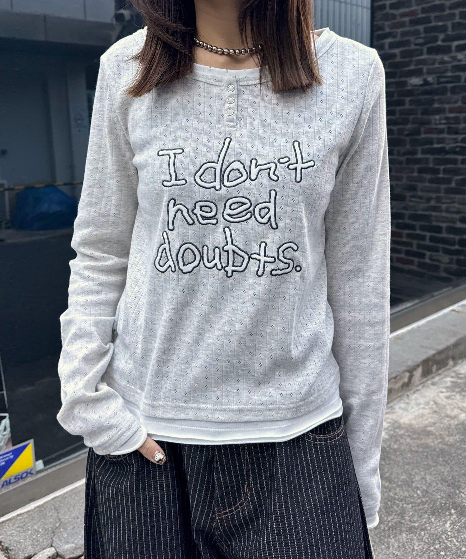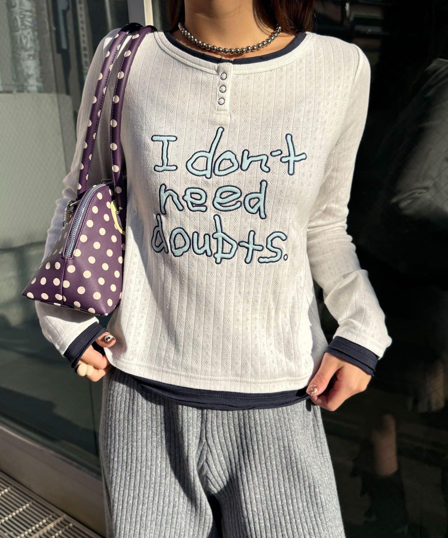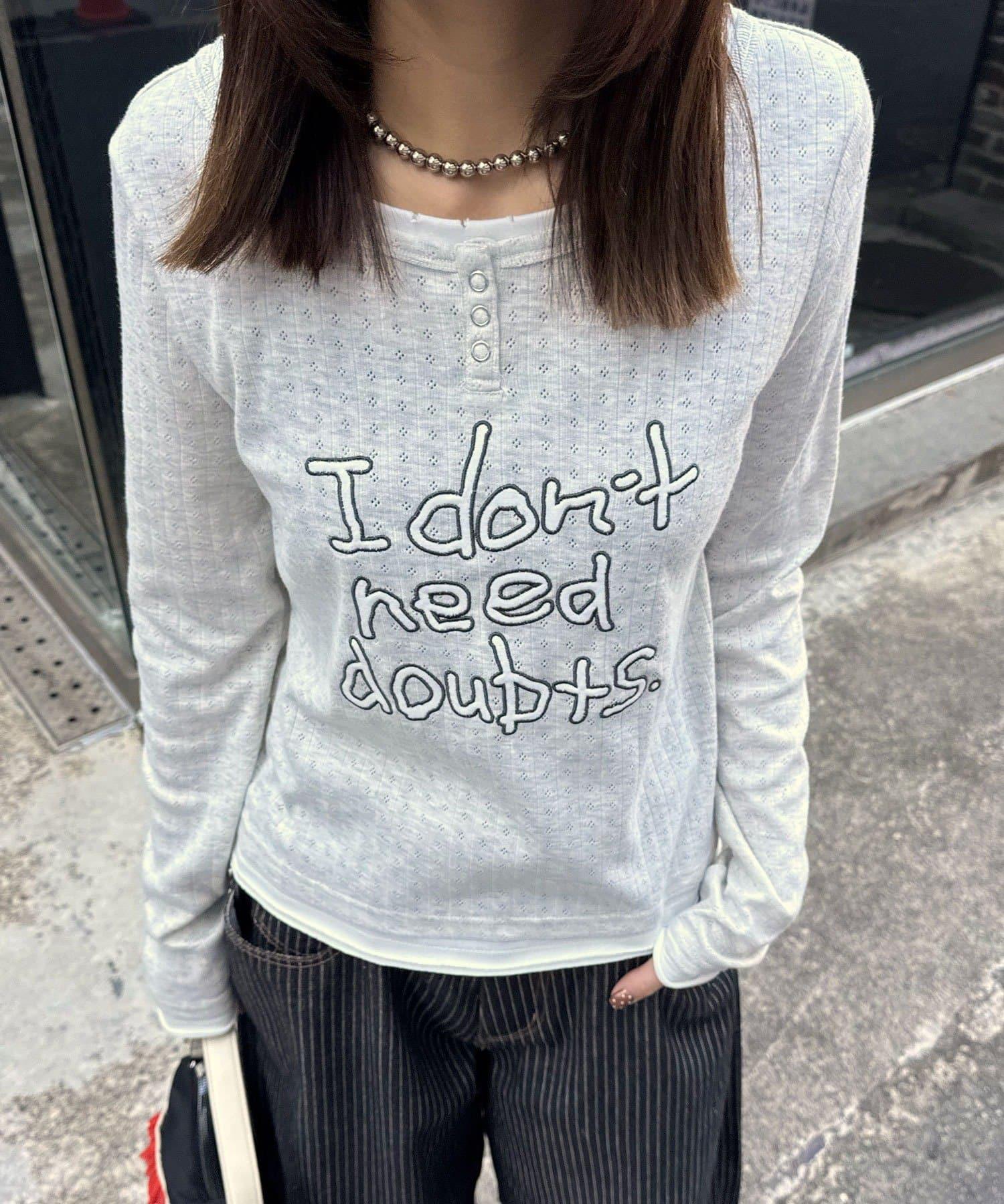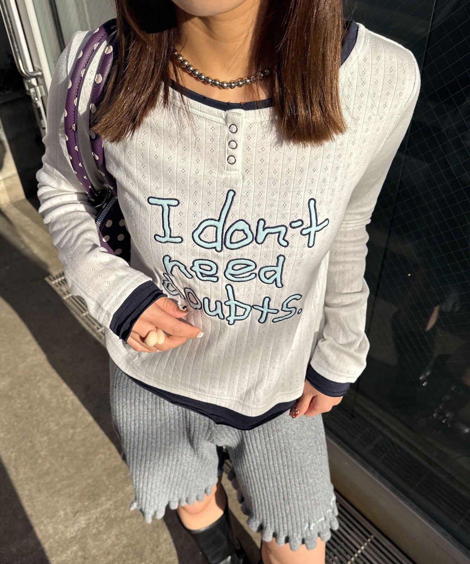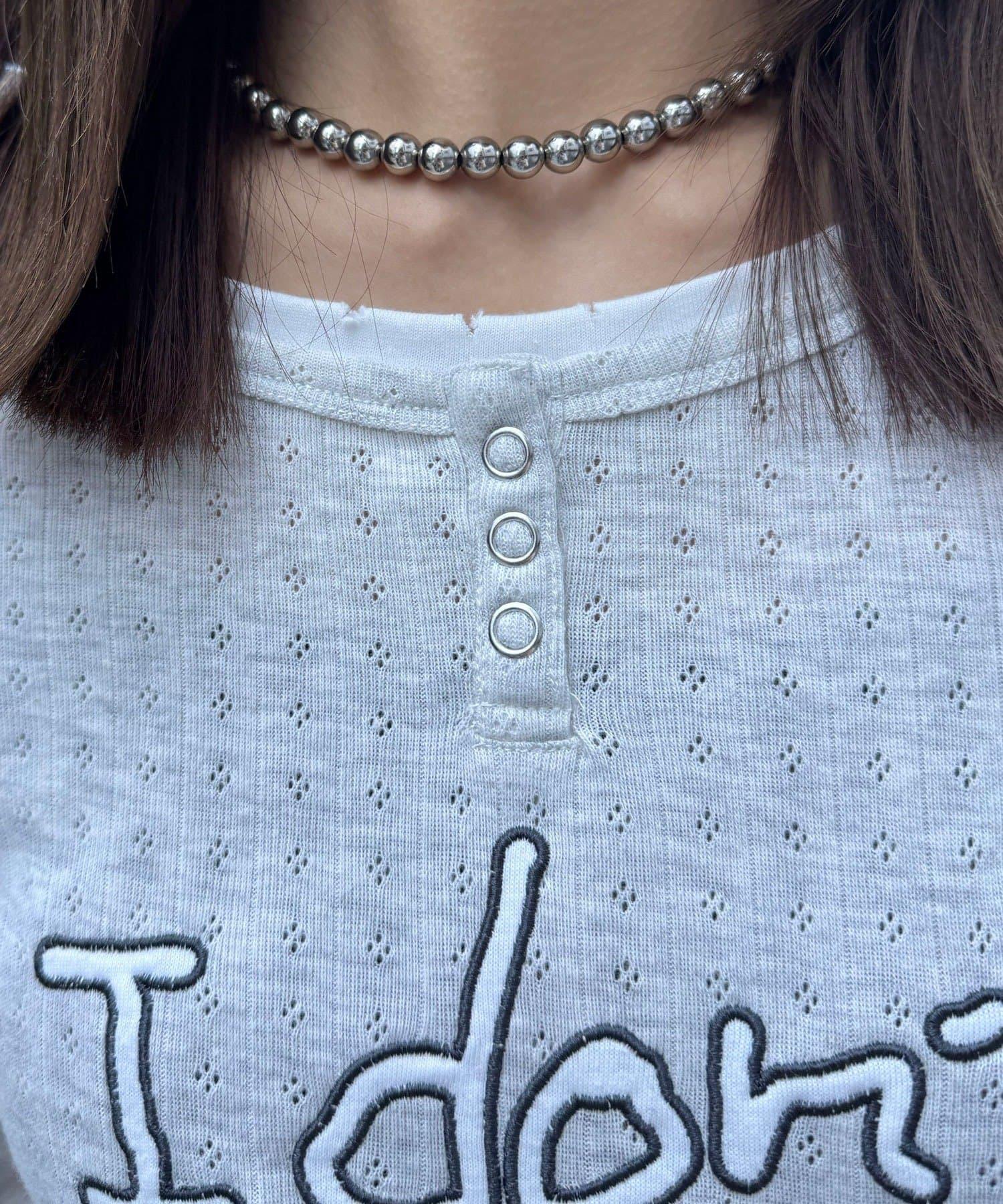 眼線織物雞心領上衣,配以醒目的手繪徽標刺繡。