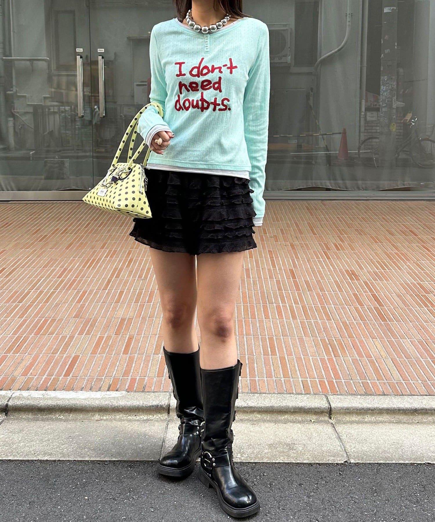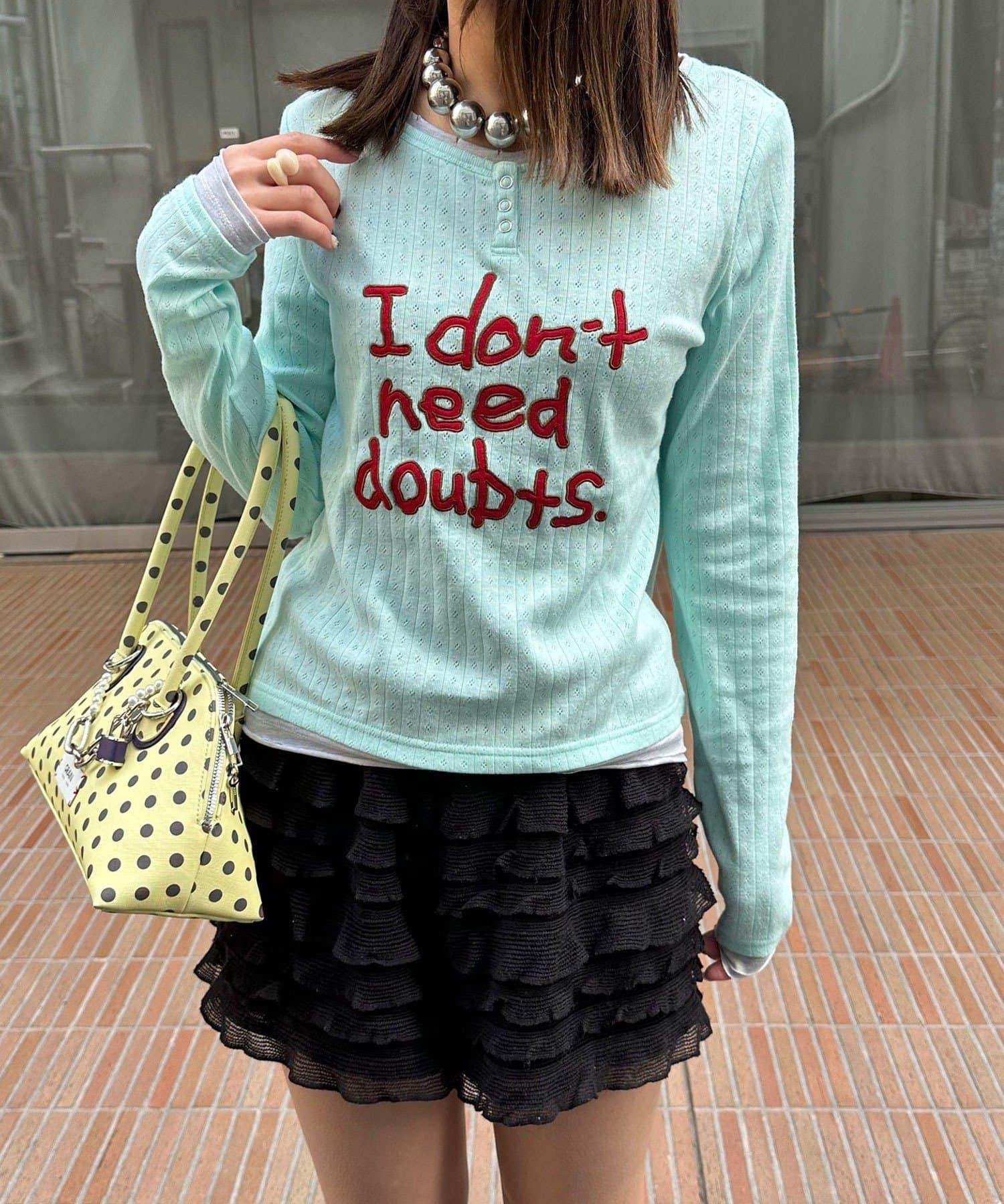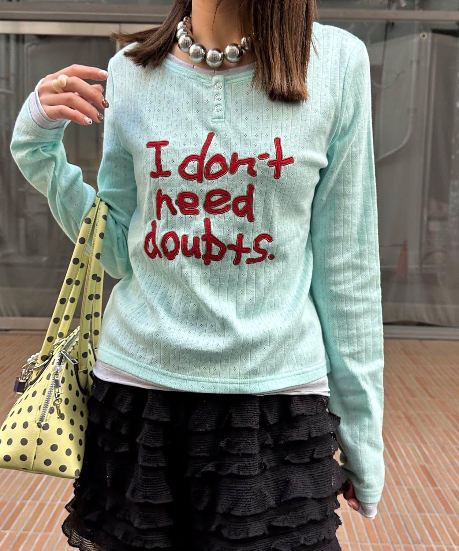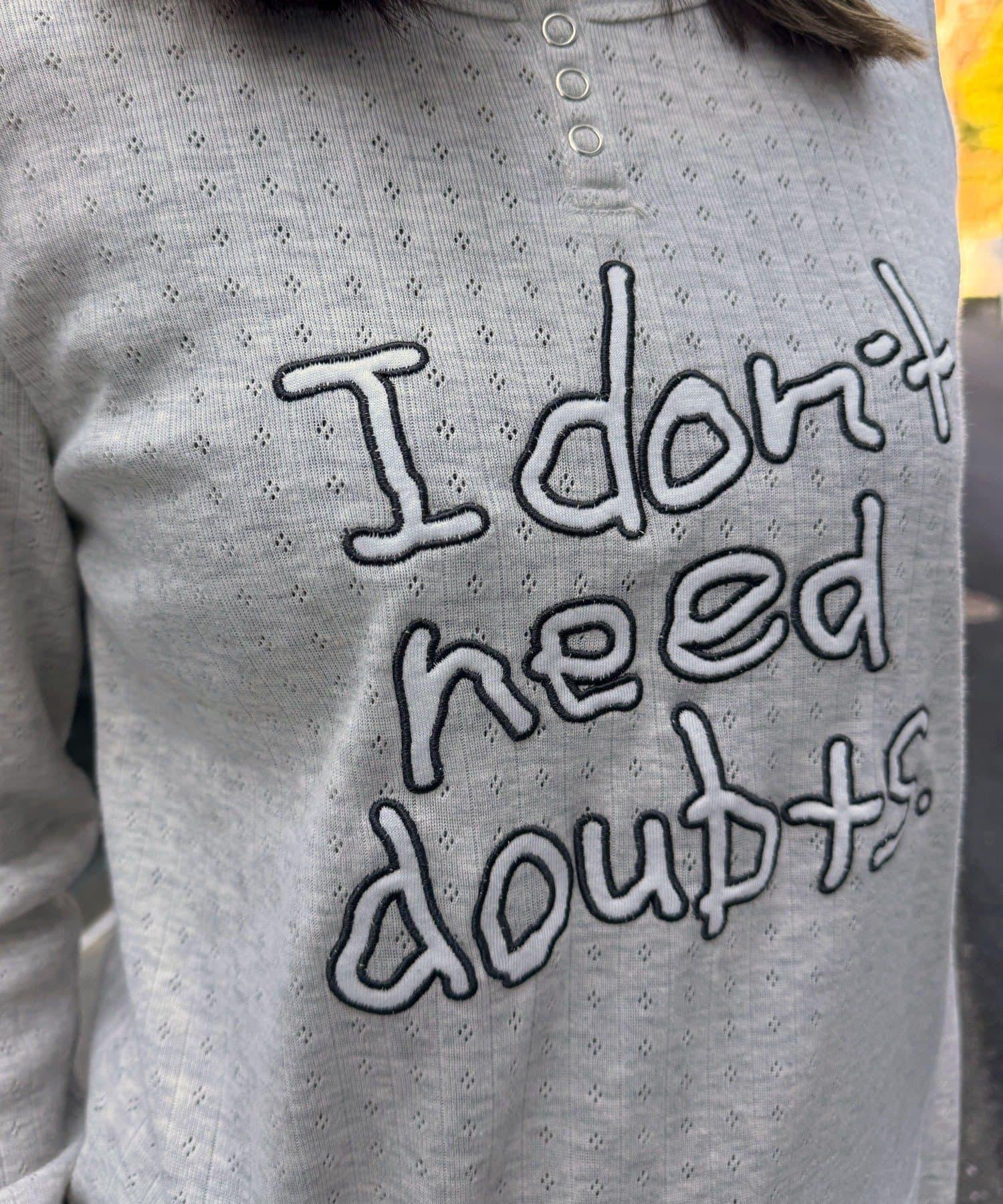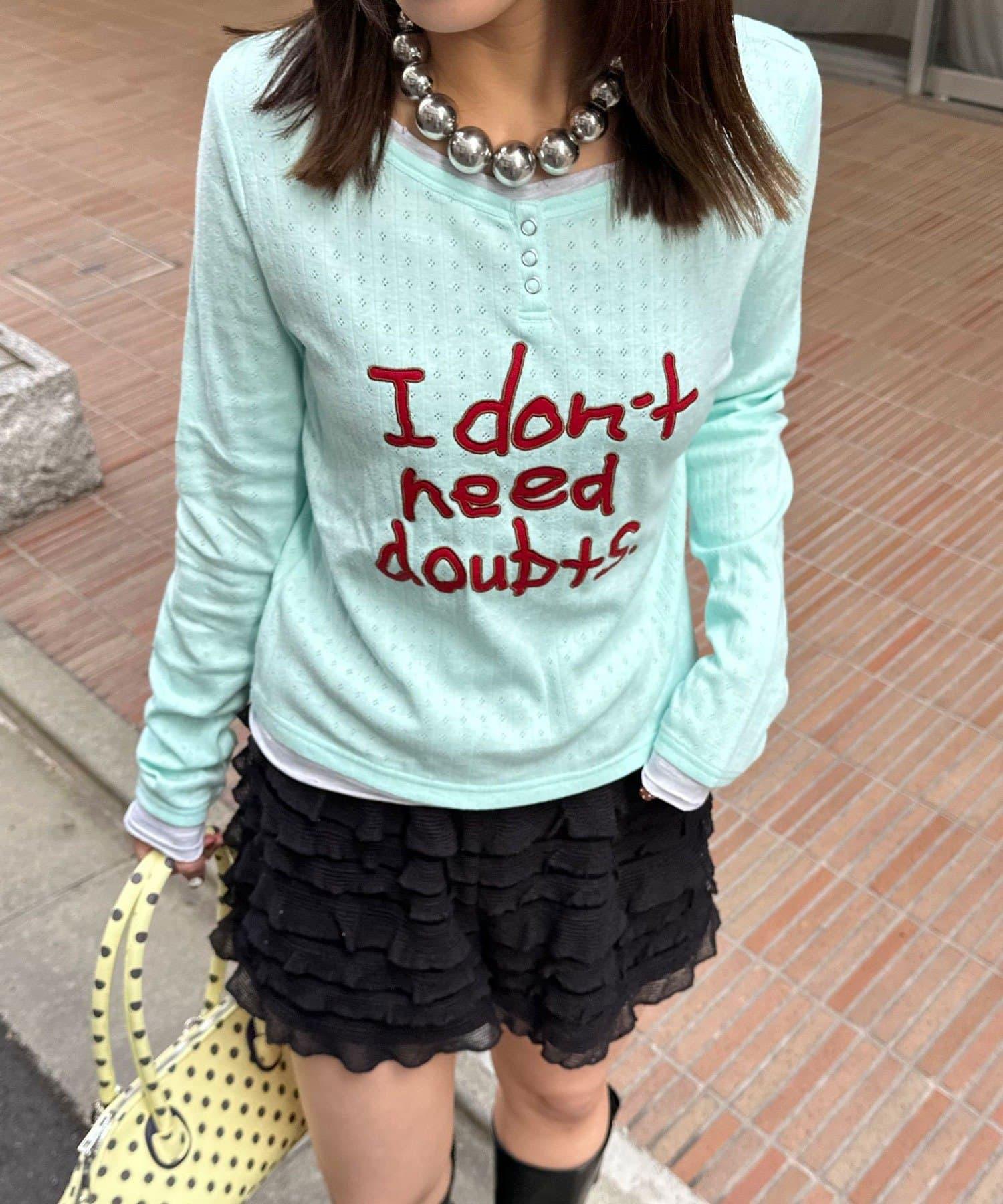 眼線織物雞心領上衣,配以醒目的手繪徽標刺繡。