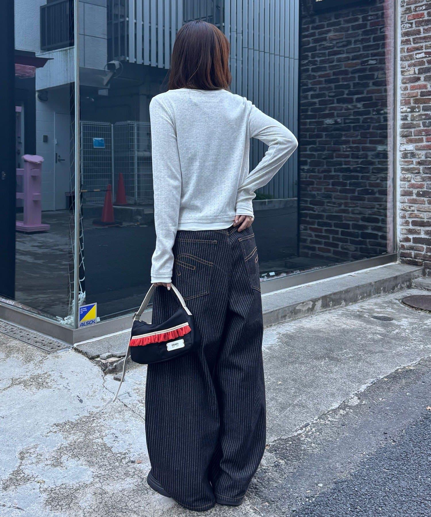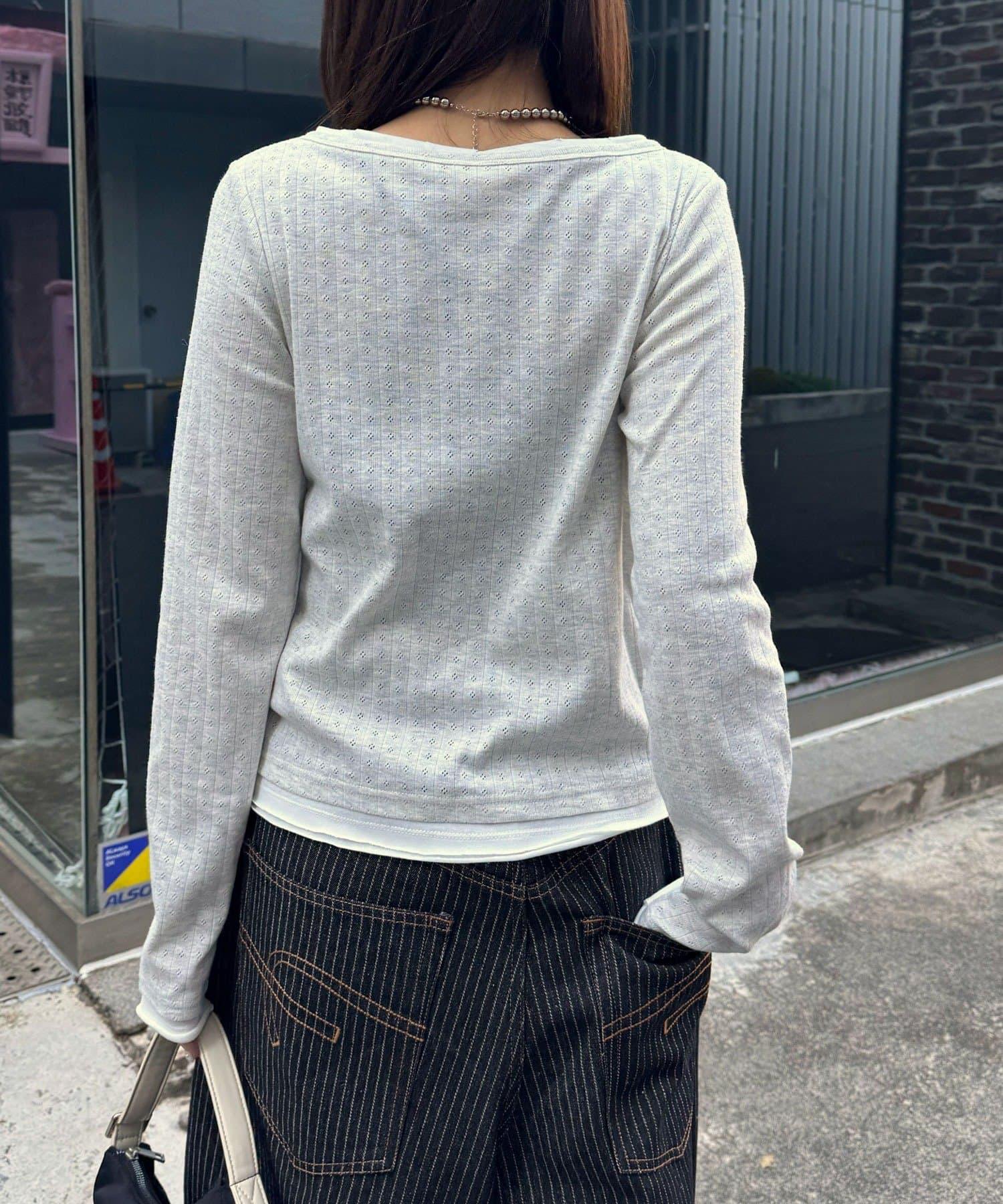 頸部的破損處理以及下襬和袖子的鏤空設計,給人一種粗獷而舒適的印象。