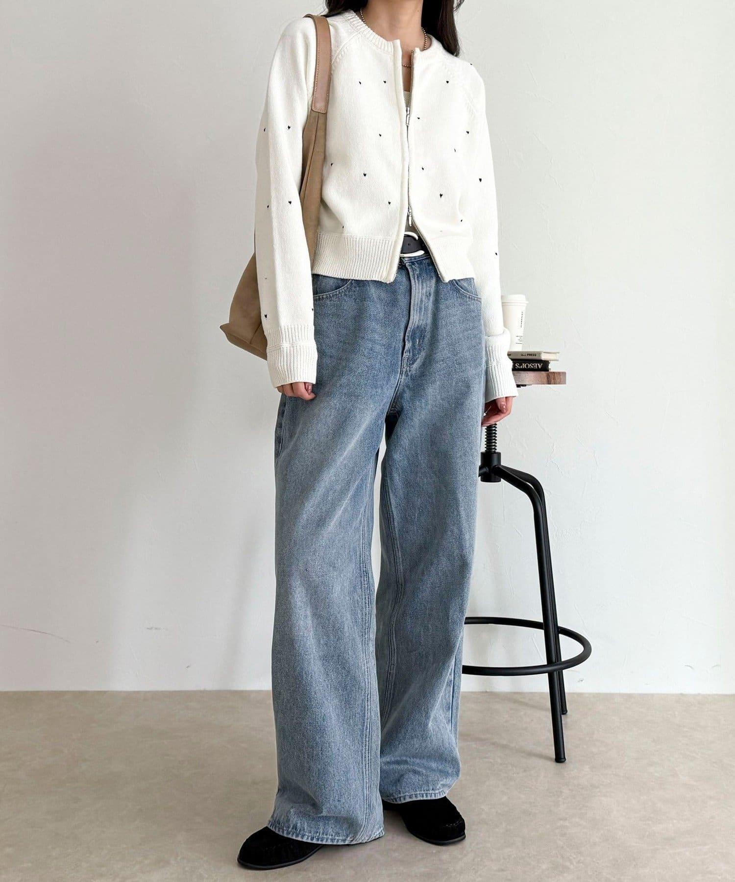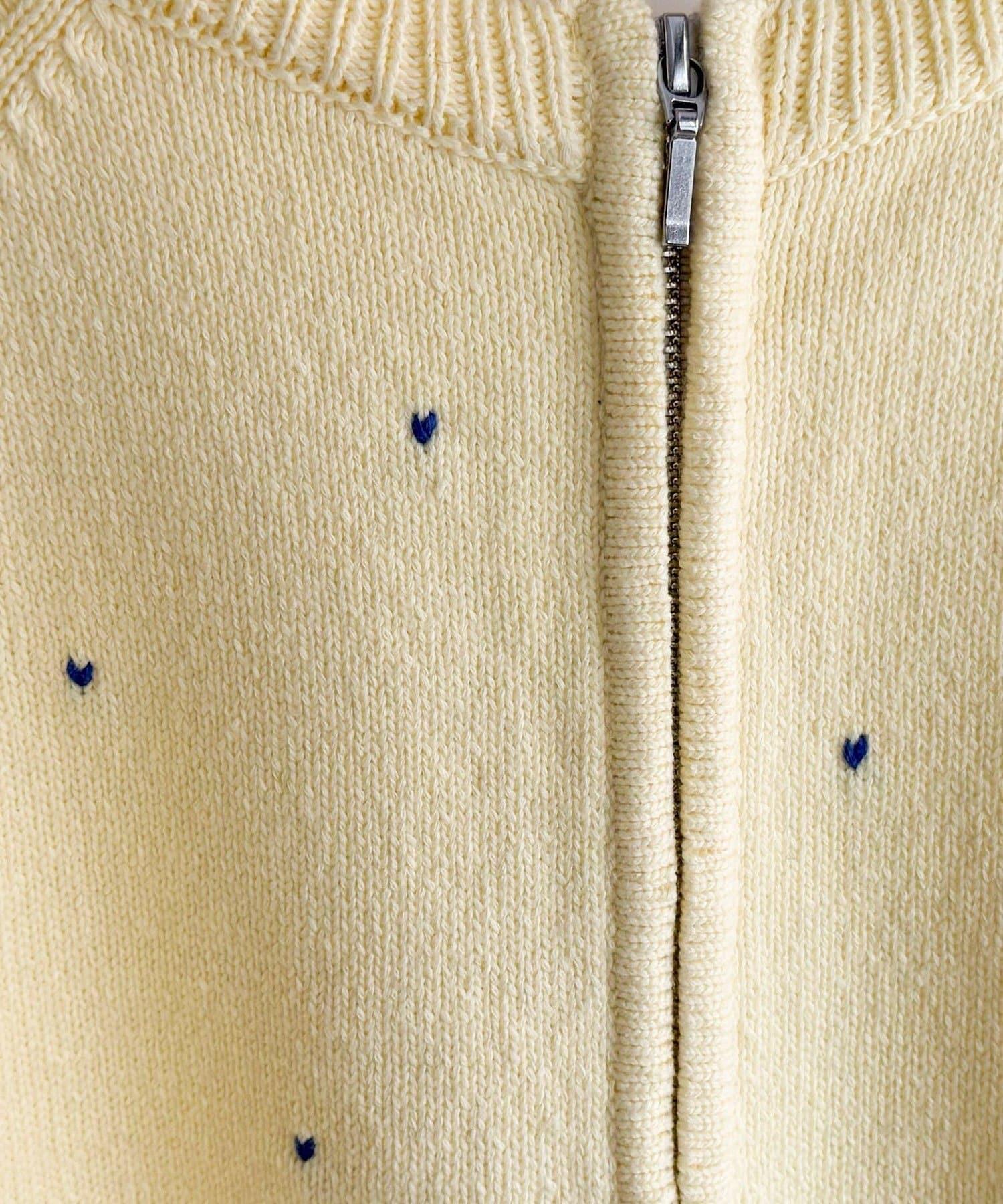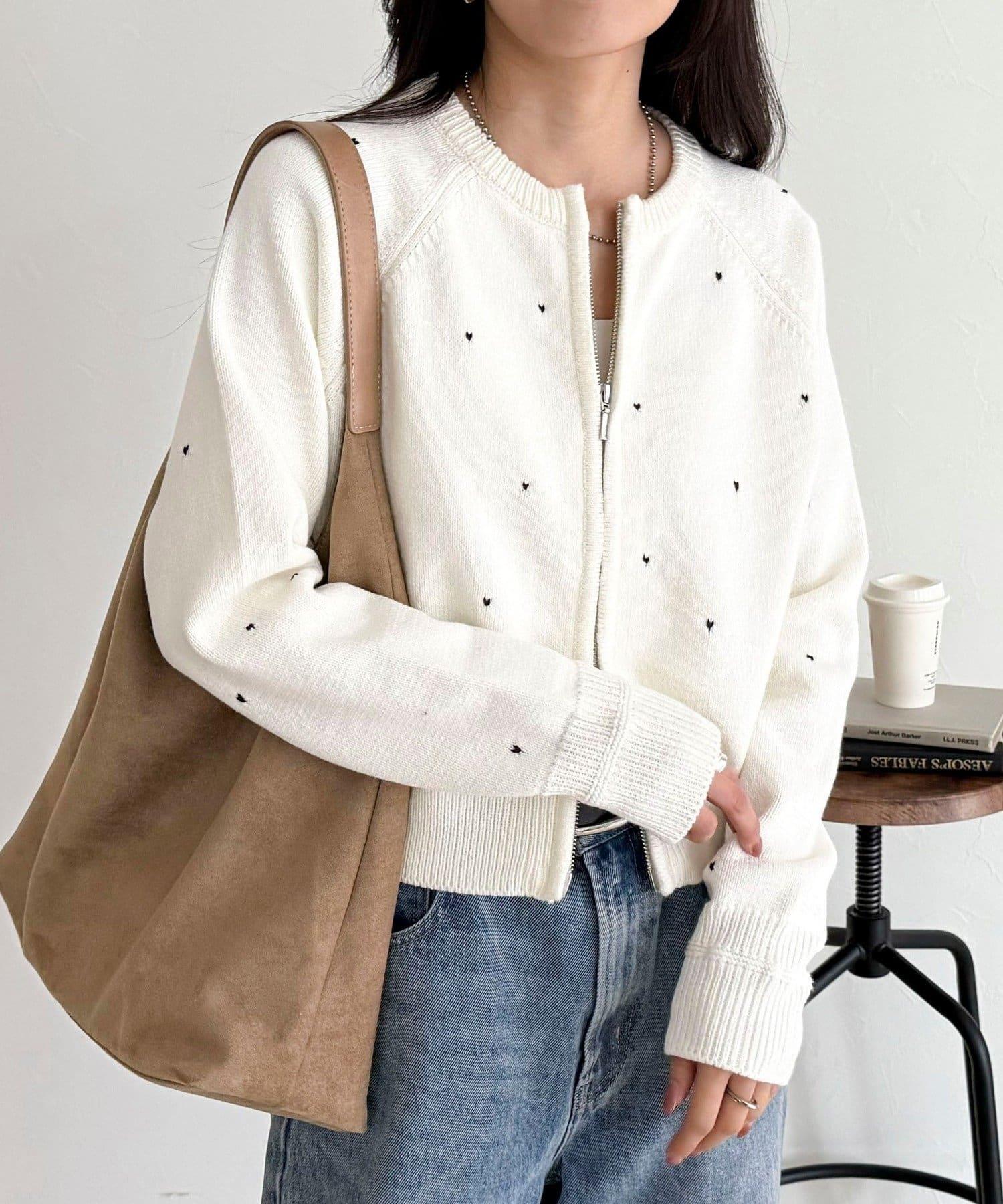 手工刺繡心形拉鍊開衫,讓你看起來像個可愛的成人。