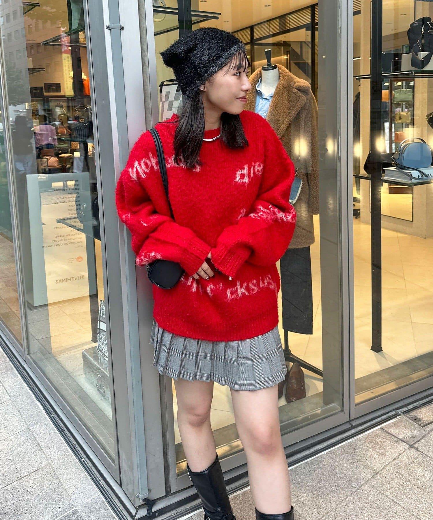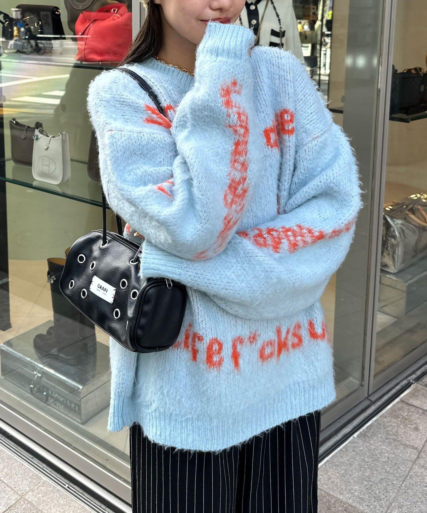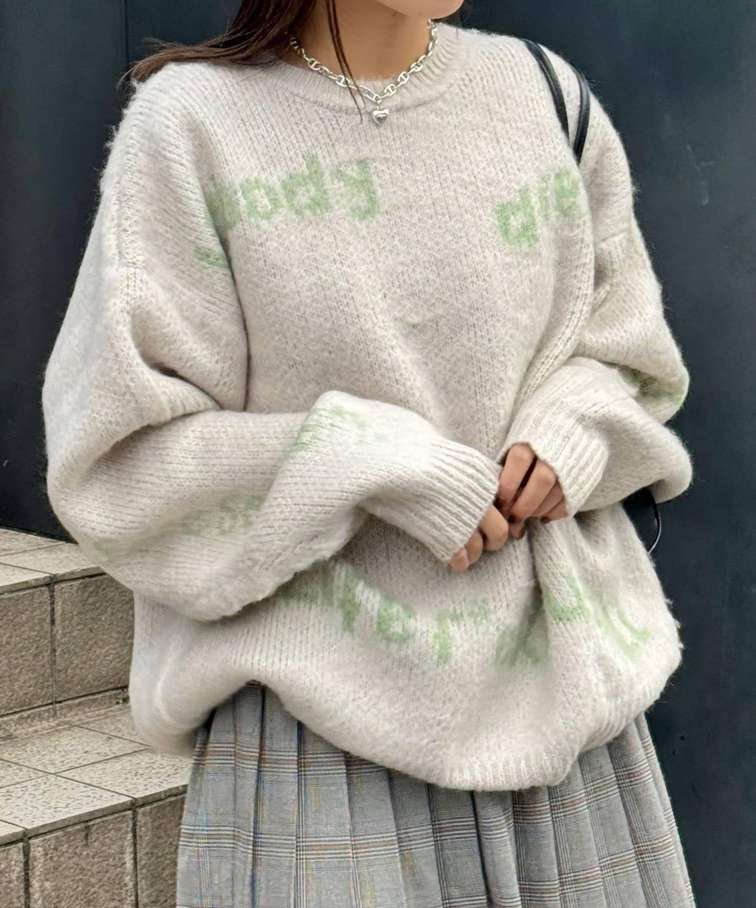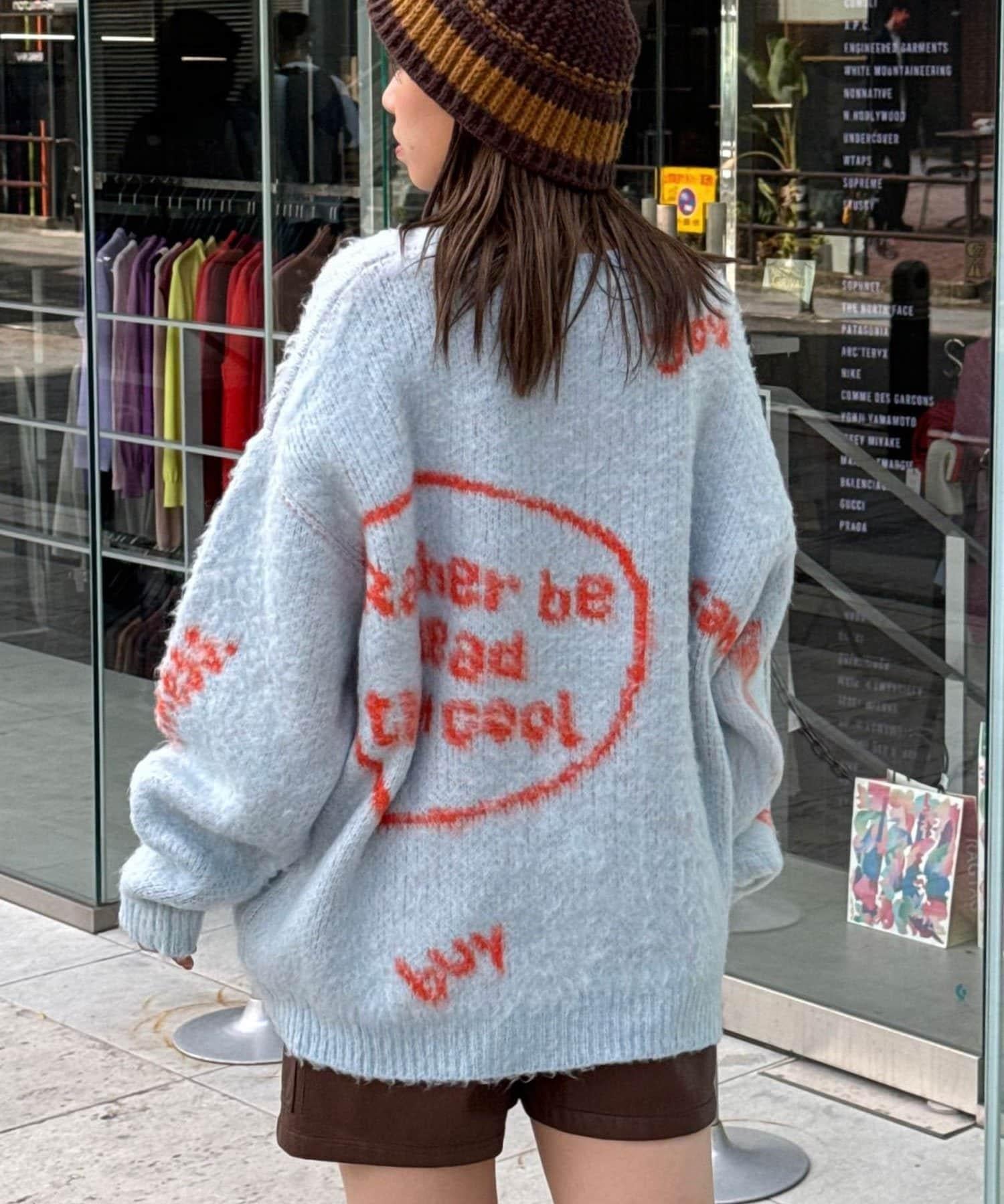 超大徽標針織衫,蓬鬆毛茸茸的感覺十分可愛。