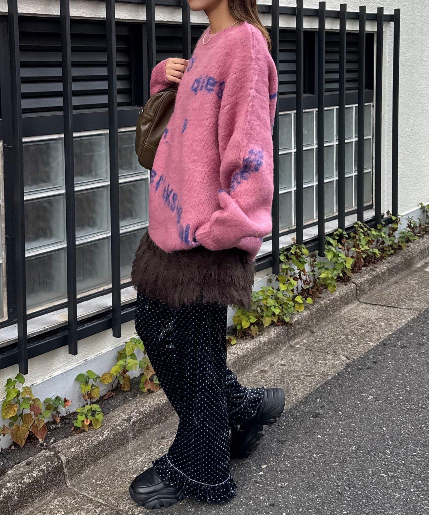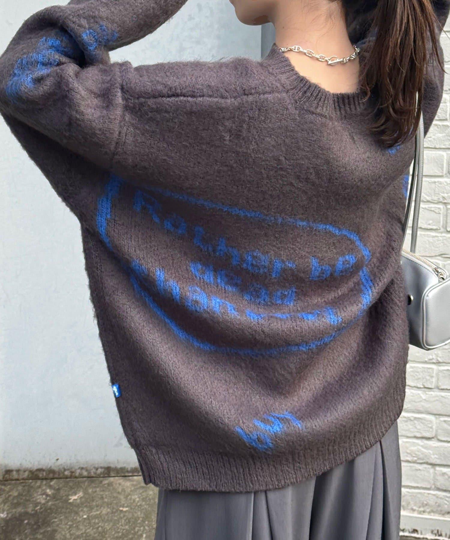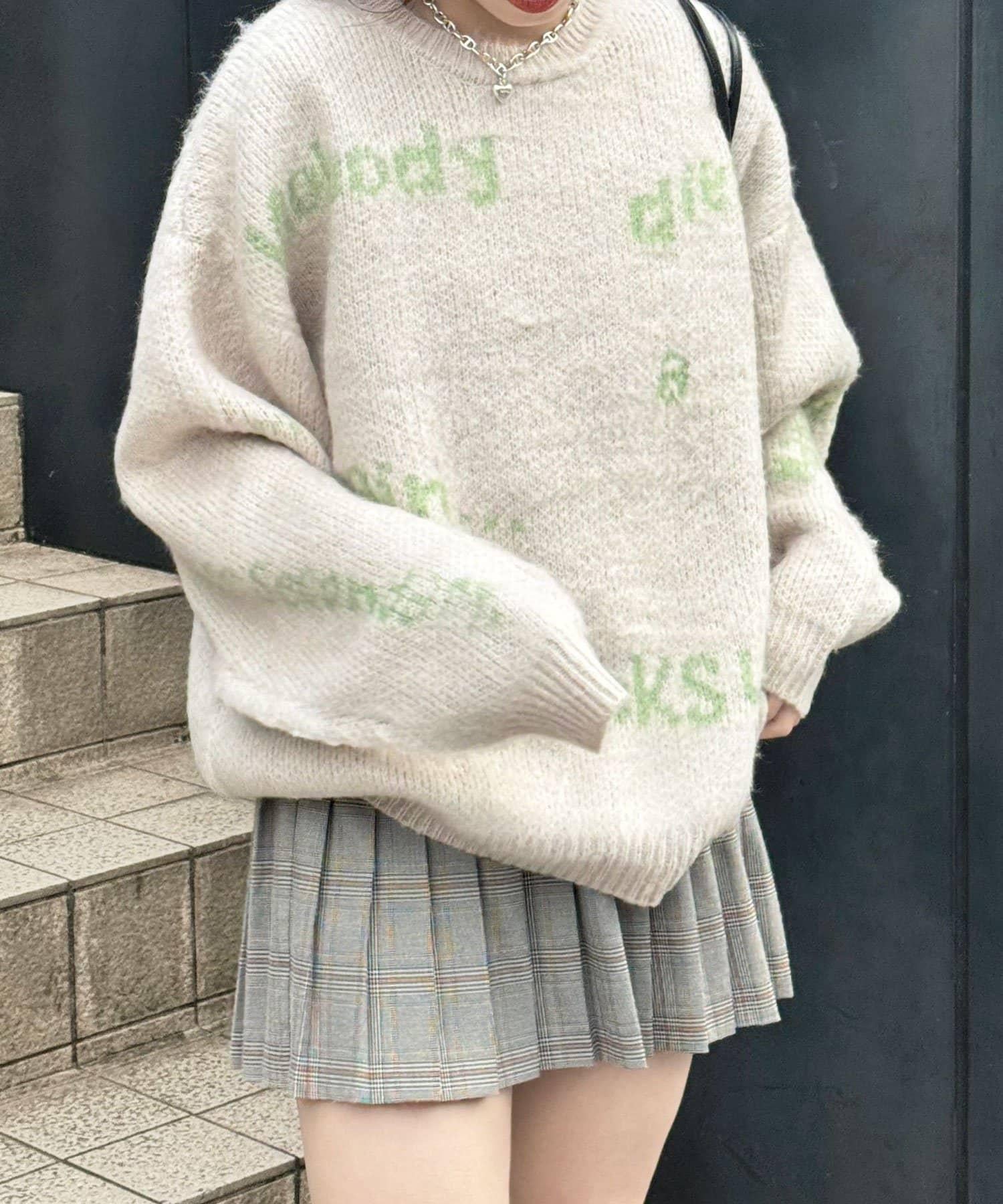超大徽標針織衫,蓬鬆毛茸茸的感覺十分可愛。