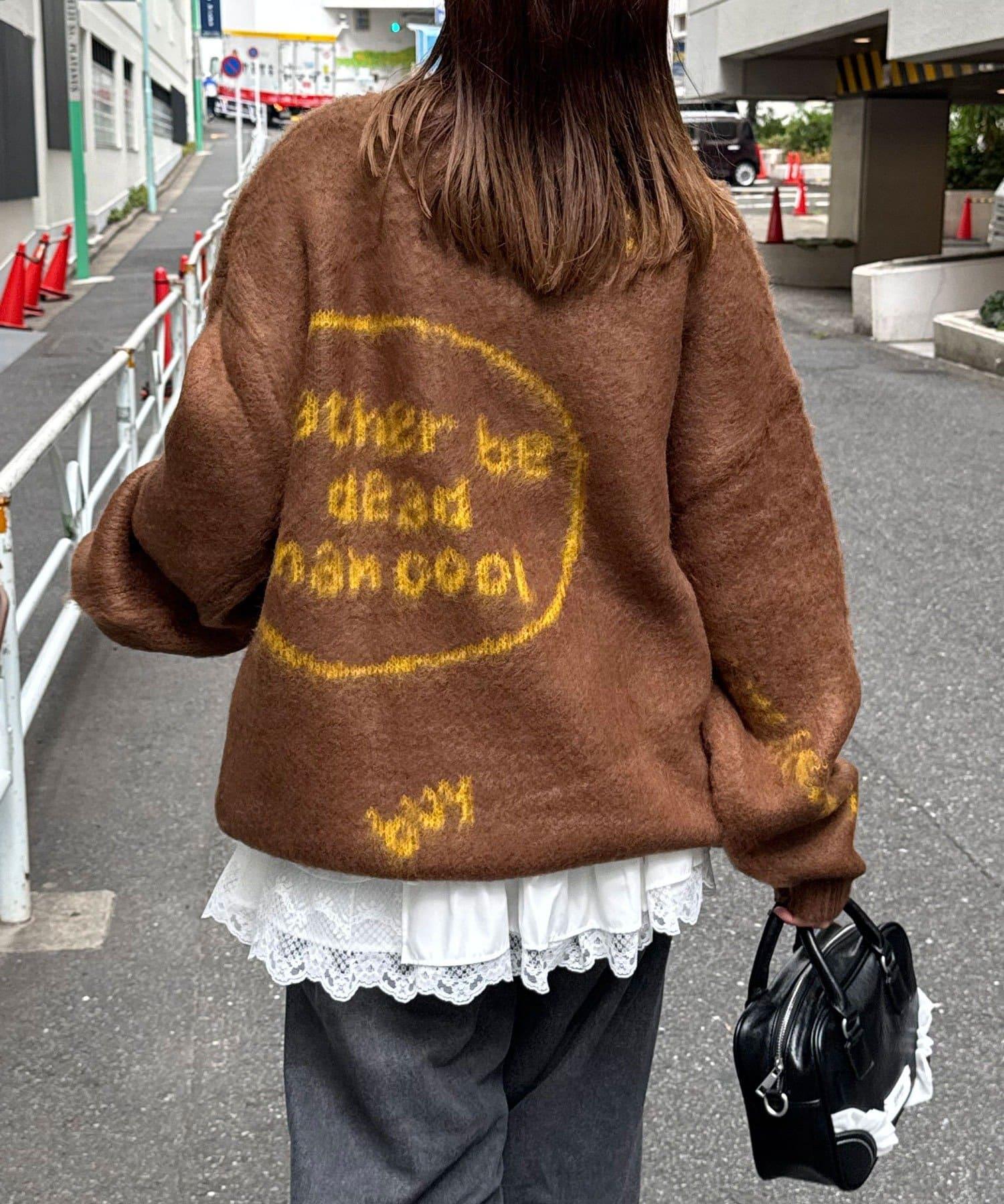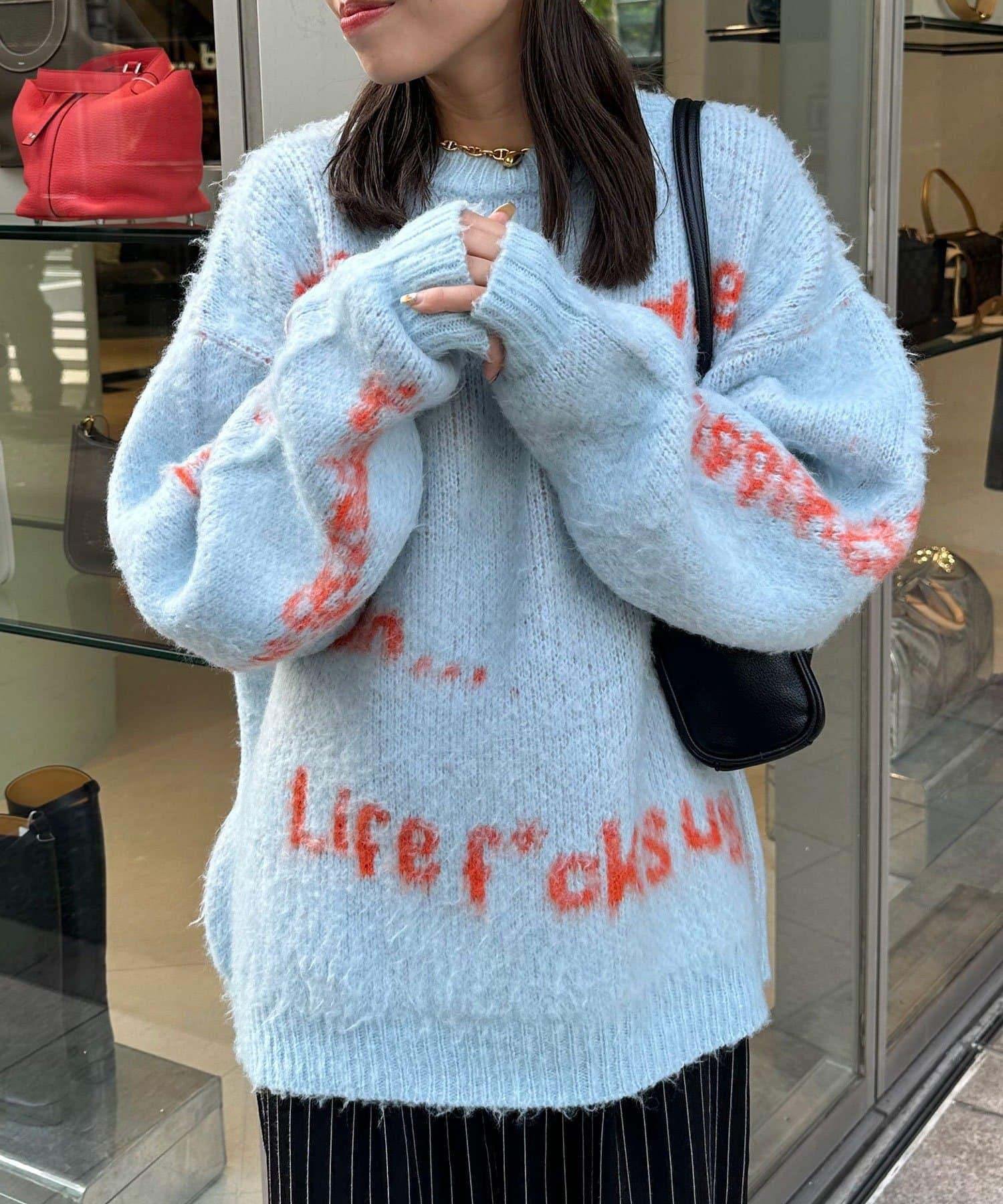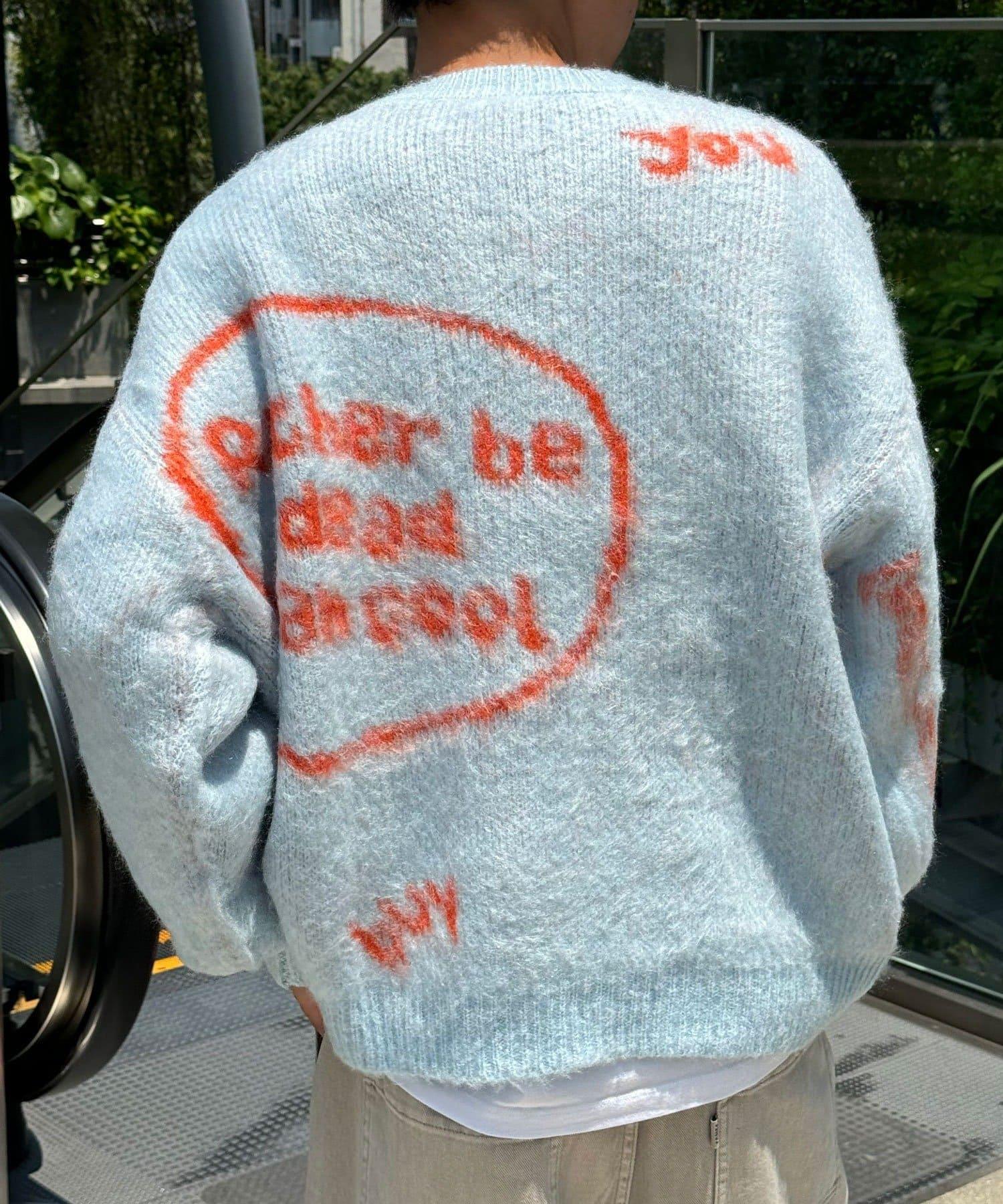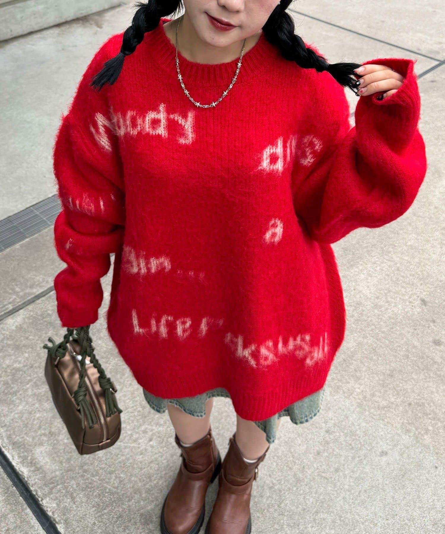 超大徽標針織衫,蓬鬆毛茸茸的感覺十分可愛。
