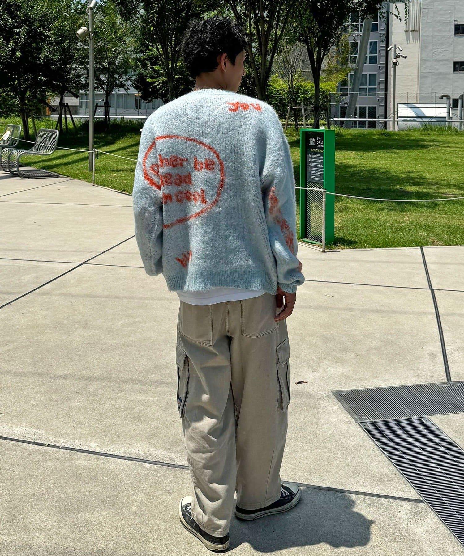 這款針織衫具有很強的存在感,建議搭配簡單的牛仔褲或貨郎褲。