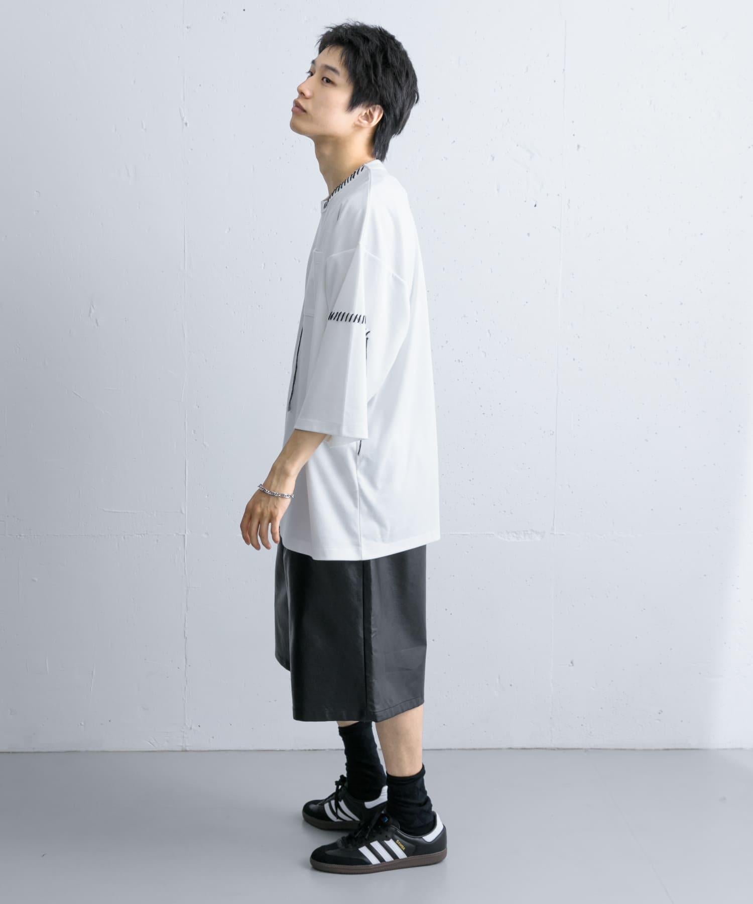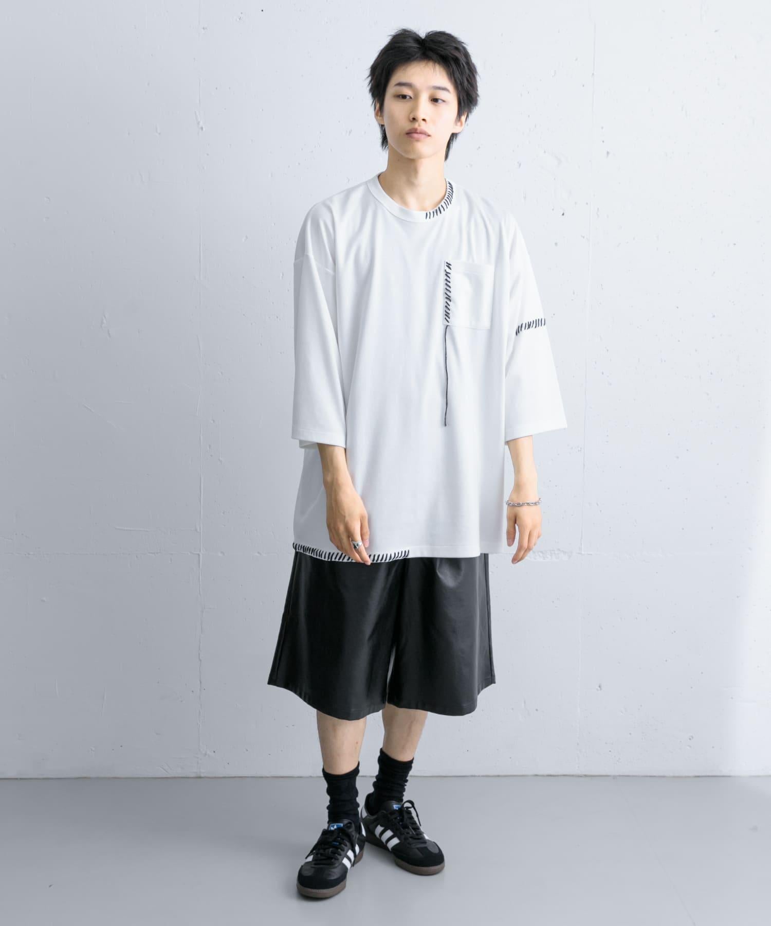 此款 T 恤根據尺寸和廓形設計,單穿即可完成夏日造型。作為內搭也非常出色,可搭配大廓形襯衫或背心作為內搭疊穿。