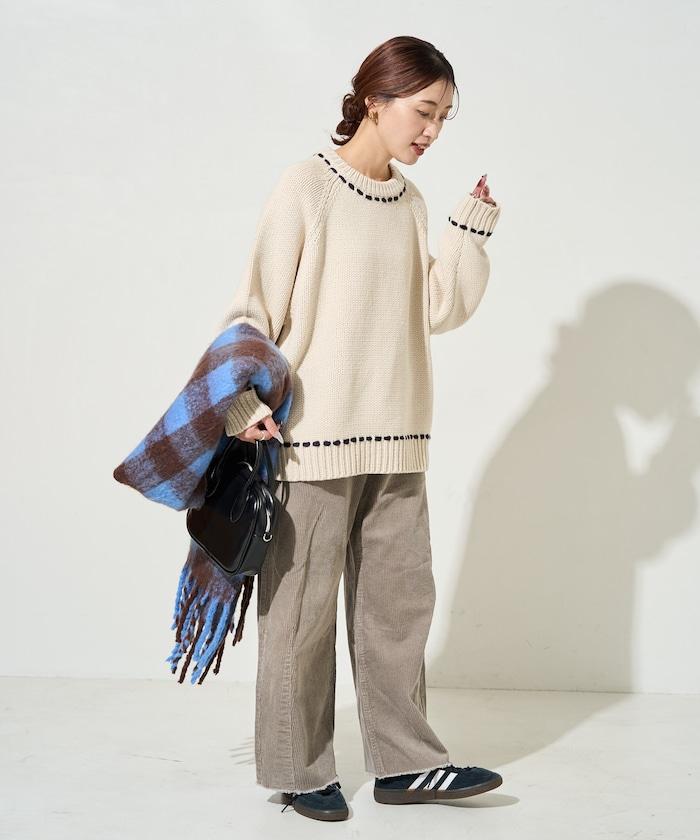 頸部和下襬的手工縫製細節為這款簡單的單品增添了溫暖感。