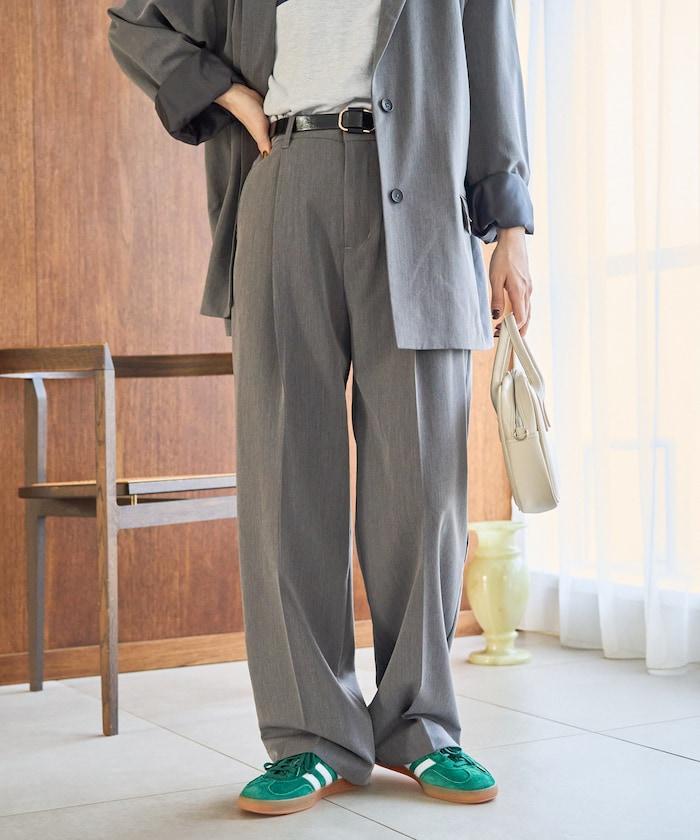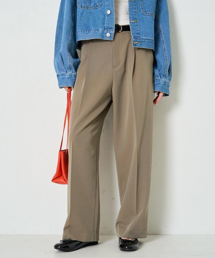 褶襉直筒褲(可作為套裝使用)