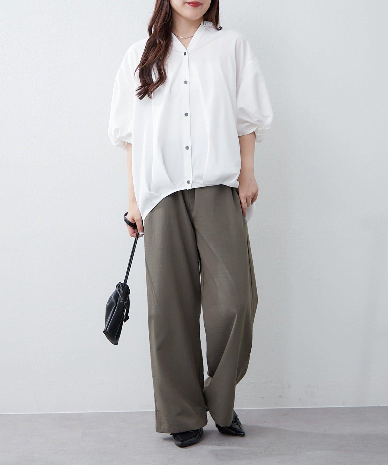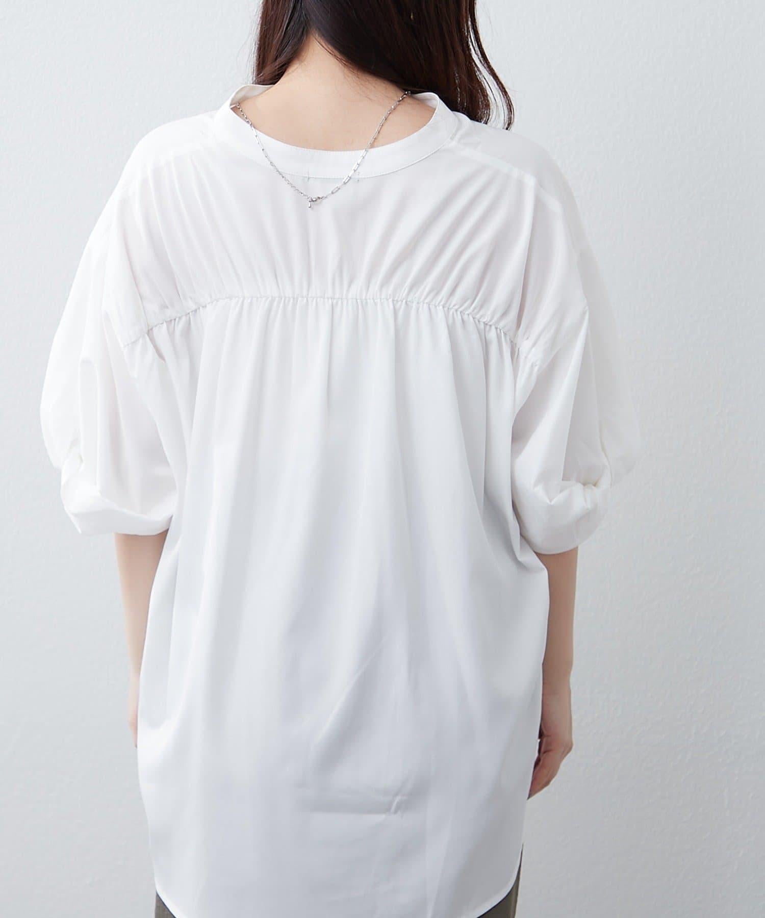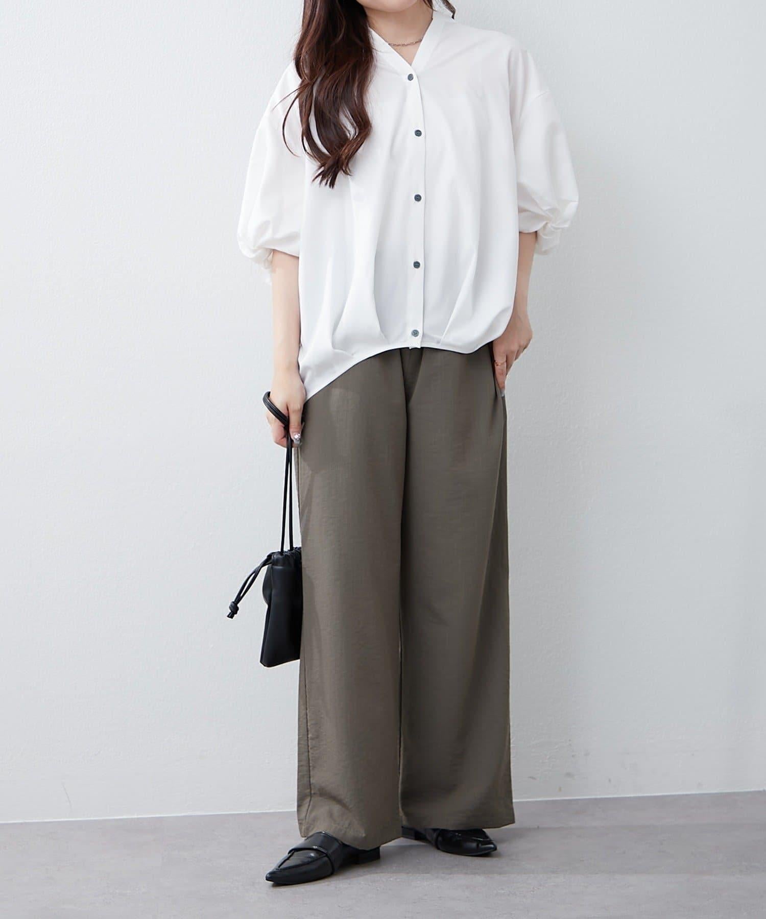 這款襯衫上衣採用了豐滿的袖子輪廓。
