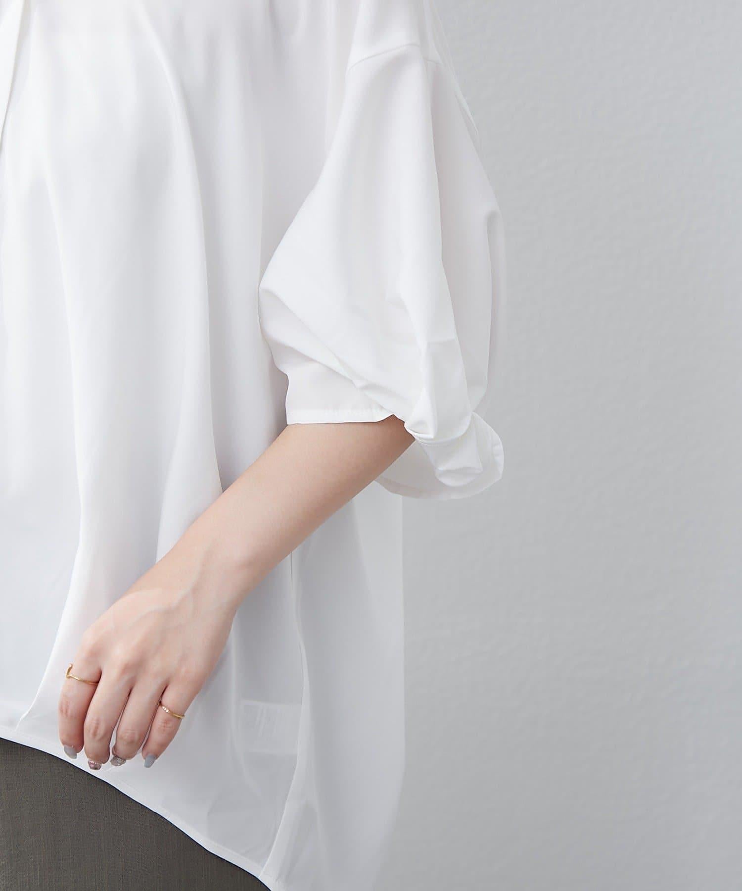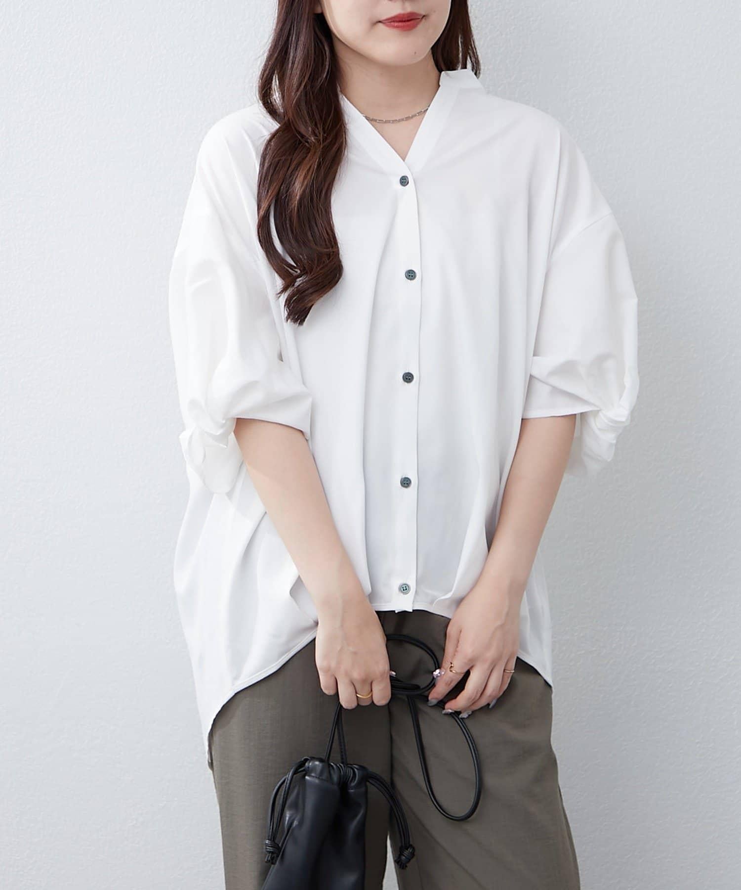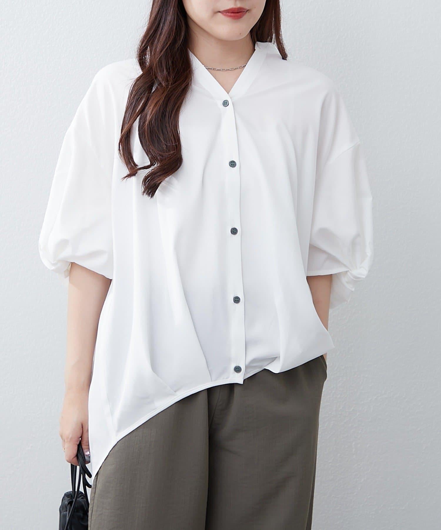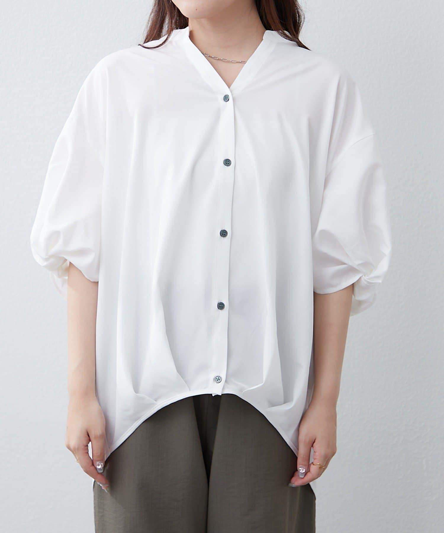 這款襯衫上衣採用了豐滿的袖子輪廓。