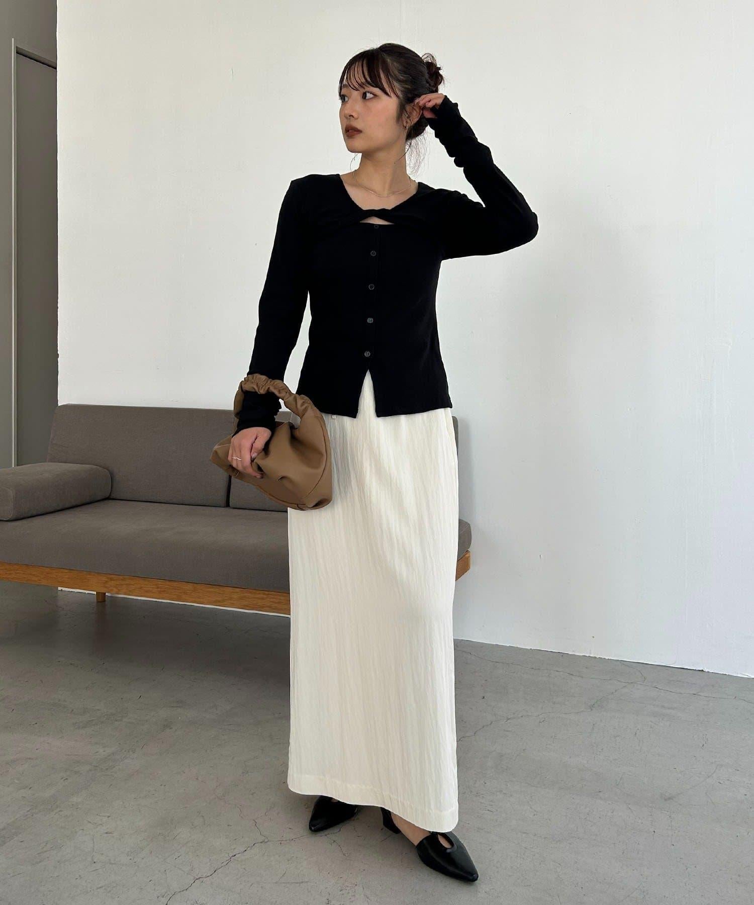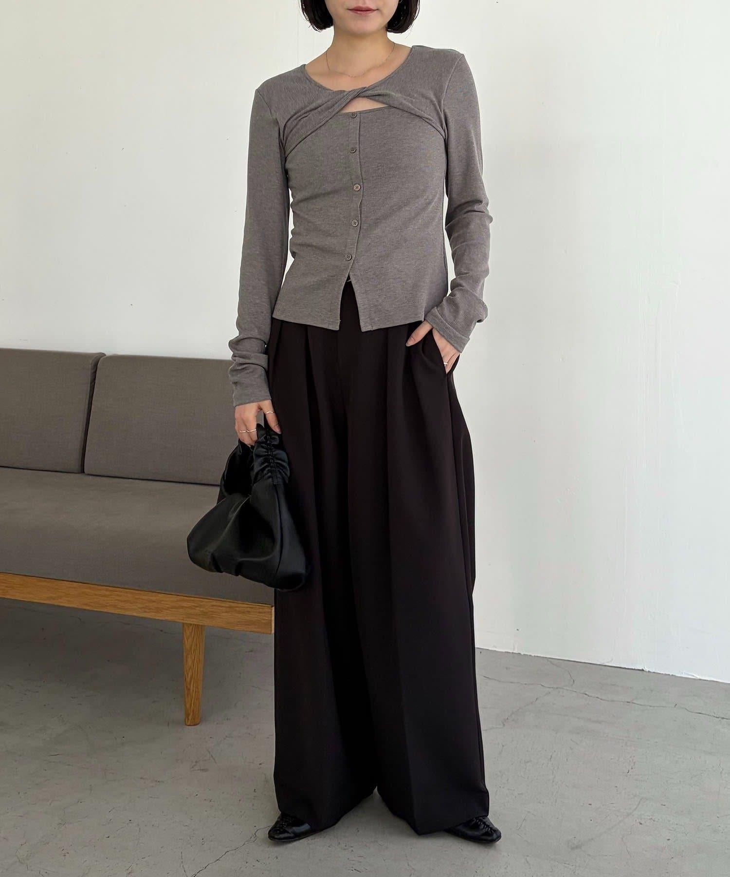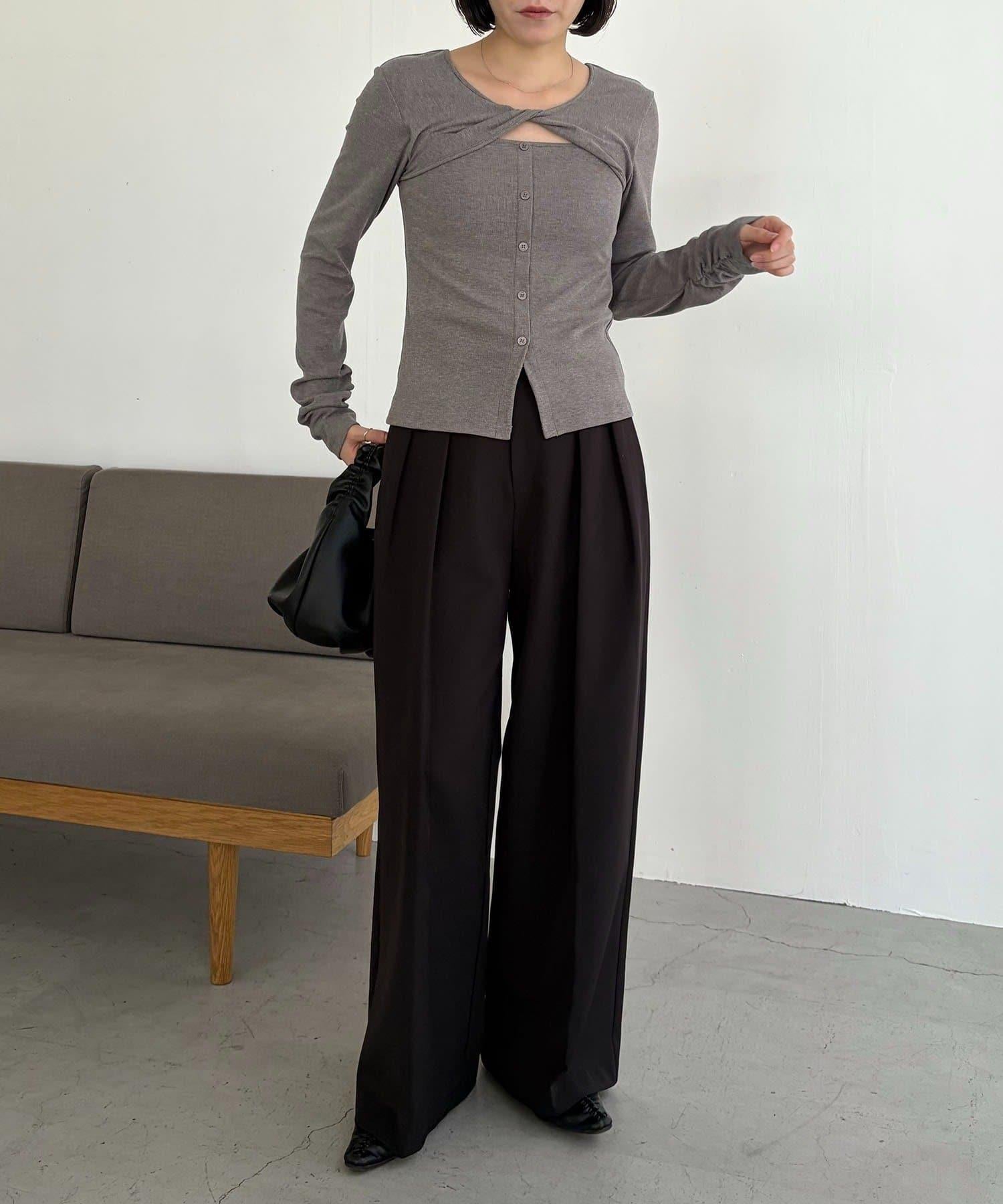 上衣底部適度的開口設計增添了一絲慵懶感。