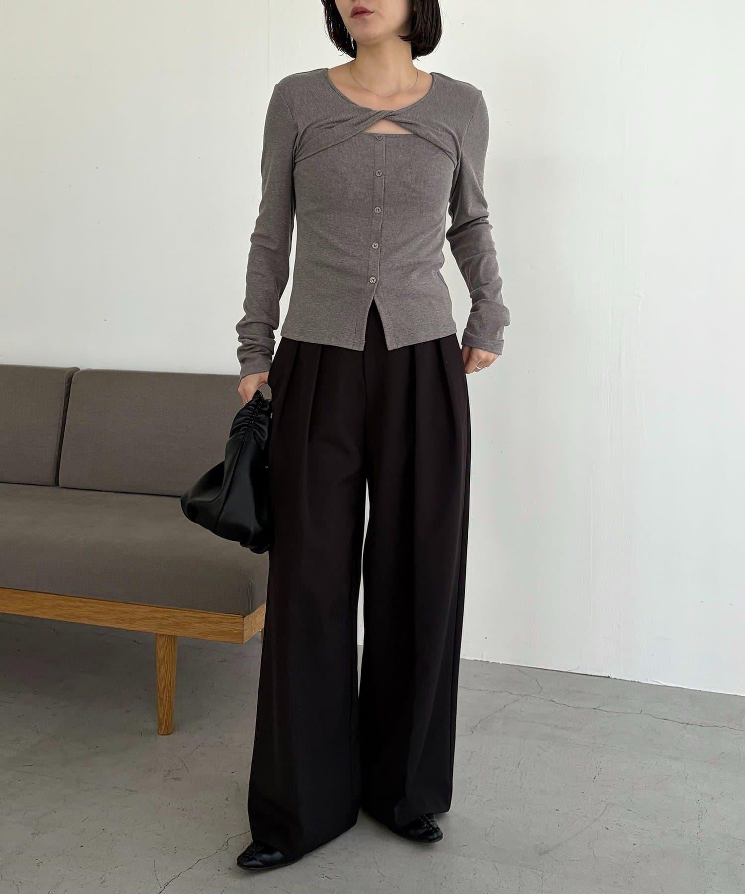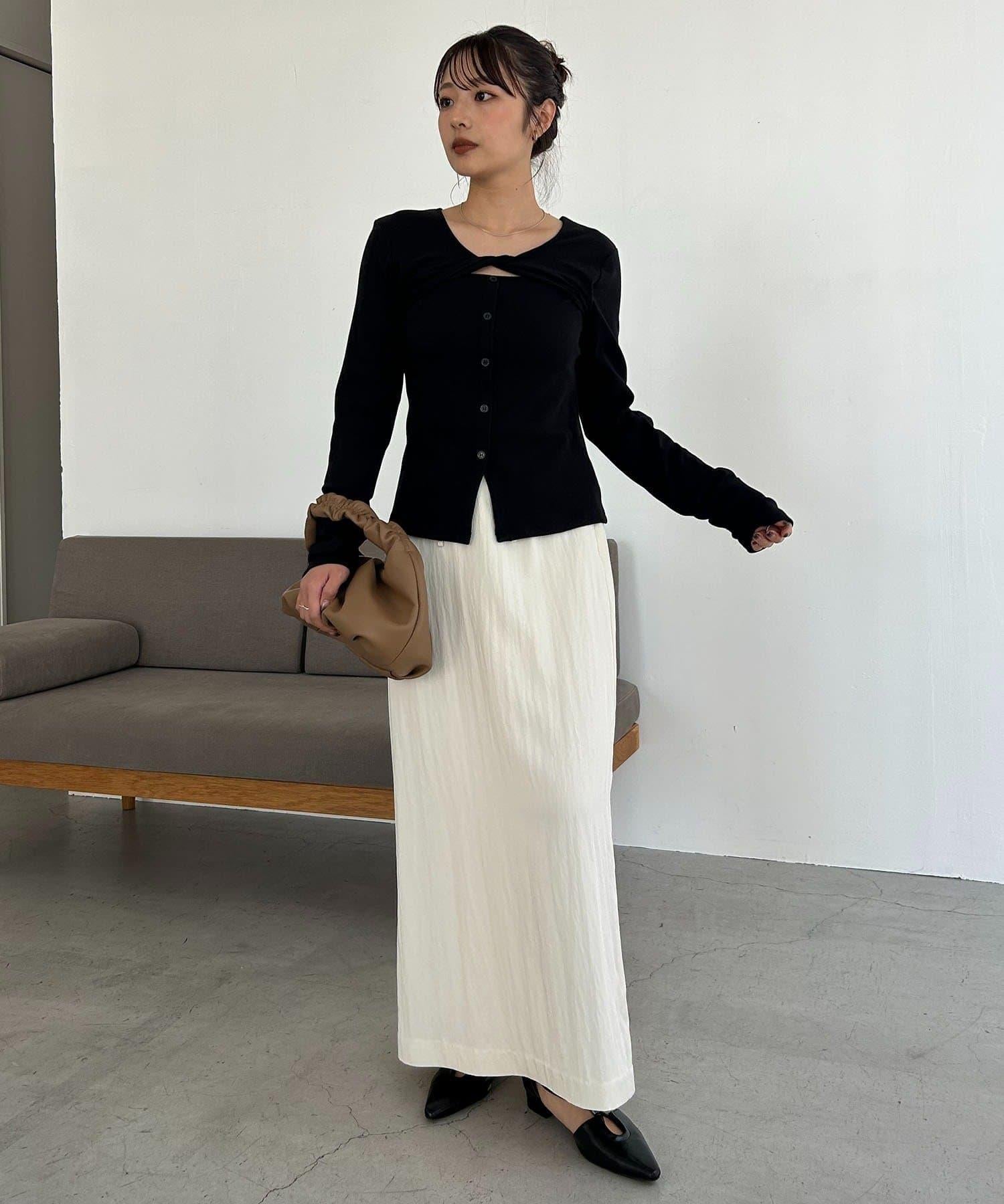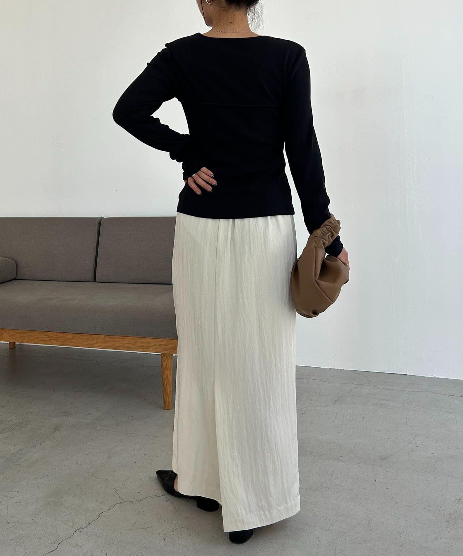 上衣底部適度的開口設計增添了一絲慵懶感。