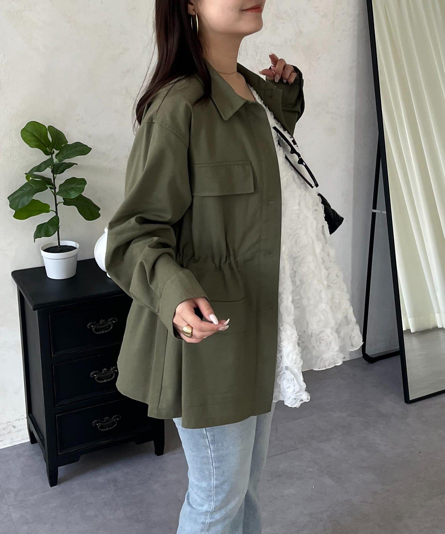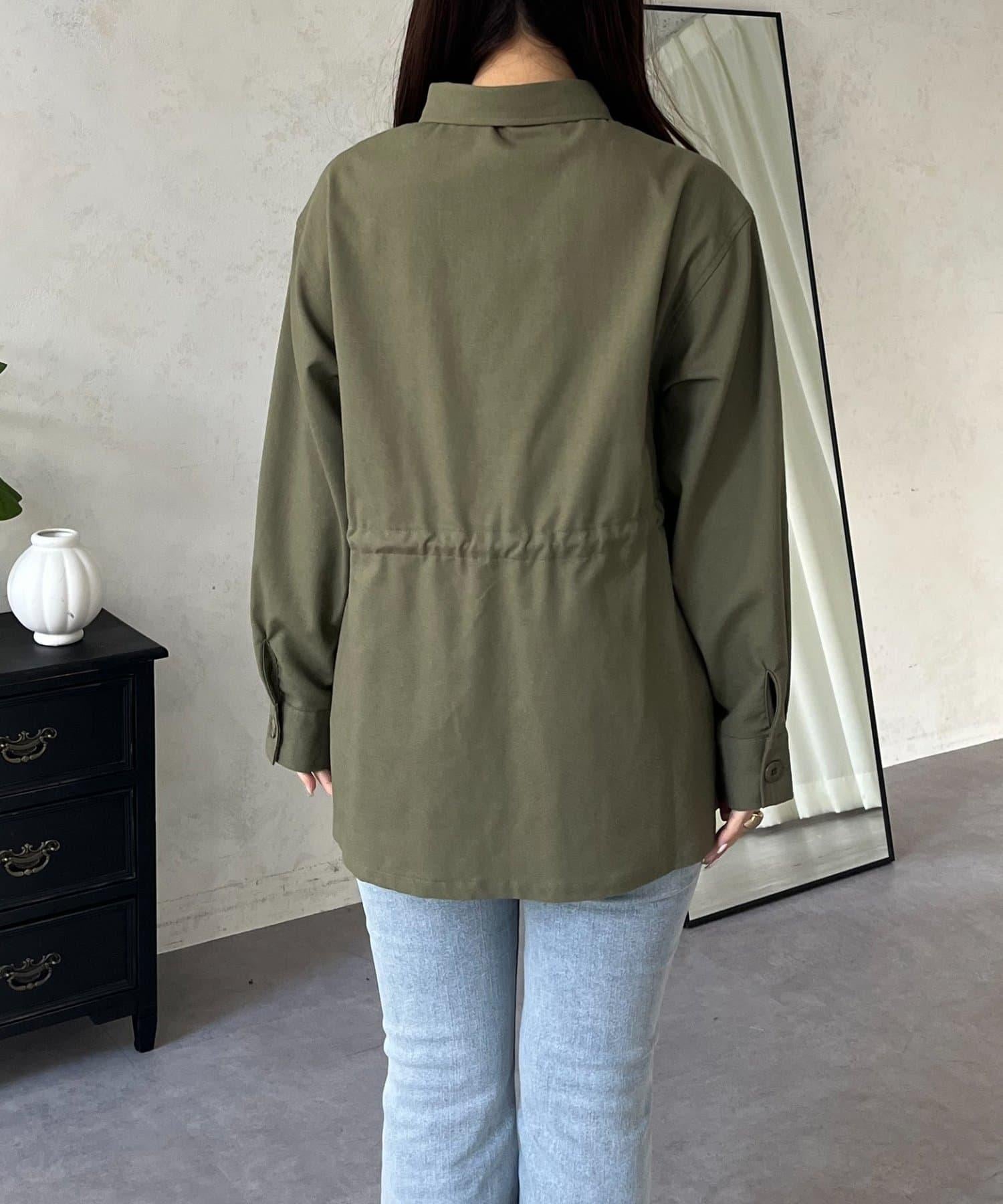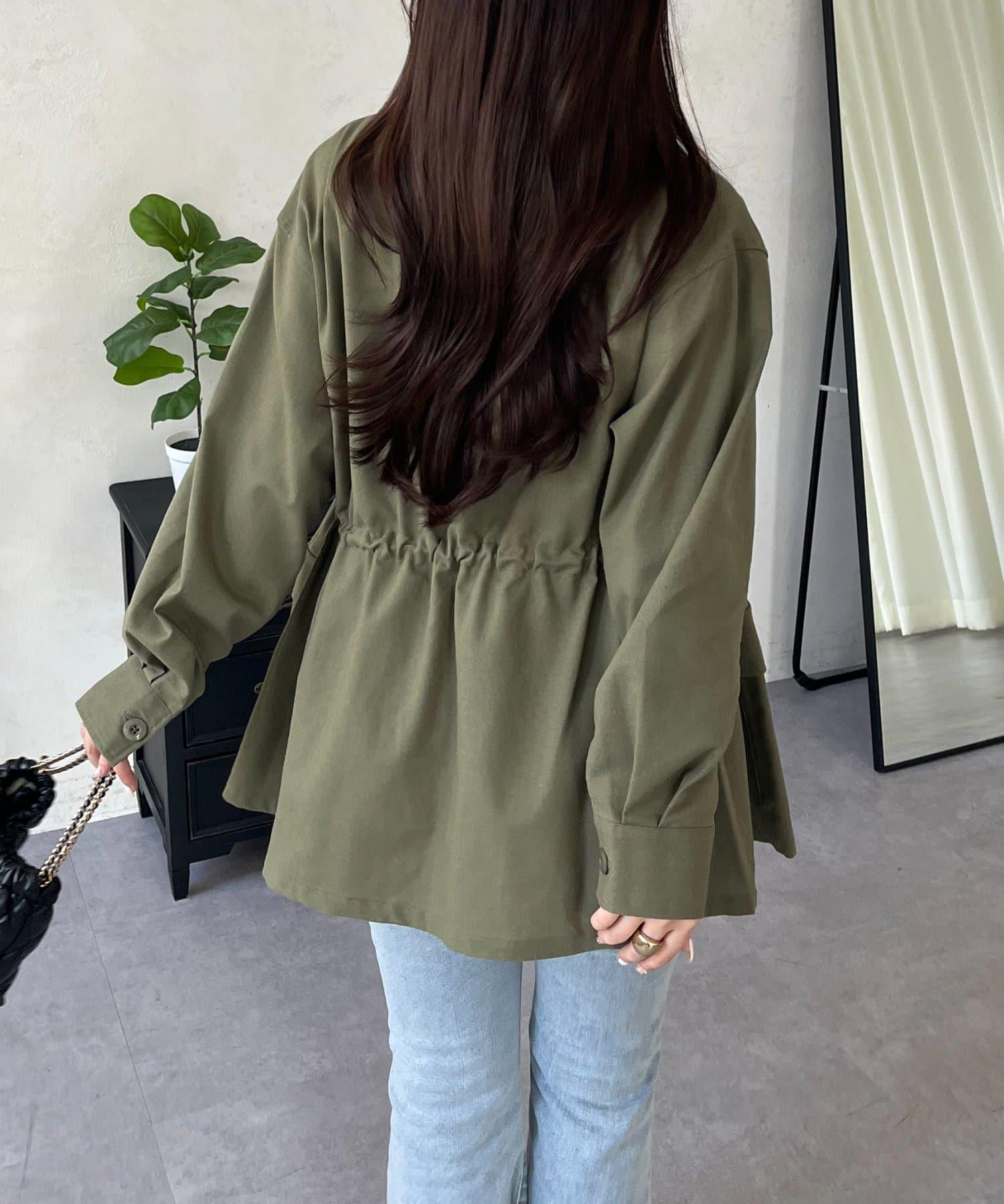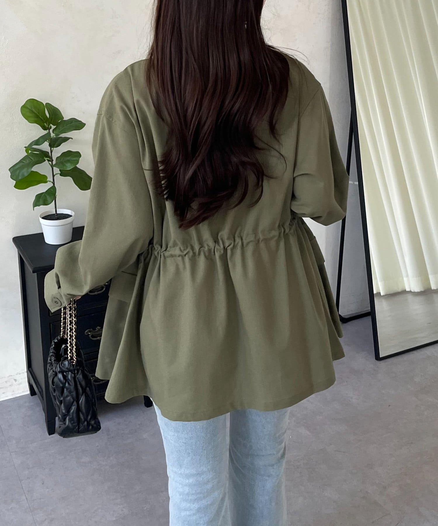抽繩荷葉擺軍裝風襯衫