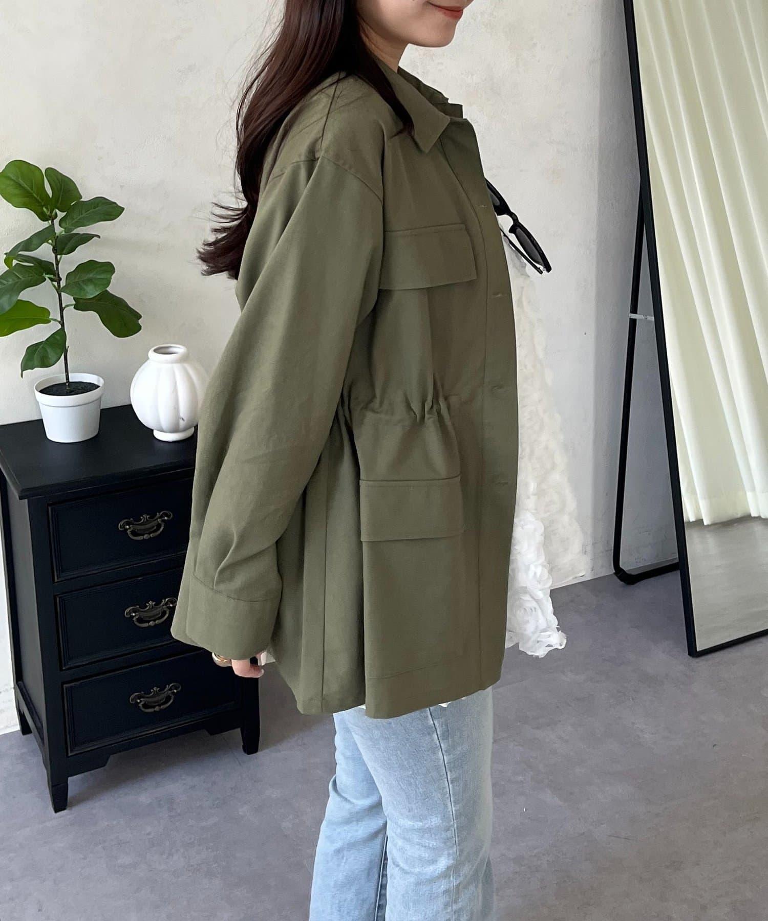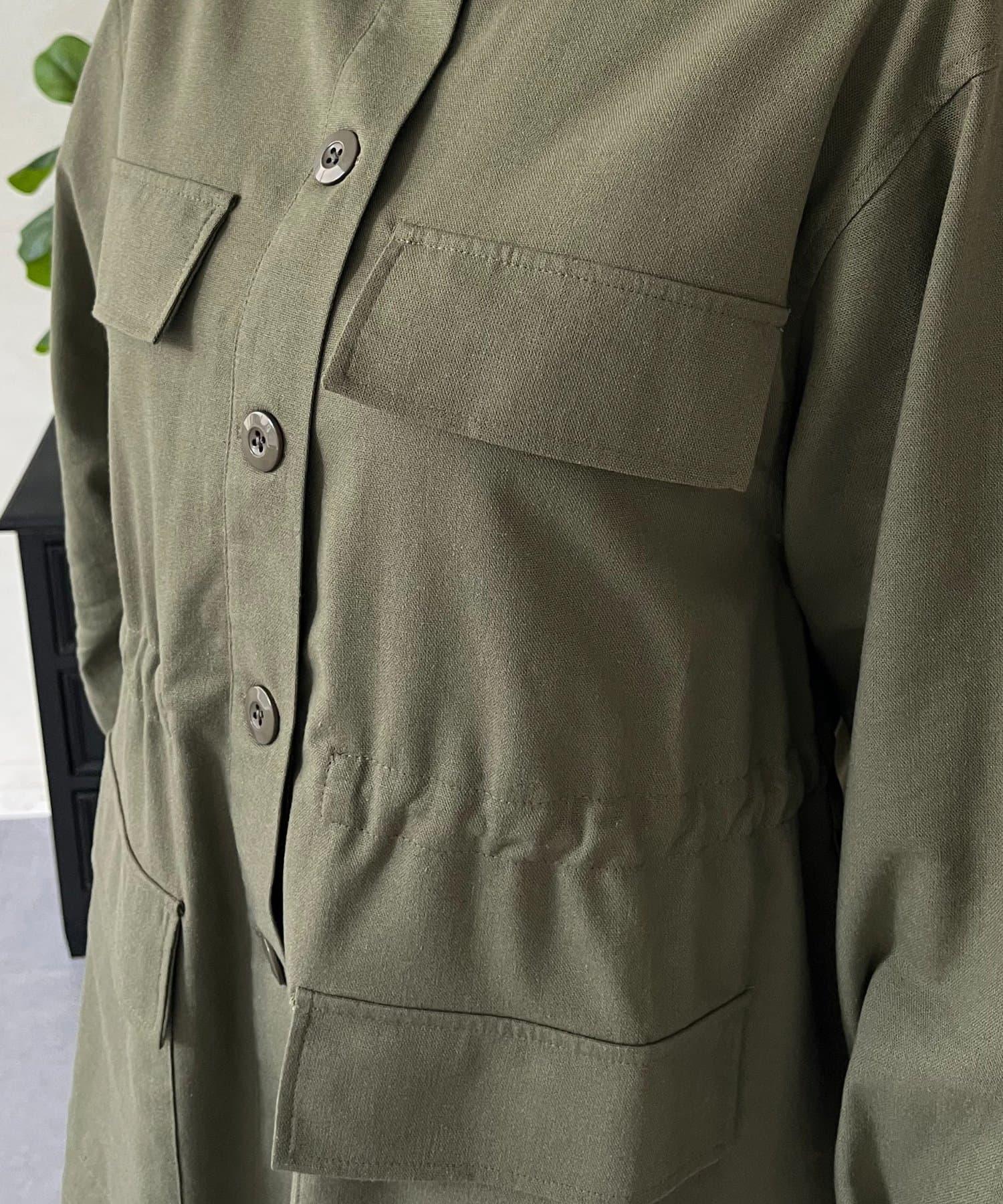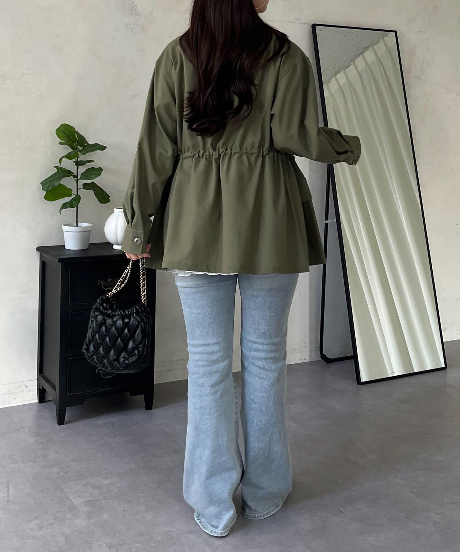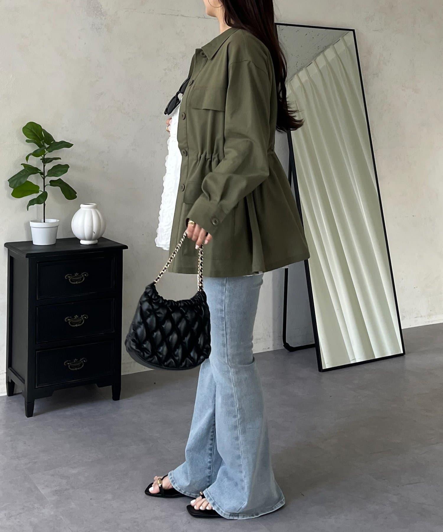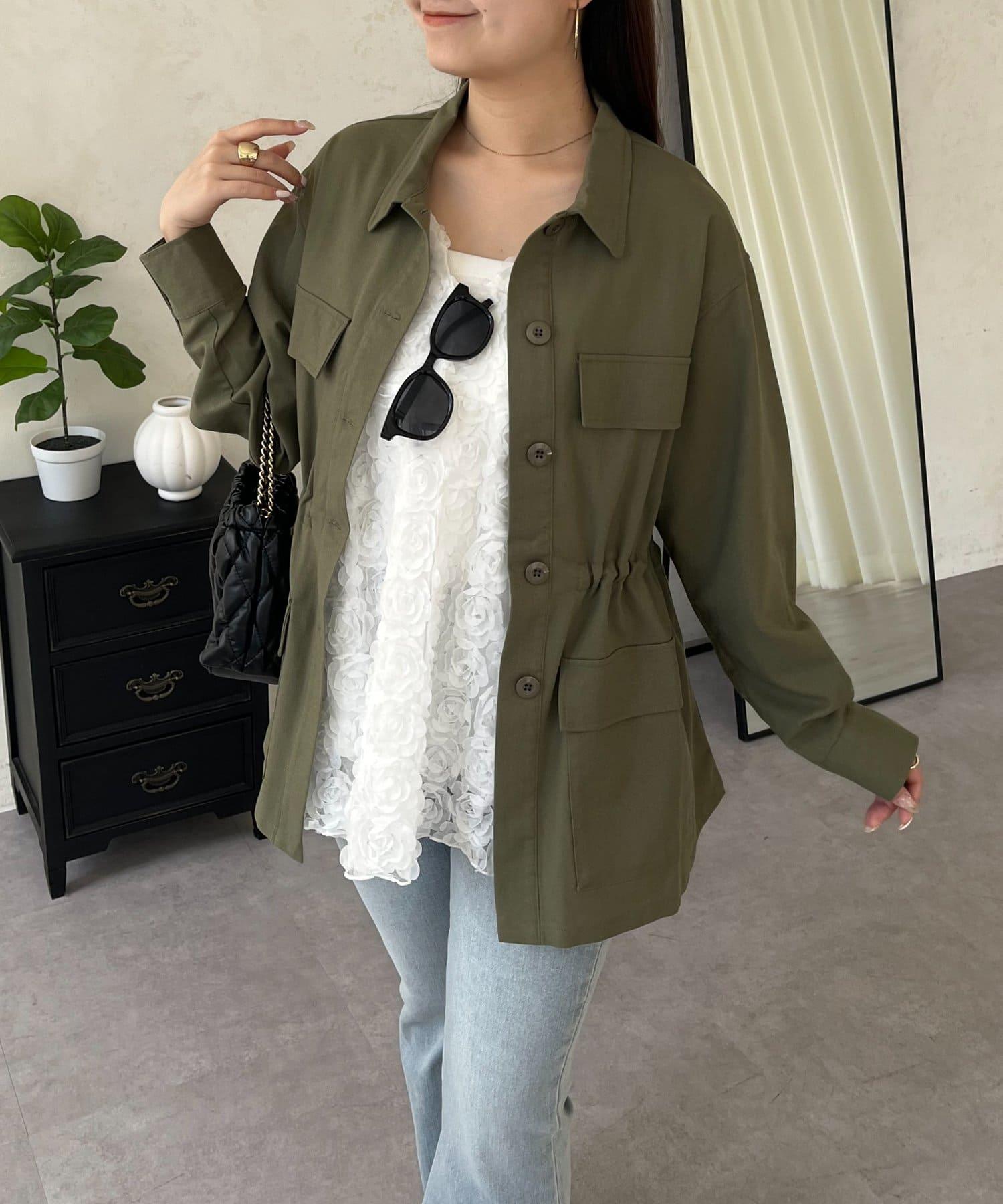 抽繩荷葉擺軍裝風襯衫