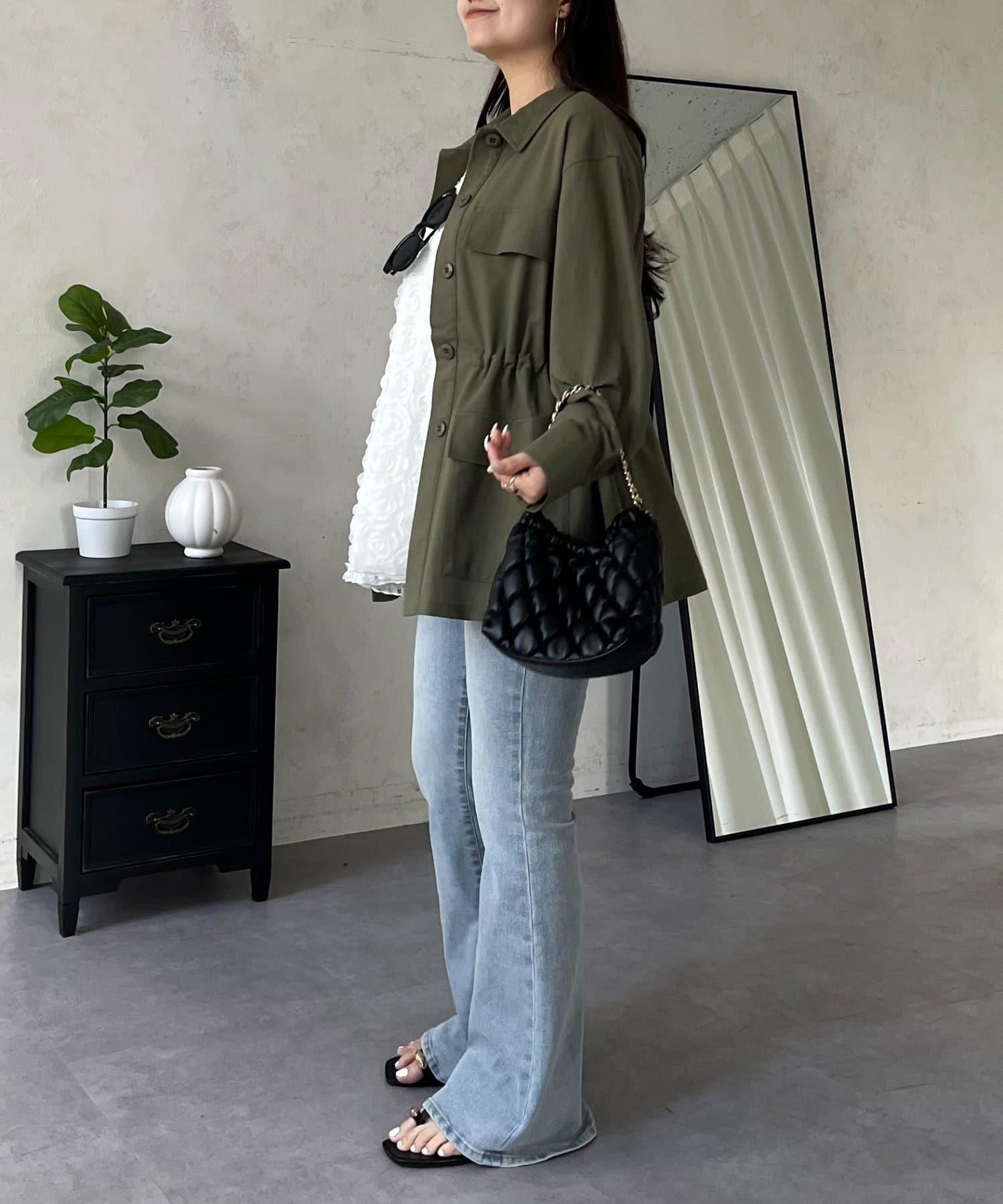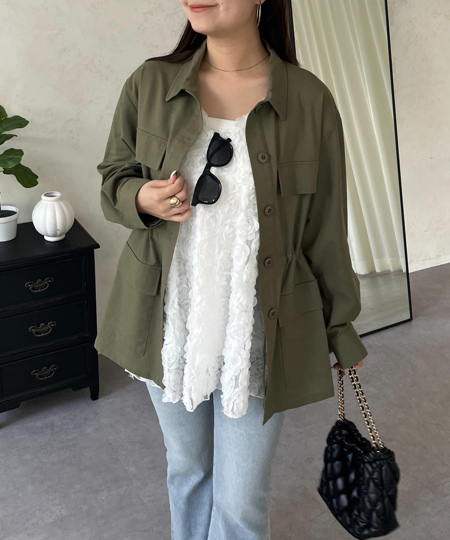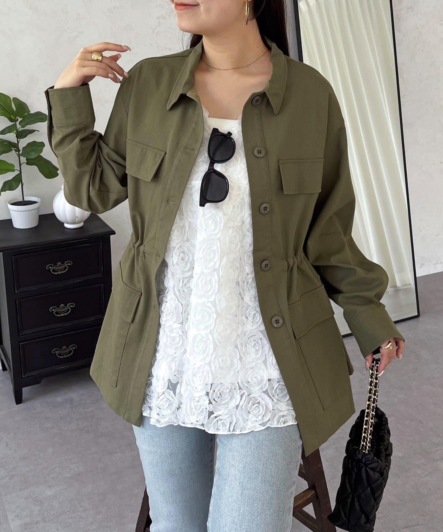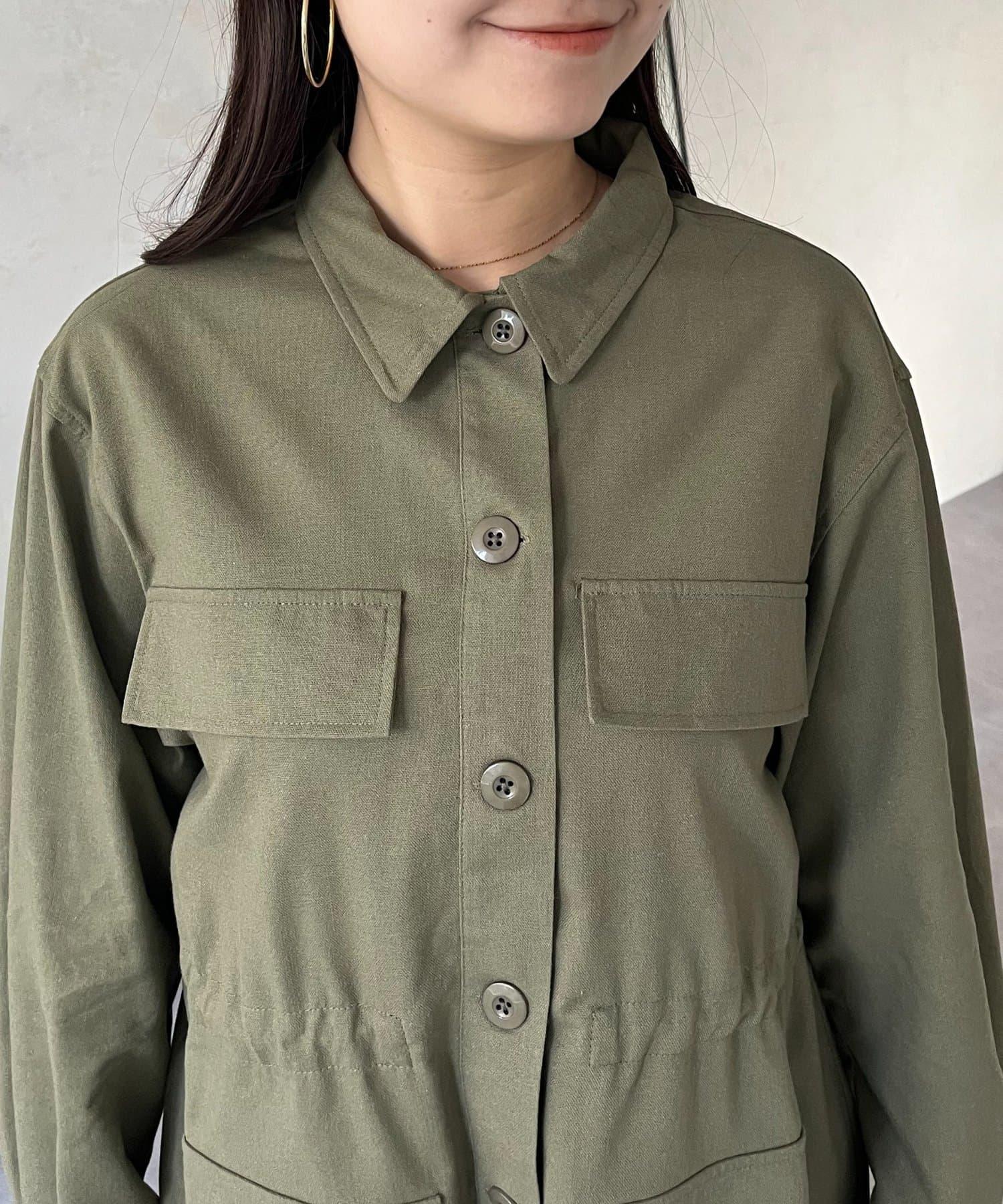 抽繩荷葉擺軍裝風襯衫