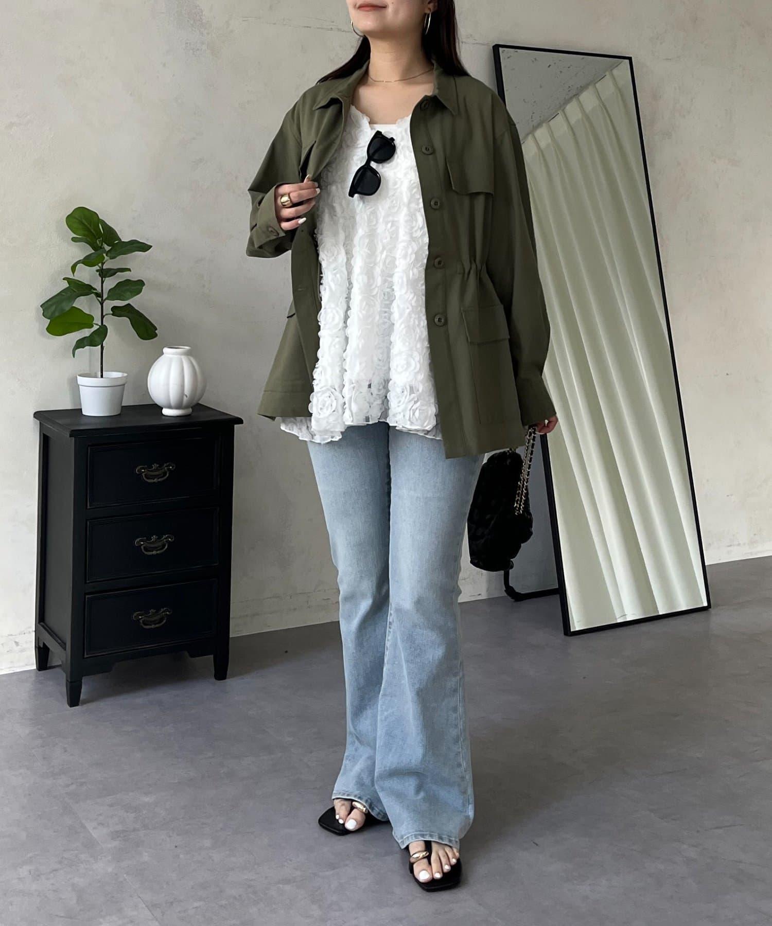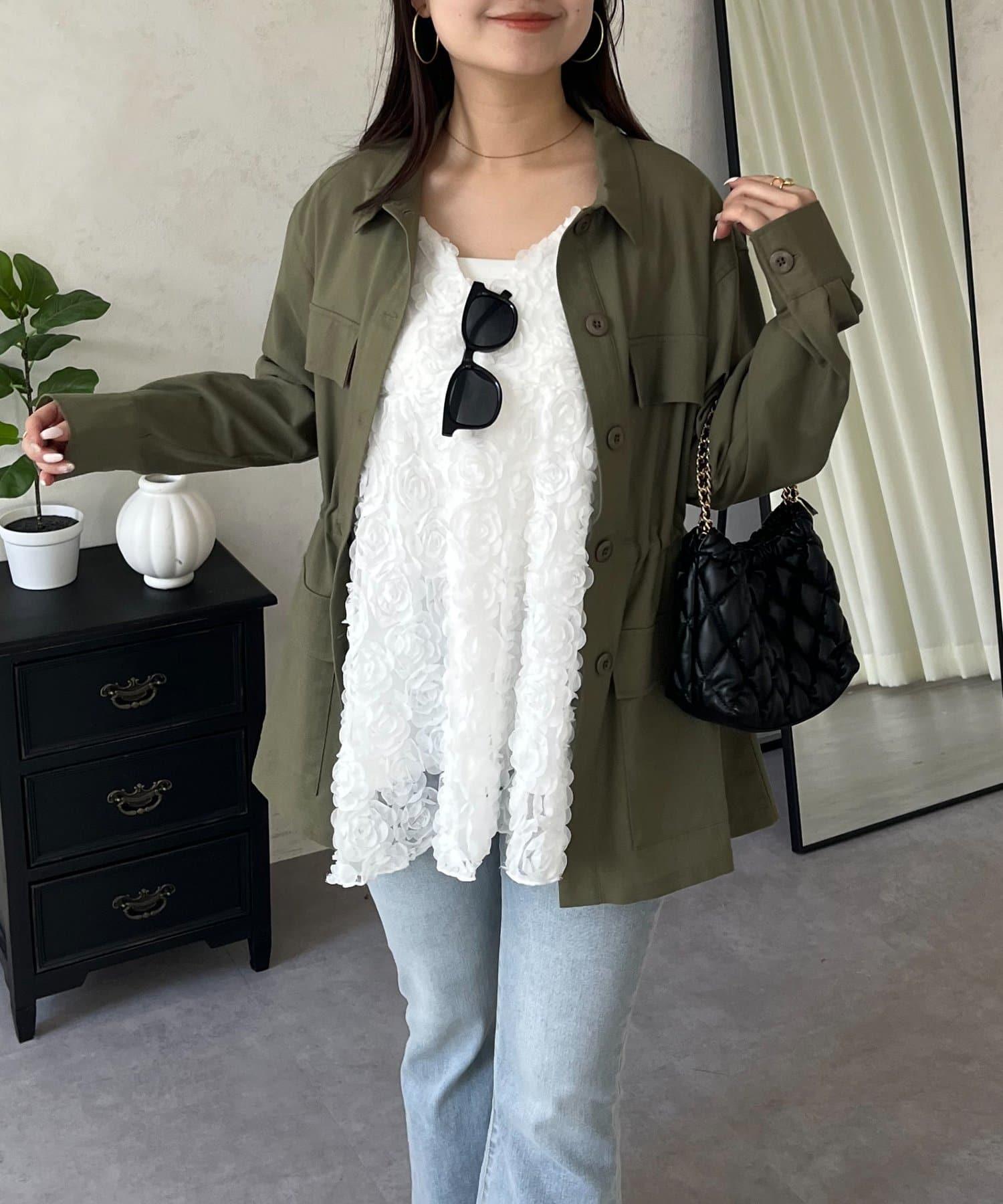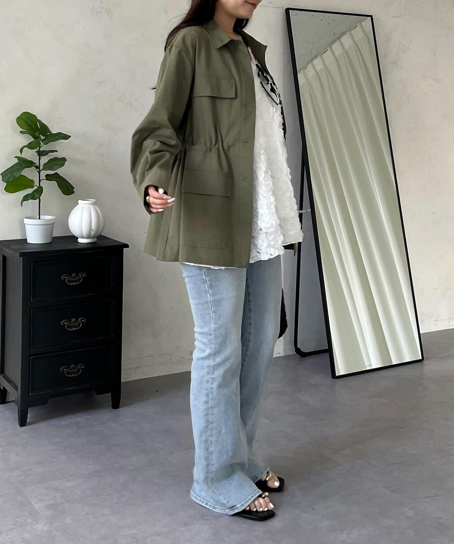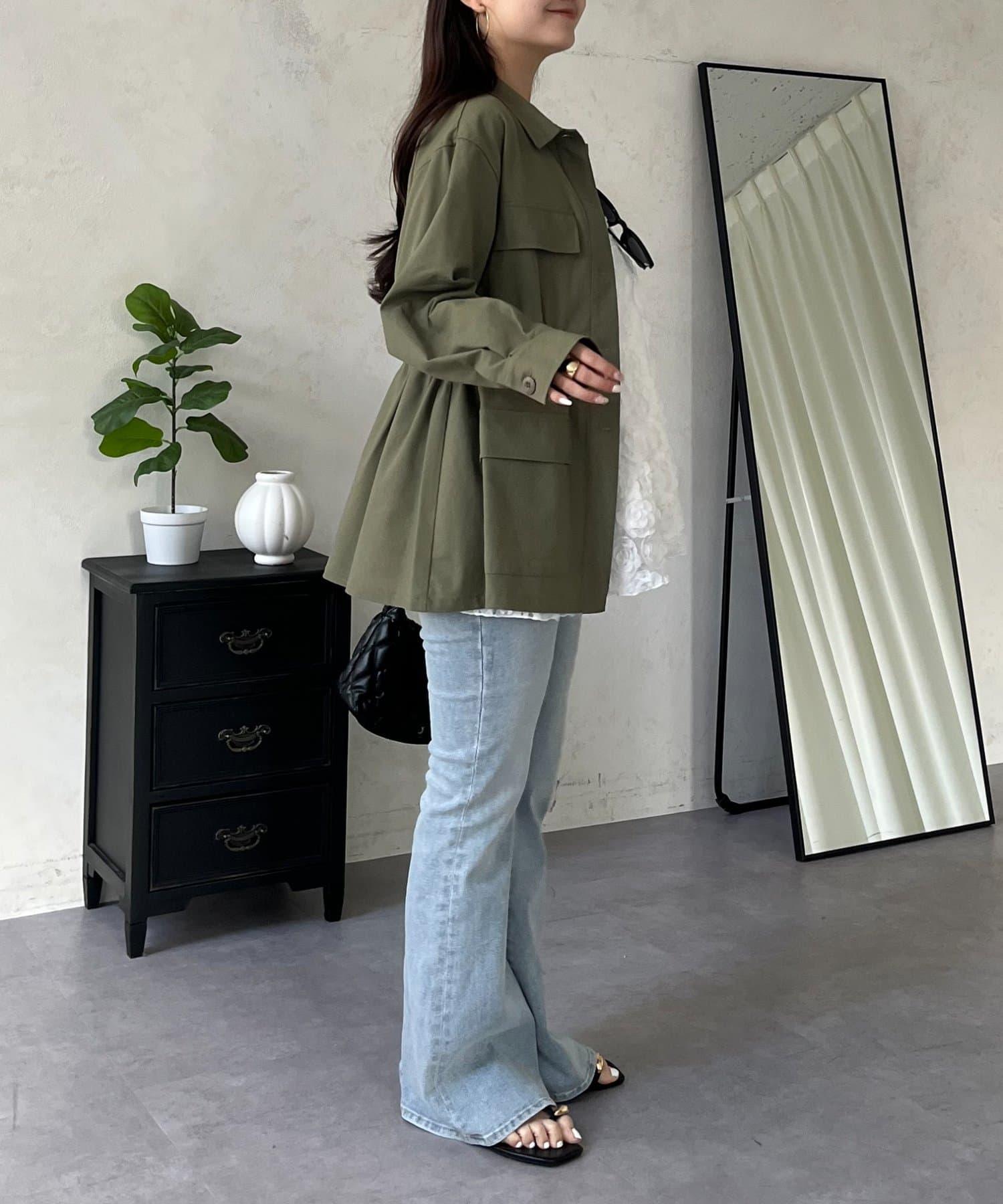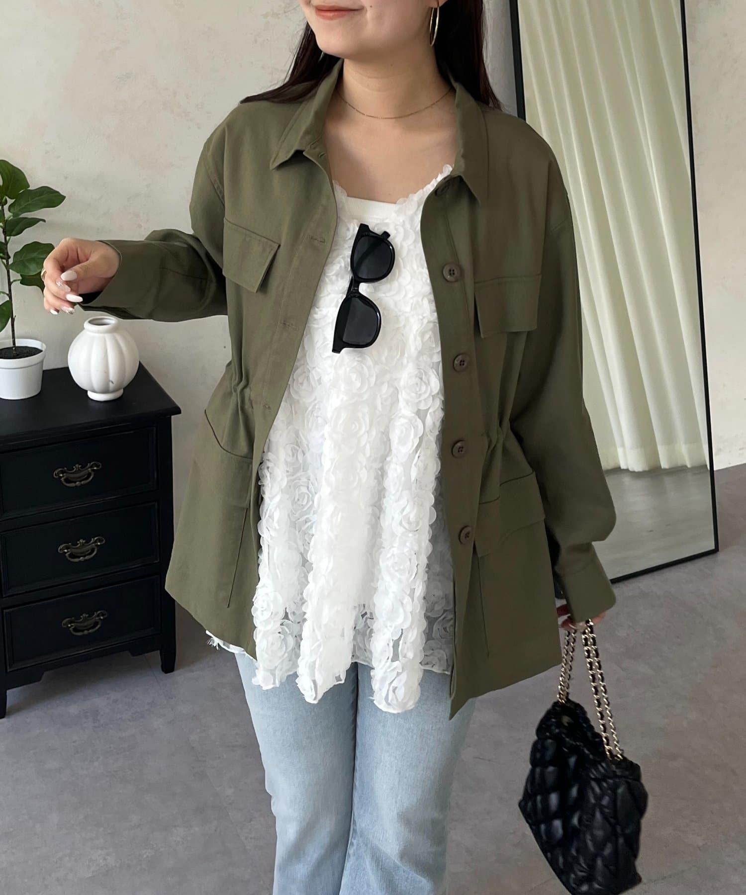 抽繩荷葉擺軍裝風襯衫