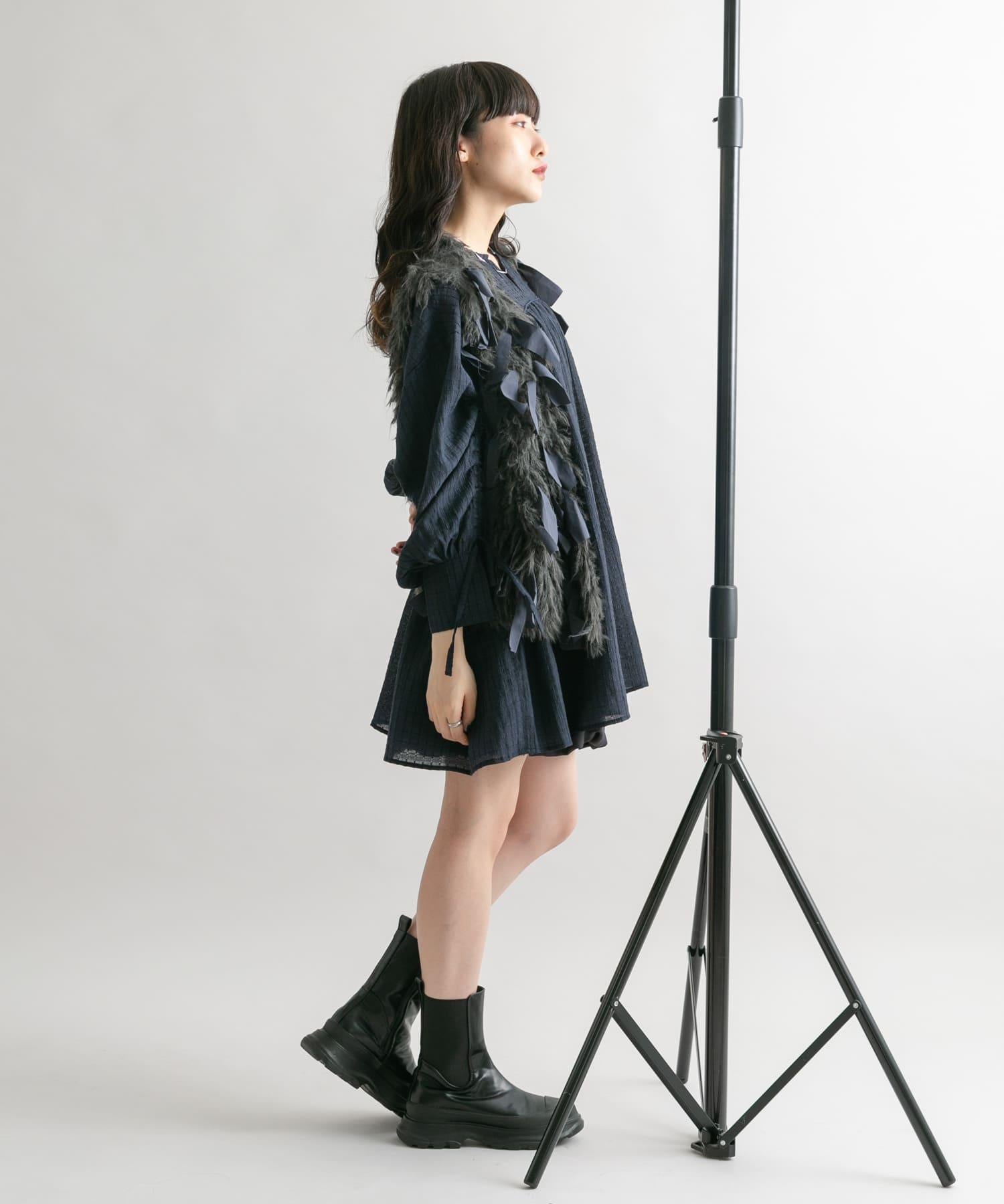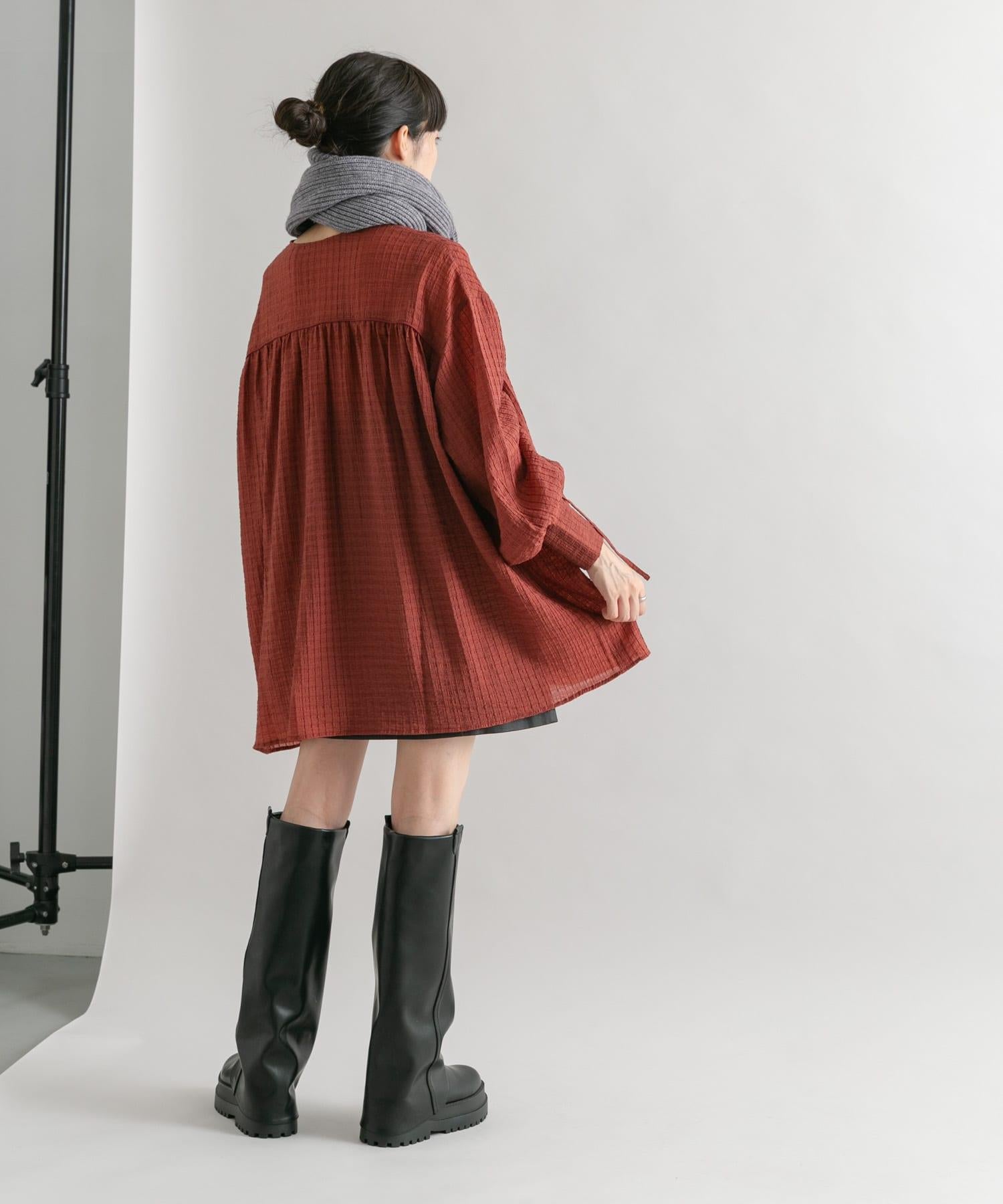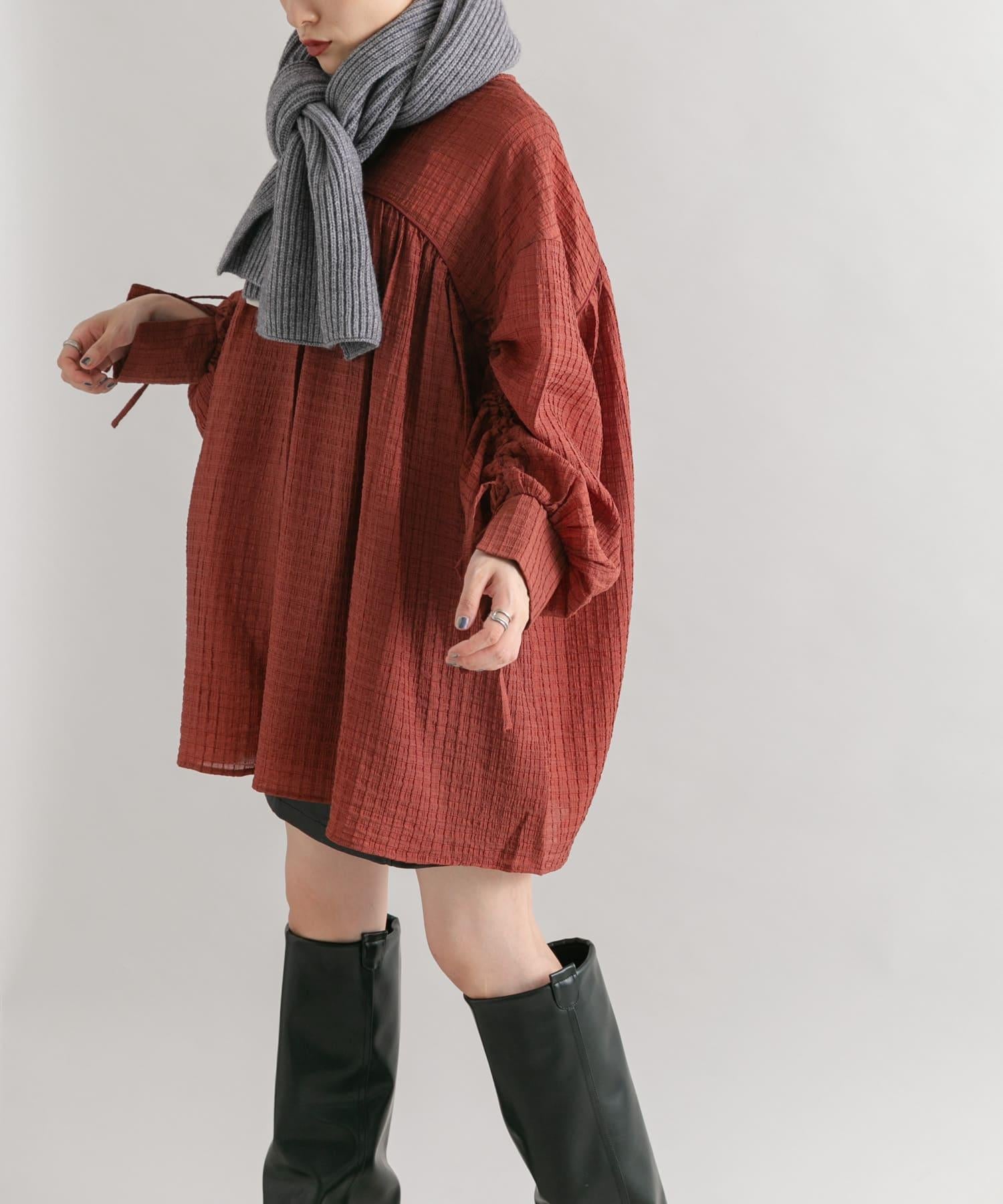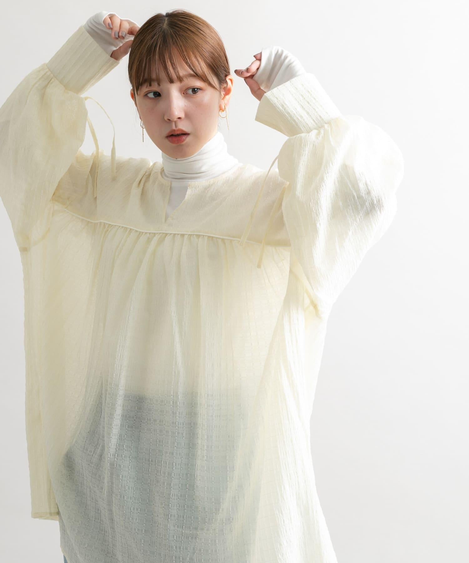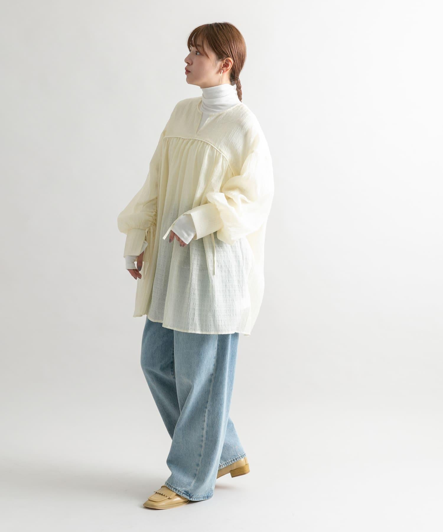 這款迷你連衣裙的特點在於其富有表現力的材質和透明度。它的袖口有抽繩,可通過擠壓產生體積感。此外,這款連衣裙輕便舒適,從炎熱的季節開始就可以穿著,還可以與內搭疊穿,經久耐穿。