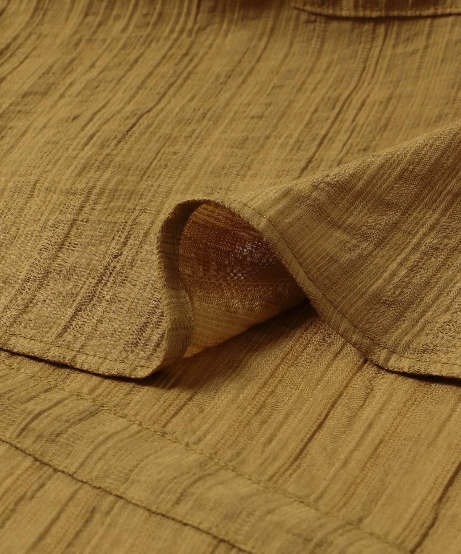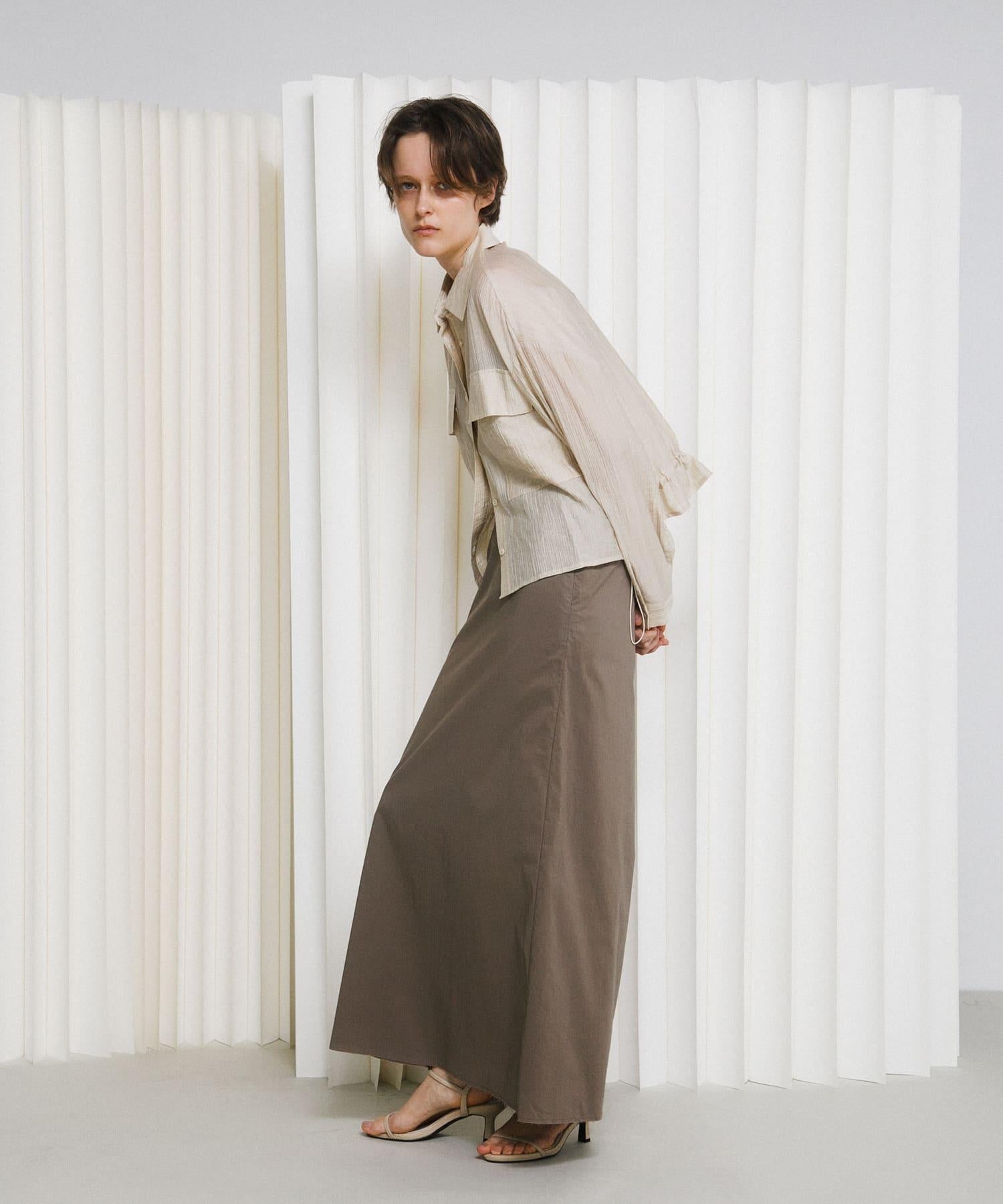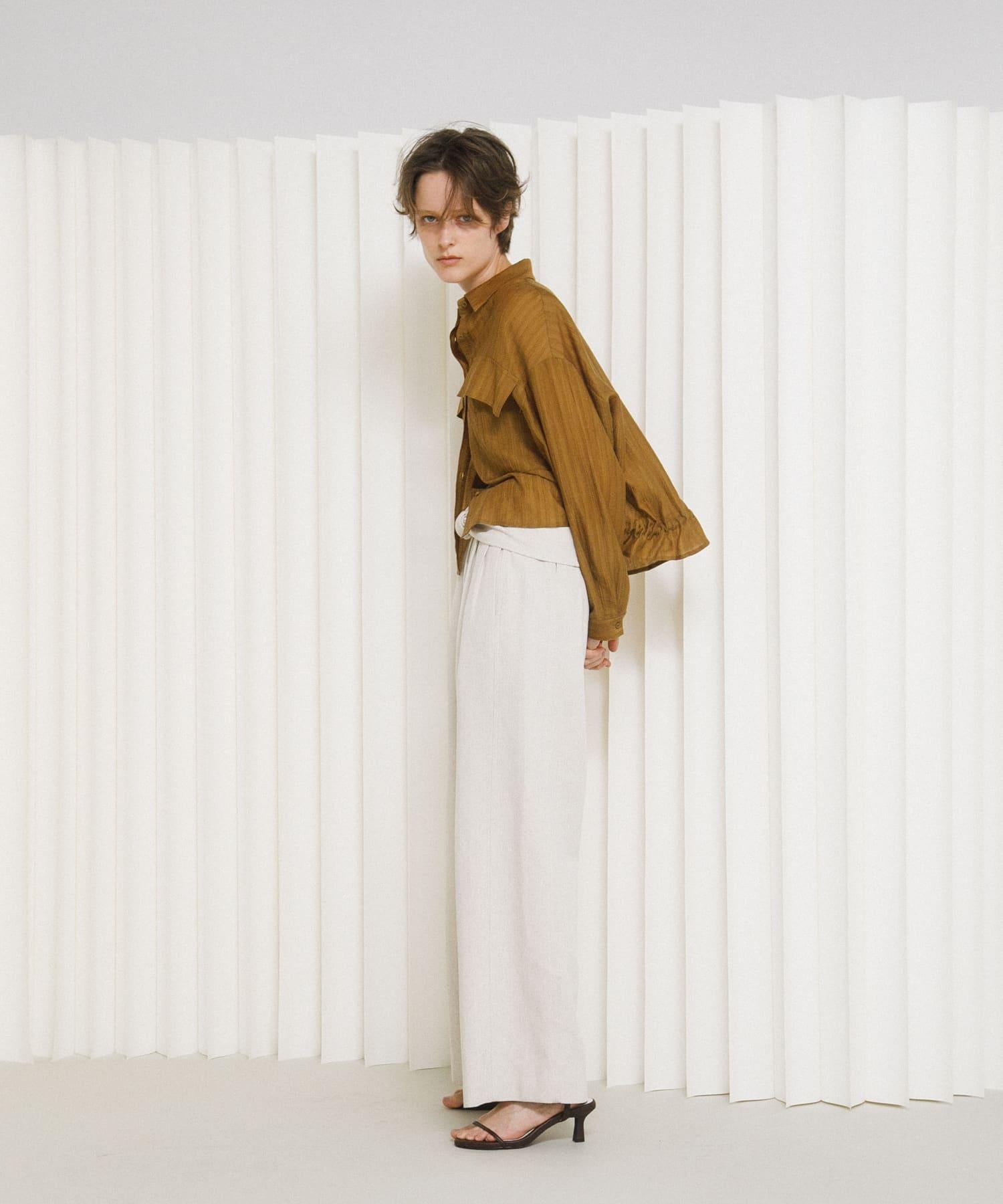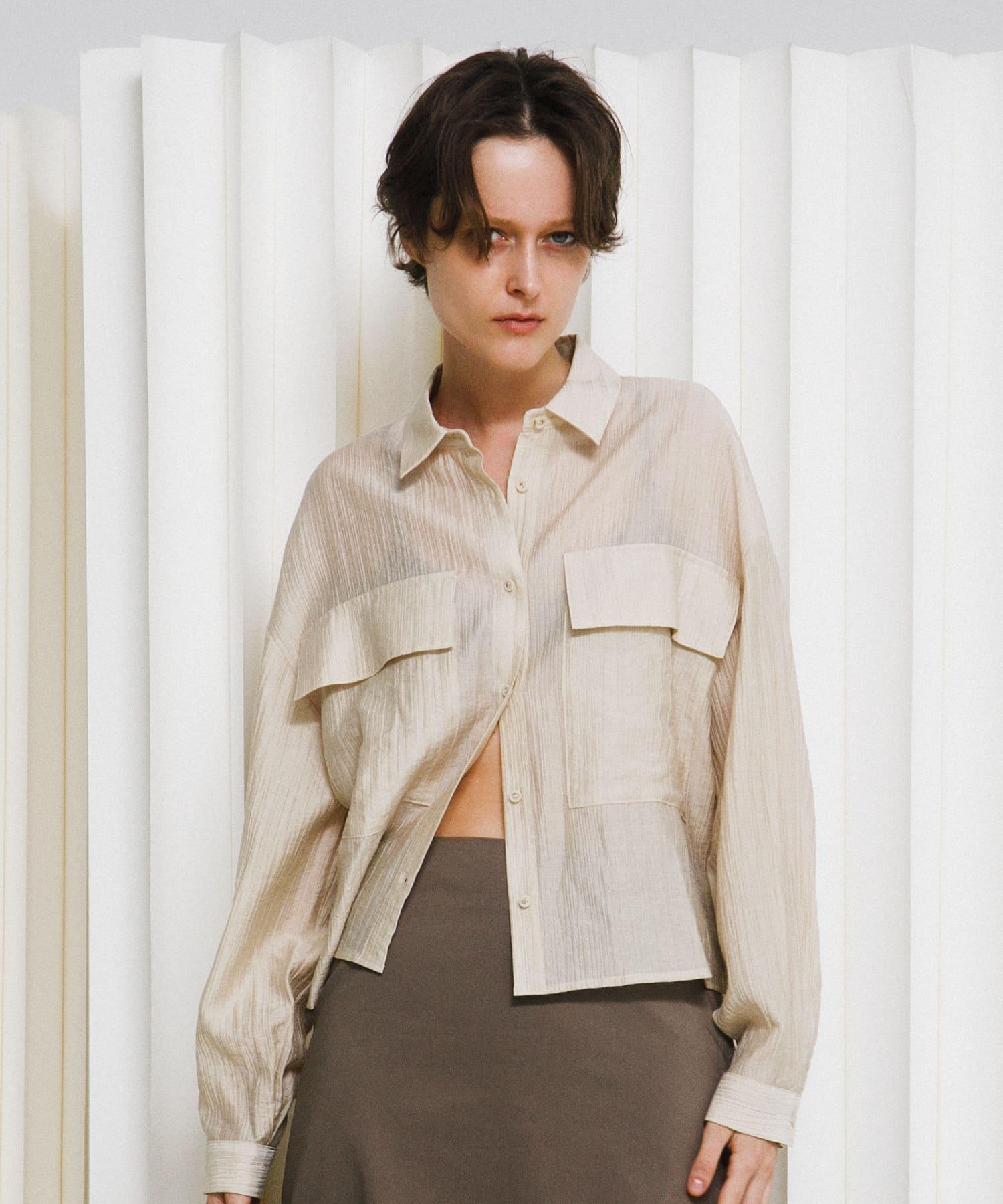 具有獨特表面紋理的繪圖材料為簡單的襯衫款式增添了表現力。褶皺細膩的面料在光線的照射下呈現出柔和的色調,營造出精緻的都市氛圍。寬鬆的超大版型與前襟的大翻蓋口袋相得益彰,避免了過於單調的感覺。由於面料輕薄透氣,早春時節可作為主上衣,換季時則可作為輕便的外衣,輕鬆套在吊帶衫外面。這是一款可以穿很久的襯衫,根據搭配的單品不同,它也是能帶來各種不同造型的主打單品。
