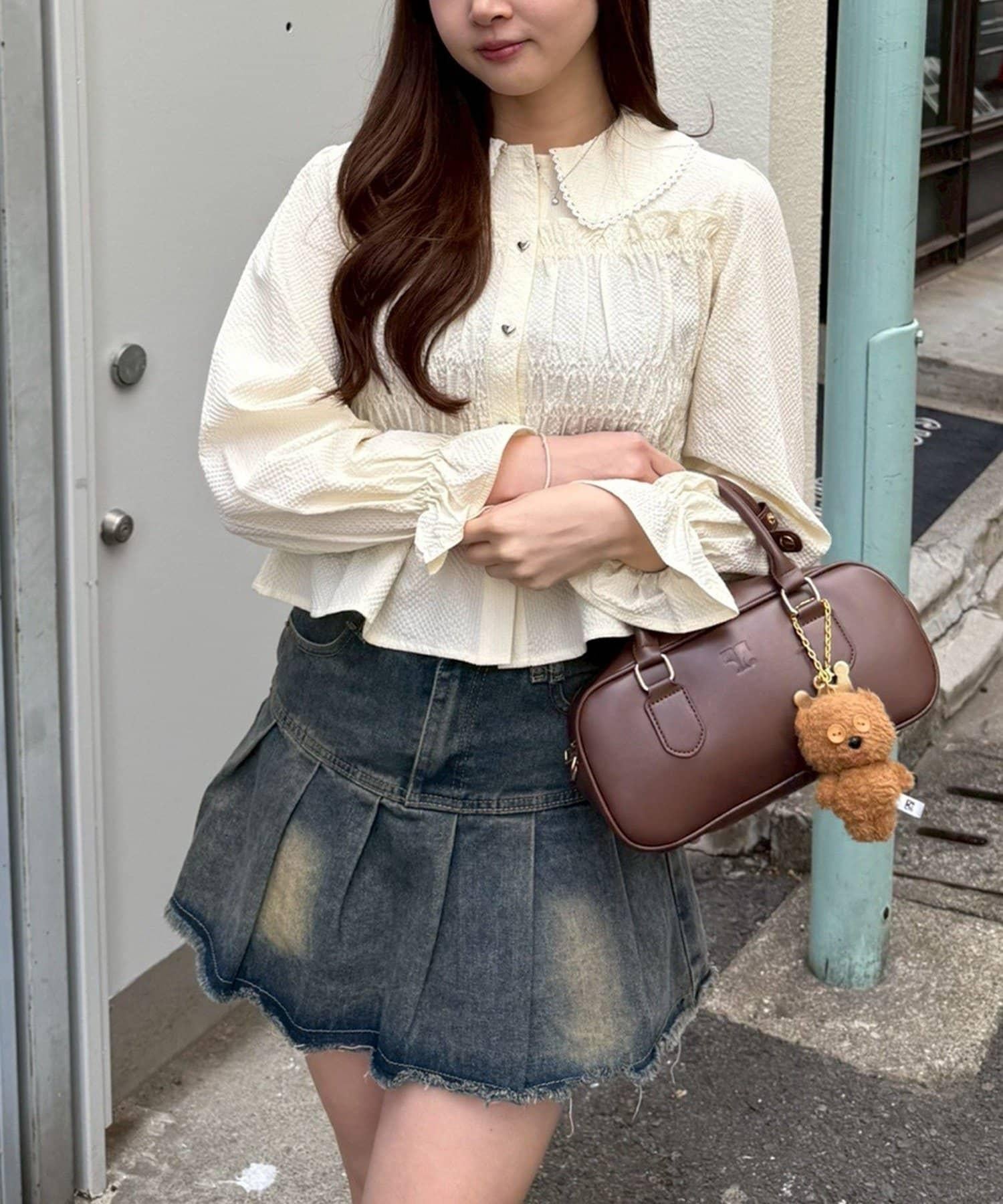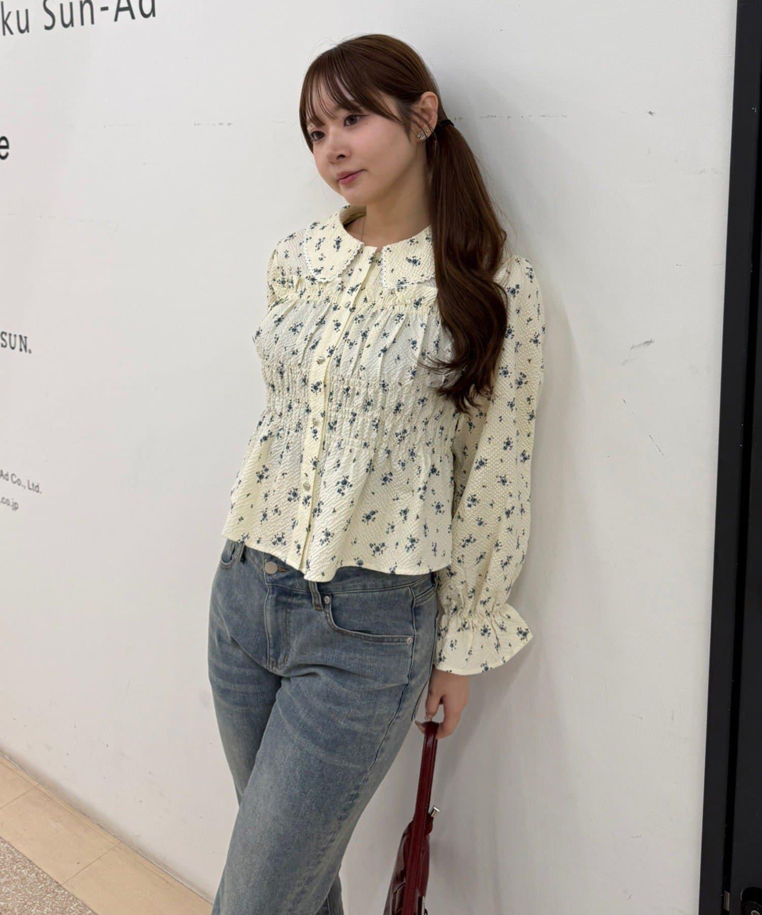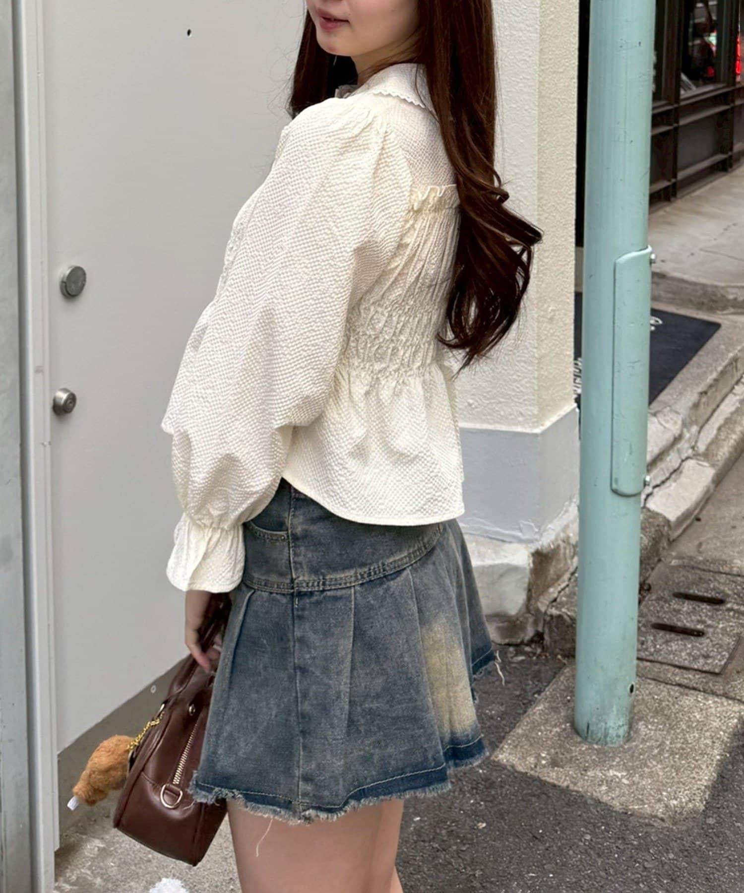 上衣給人少女感十足的印象,建議搭配牛仔褲穿出春天的感覺。