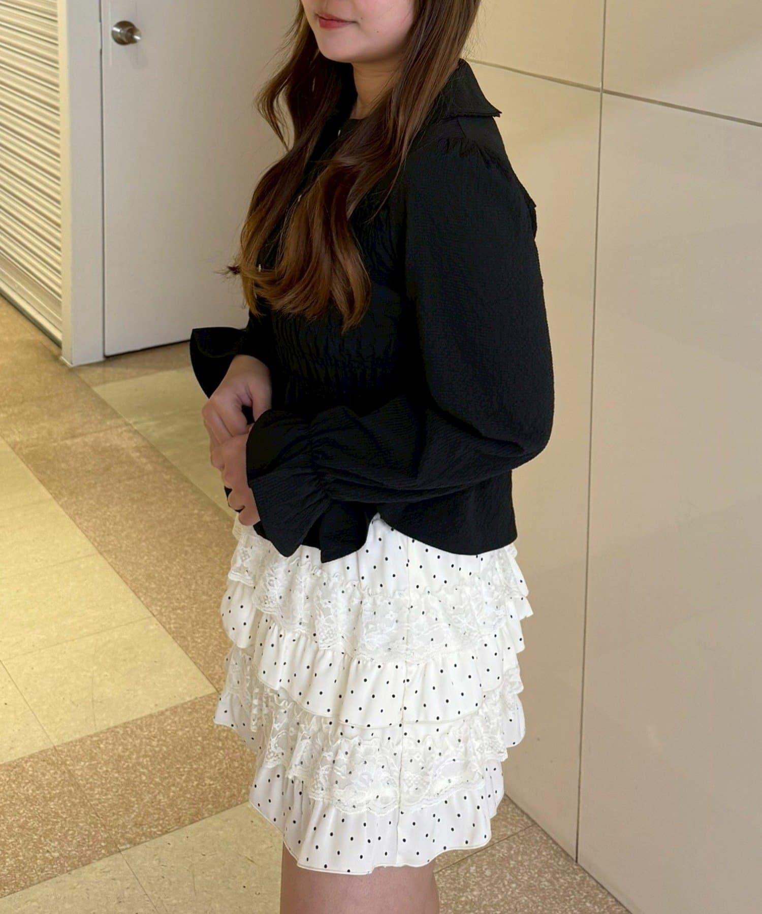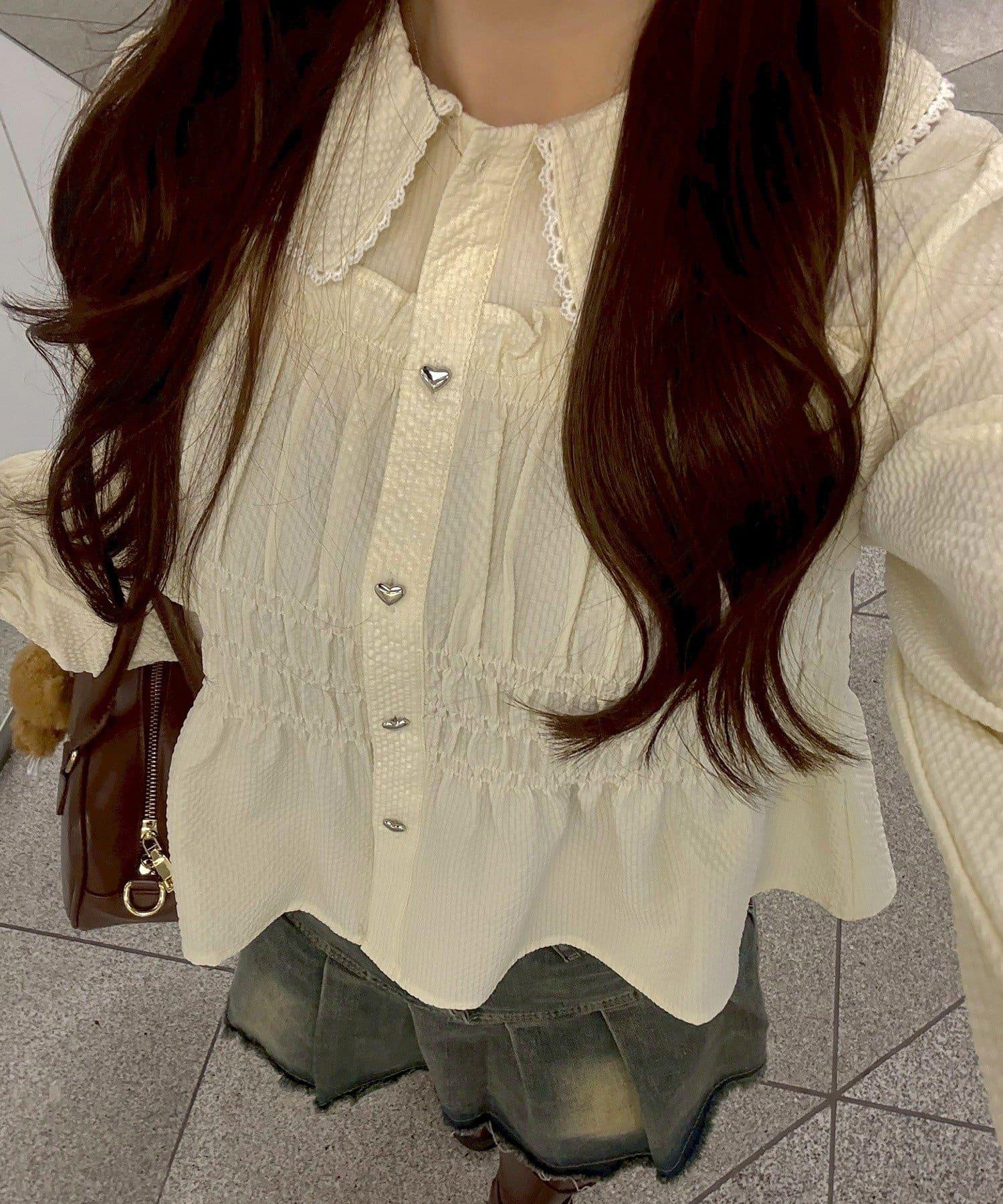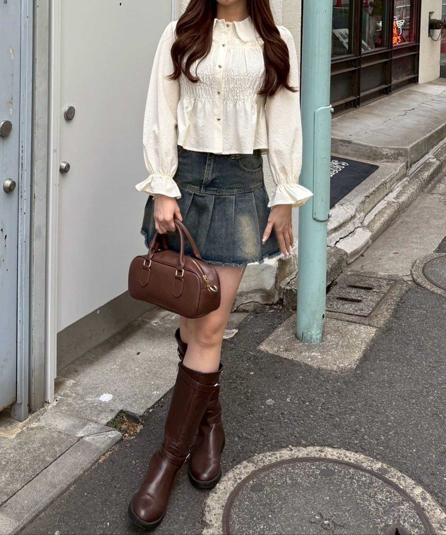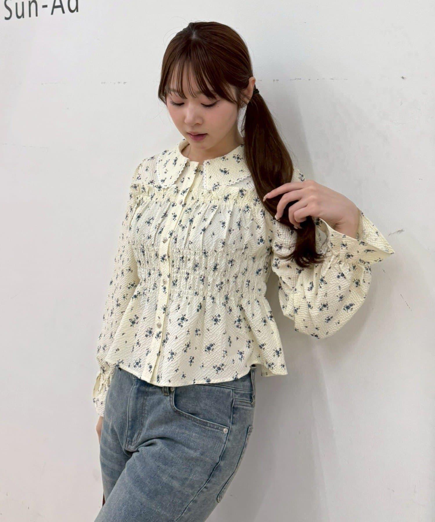 上衣給人少女感十足的印象,建議搭配牛仔褲穿出春天的感覺。