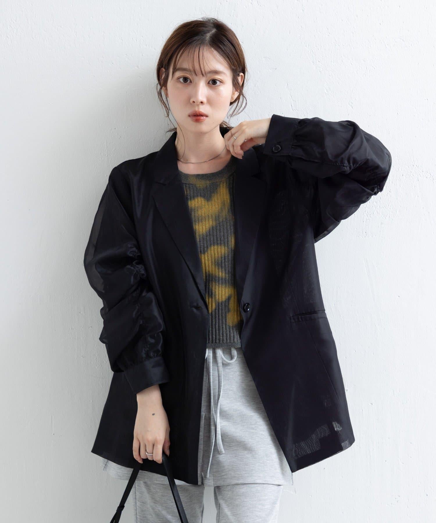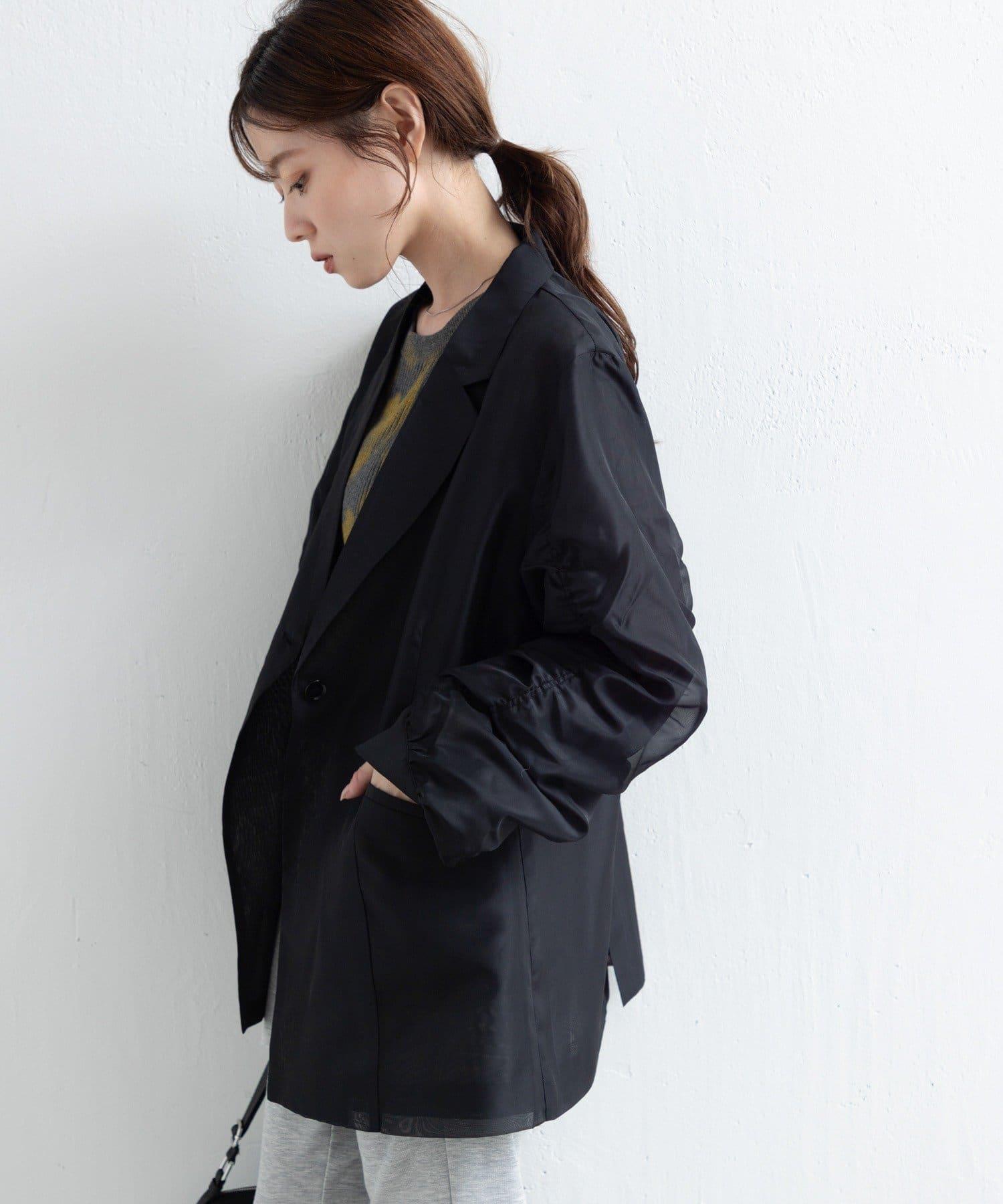 透明感和褶皺給人女性化的印象,同時又是經典的剪裁夾克造型。