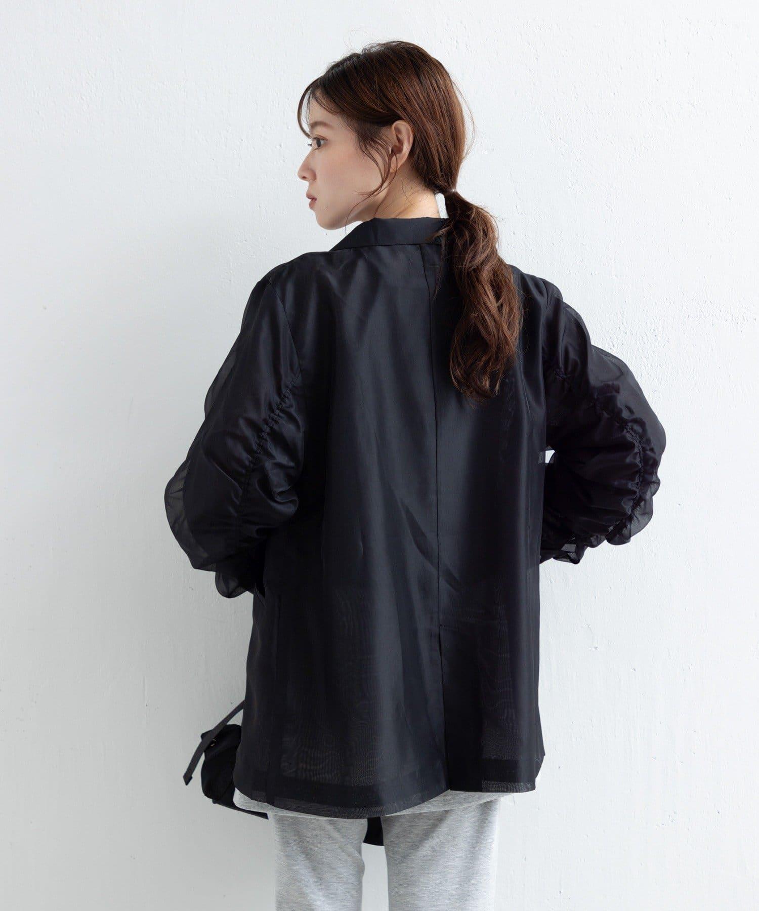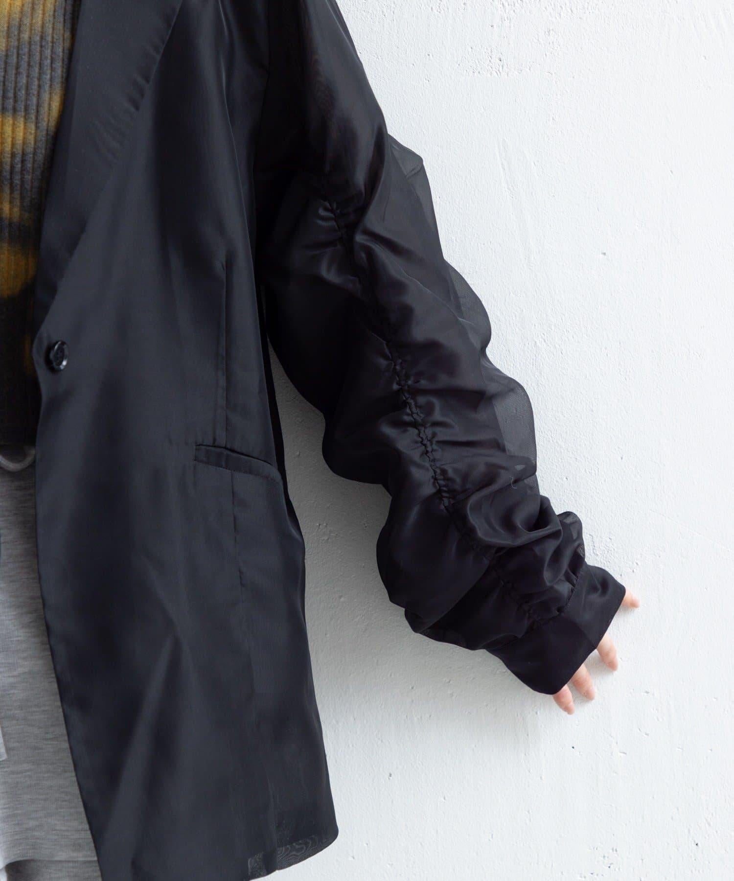 手臂聚攏夾克,採用時髦的透視面料,袖子上有聚攏細節。