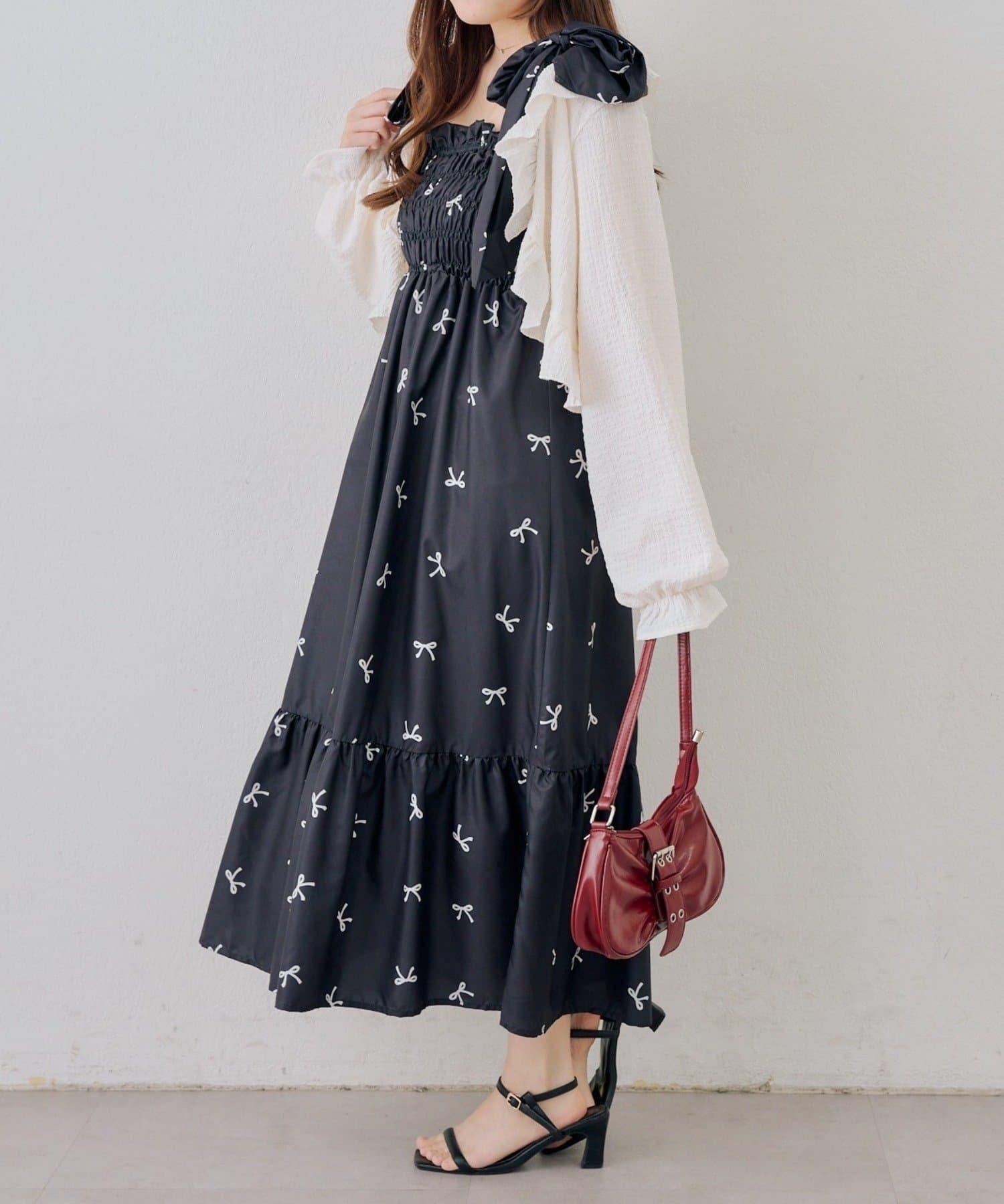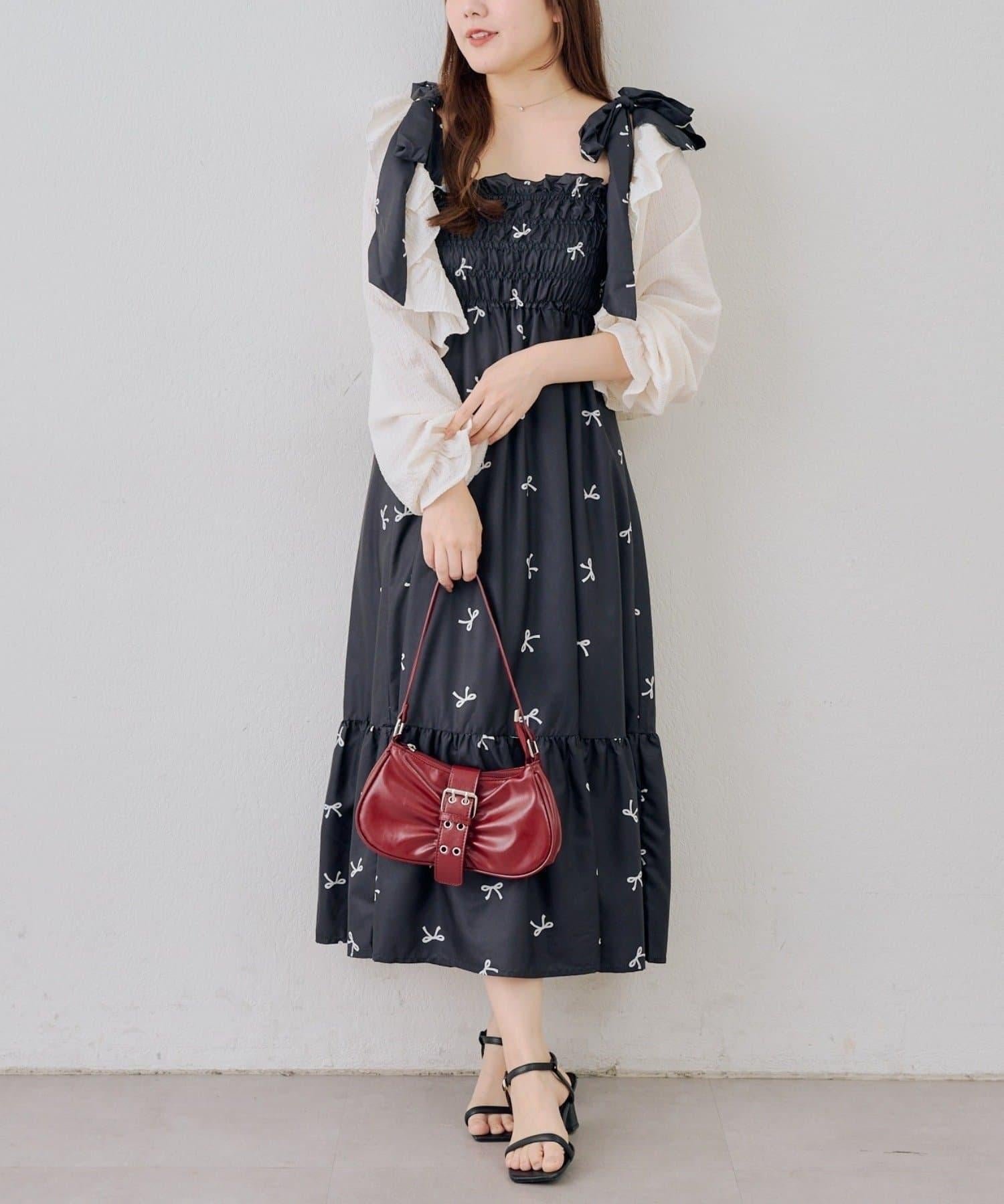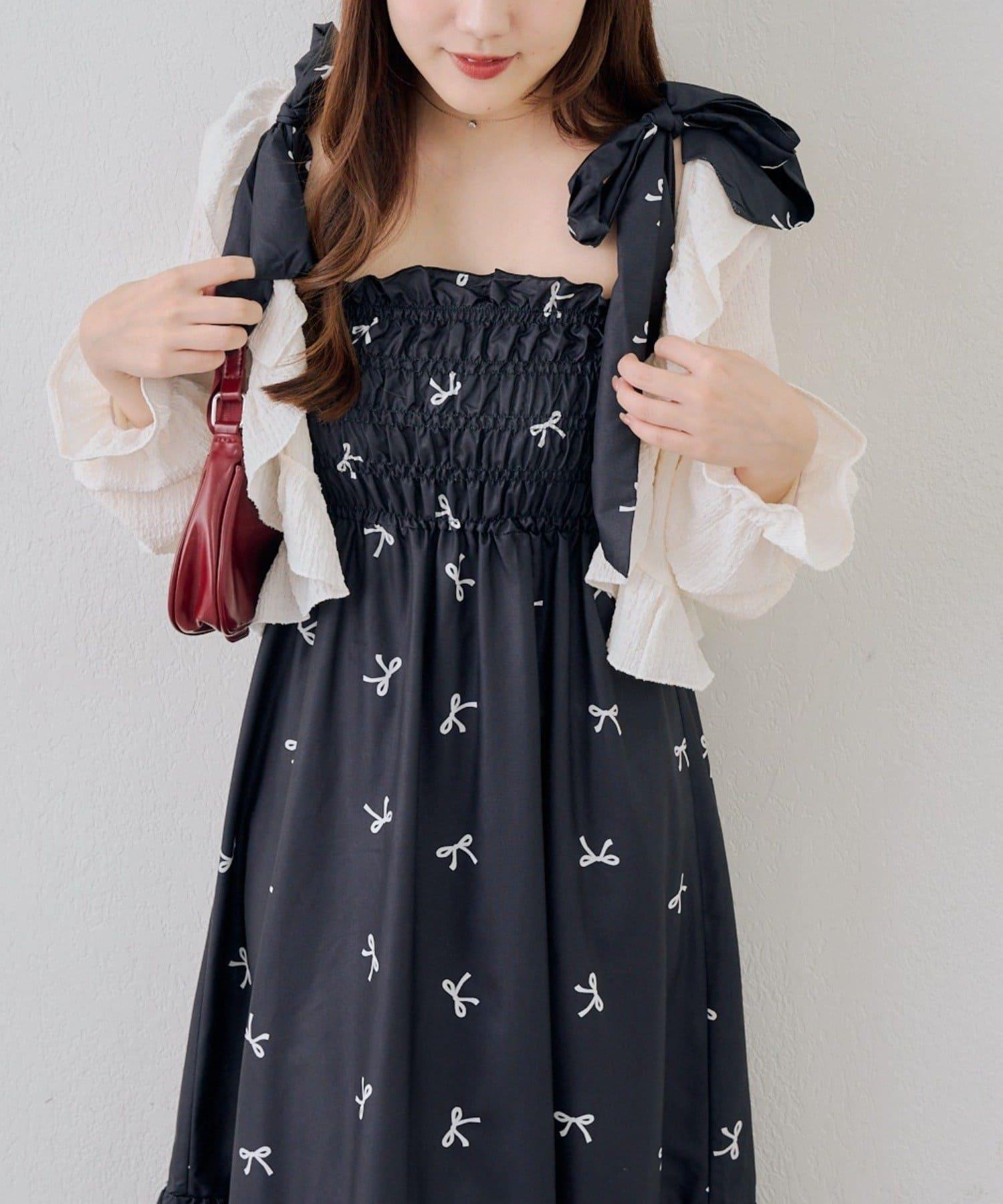 肩部的絲帶可以自由繫結,因此可以根據身高調整長度!