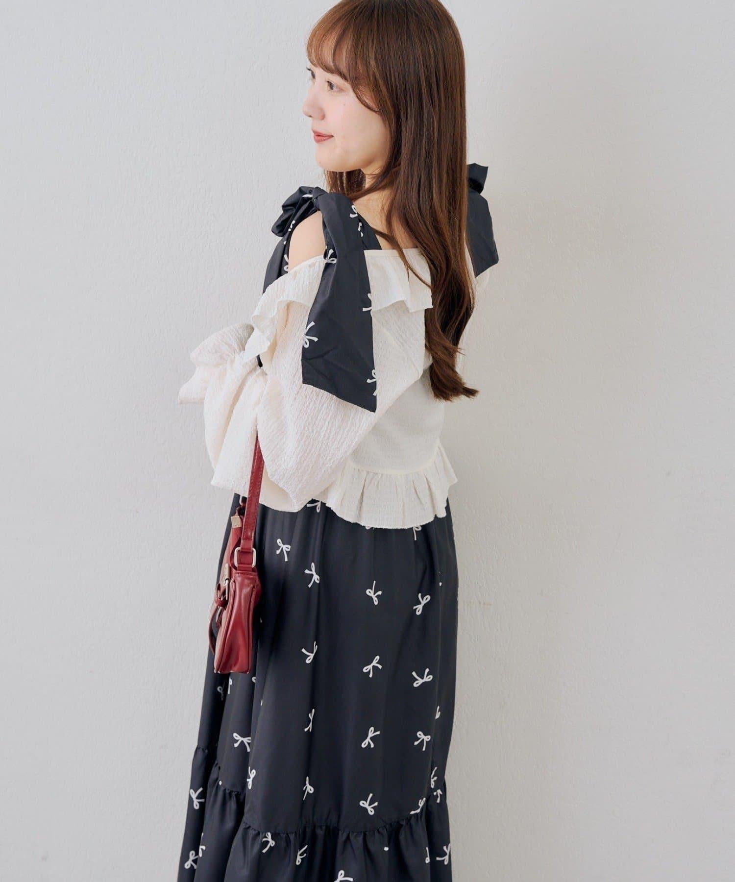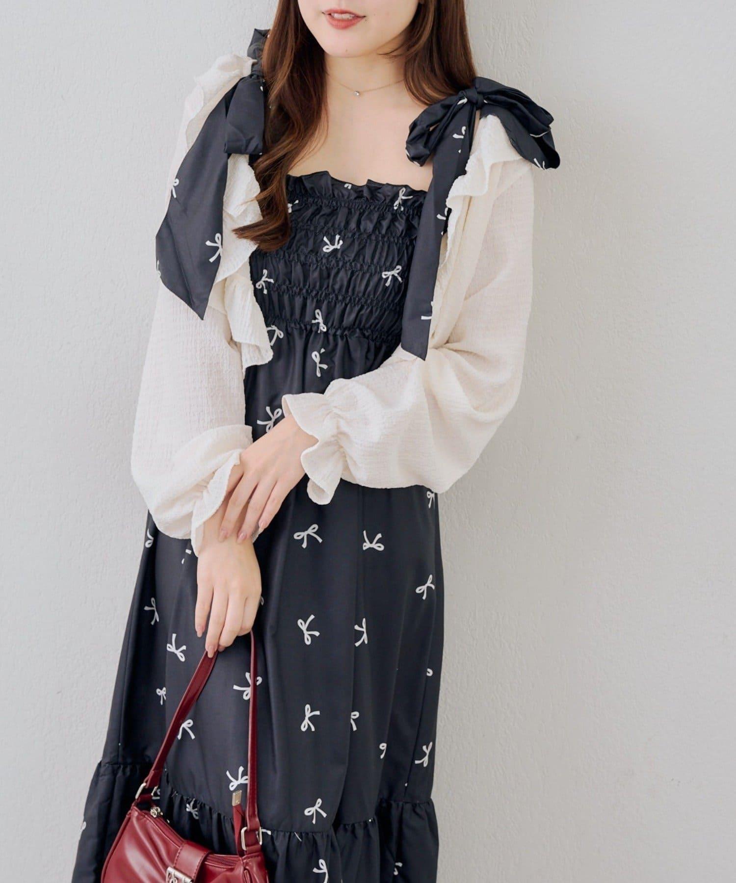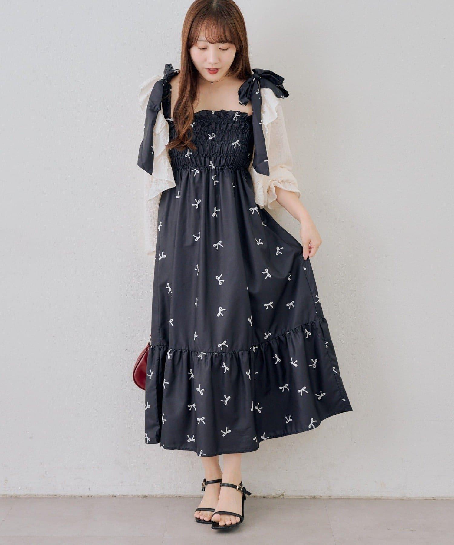 肩部的絲帶可以自由繫結,因此可以根據身高調整長度!