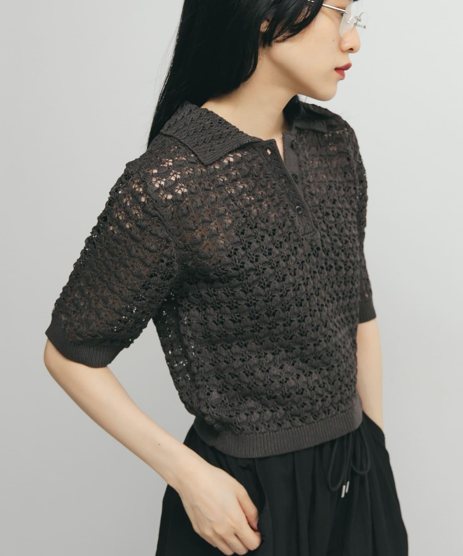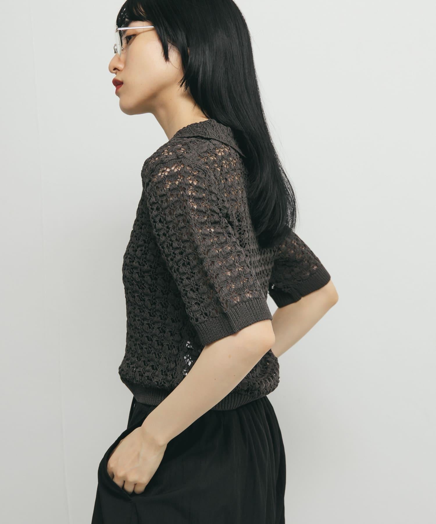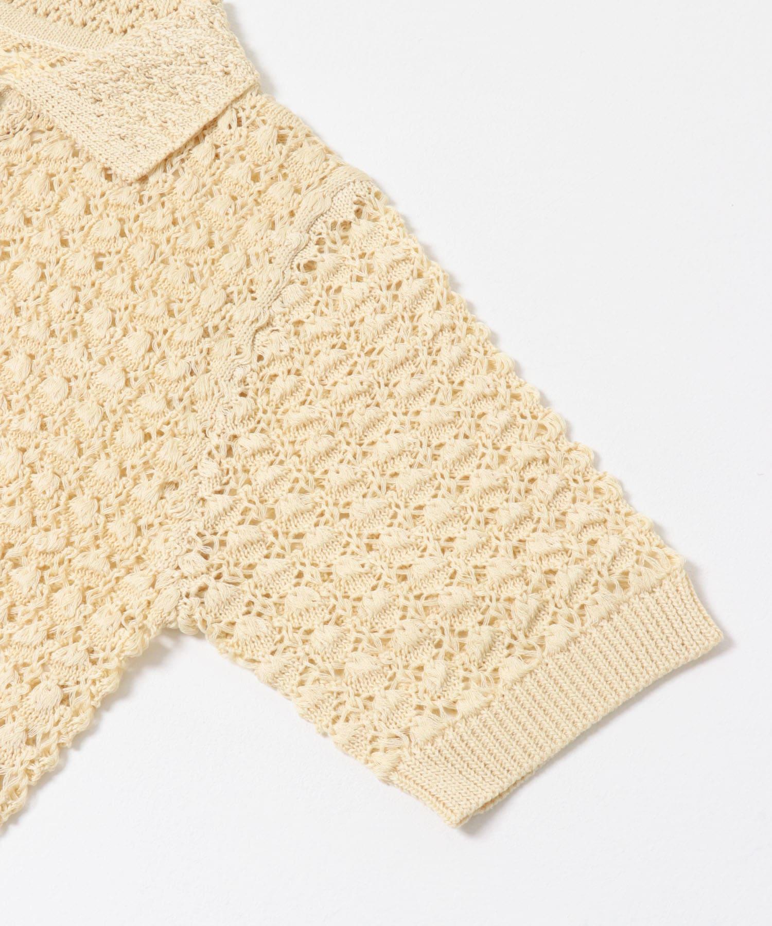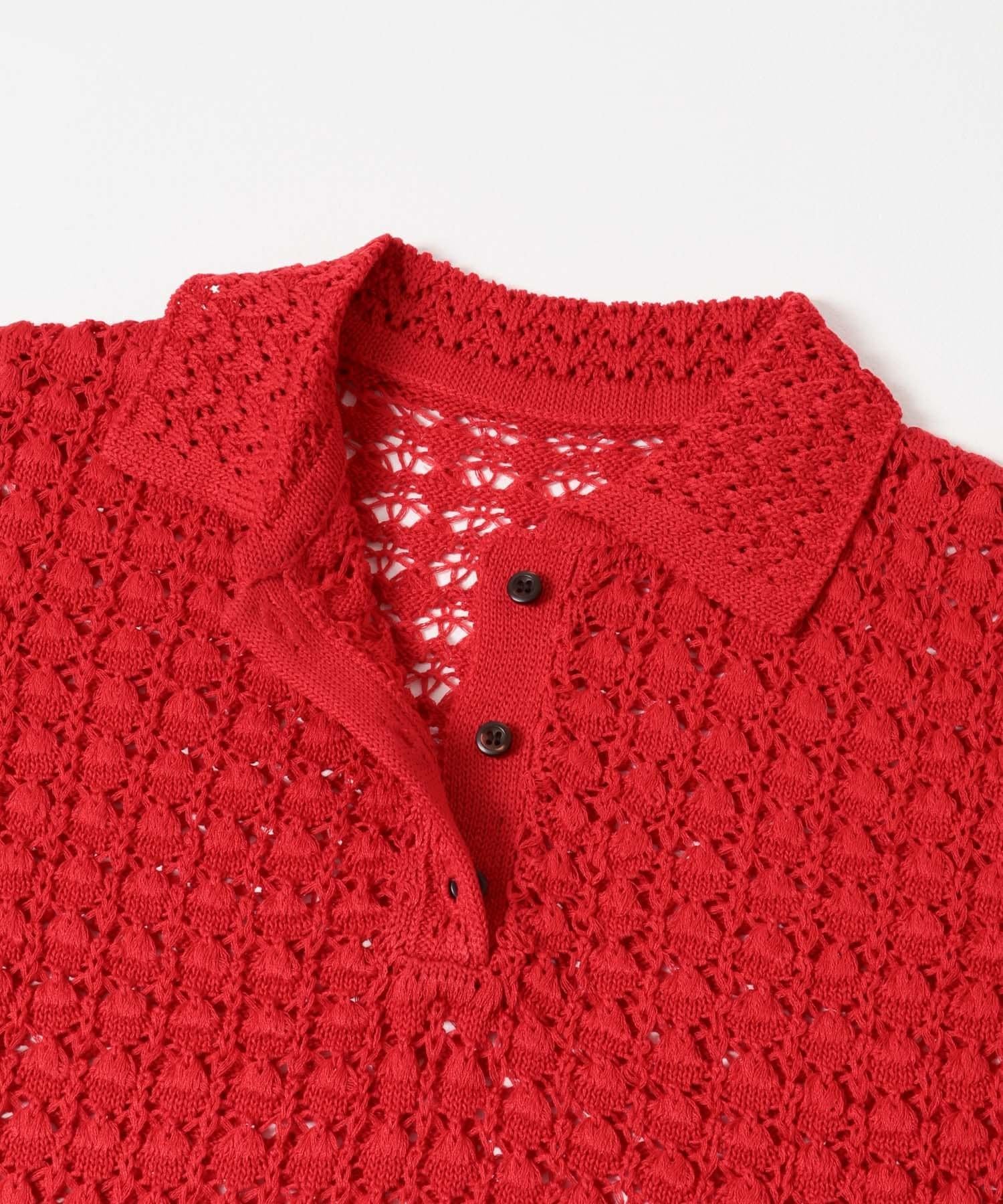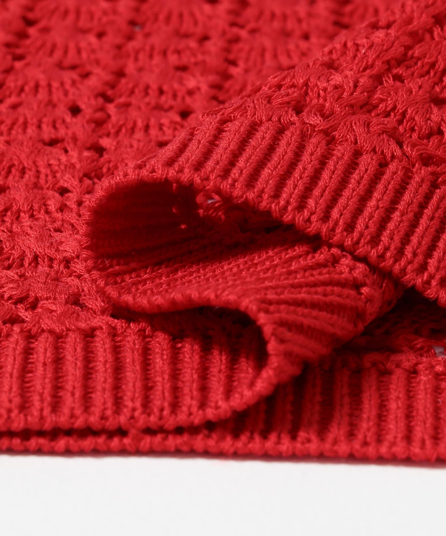 鏤空針織面料,表面紋理豐富,略帶復古氣息。