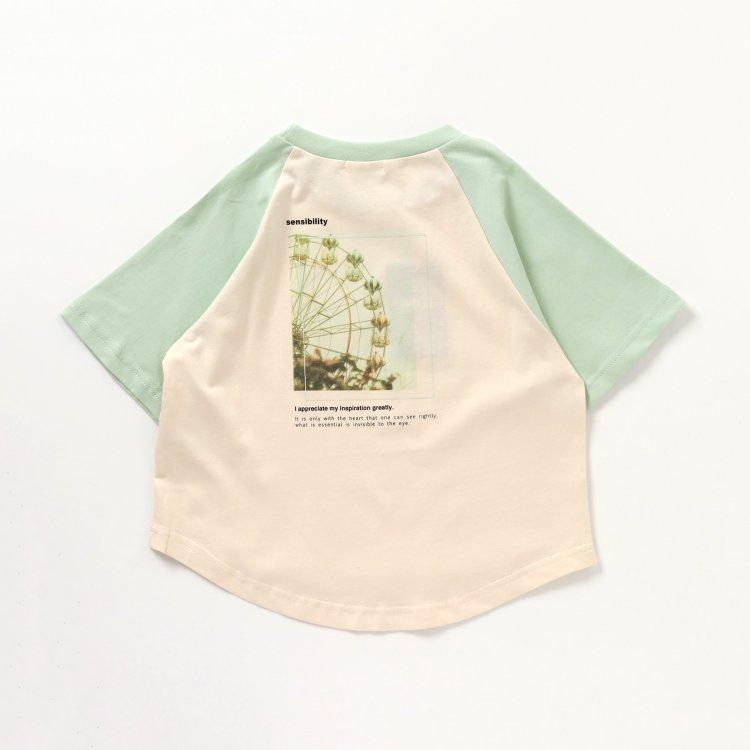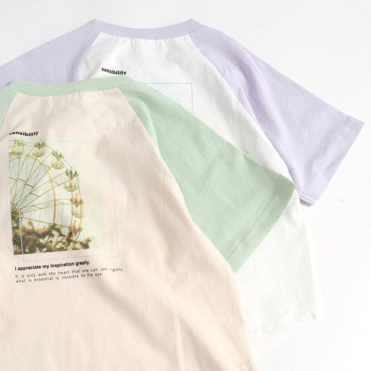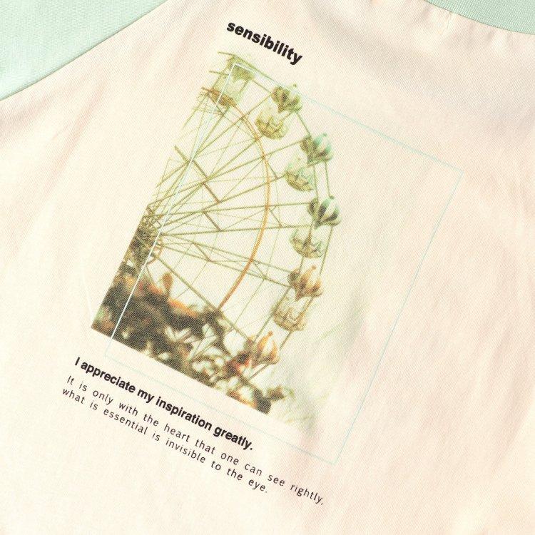 寬鬆的剪裁和raglan 配色。正面印有漸變徽標,背面印有照片圖案。