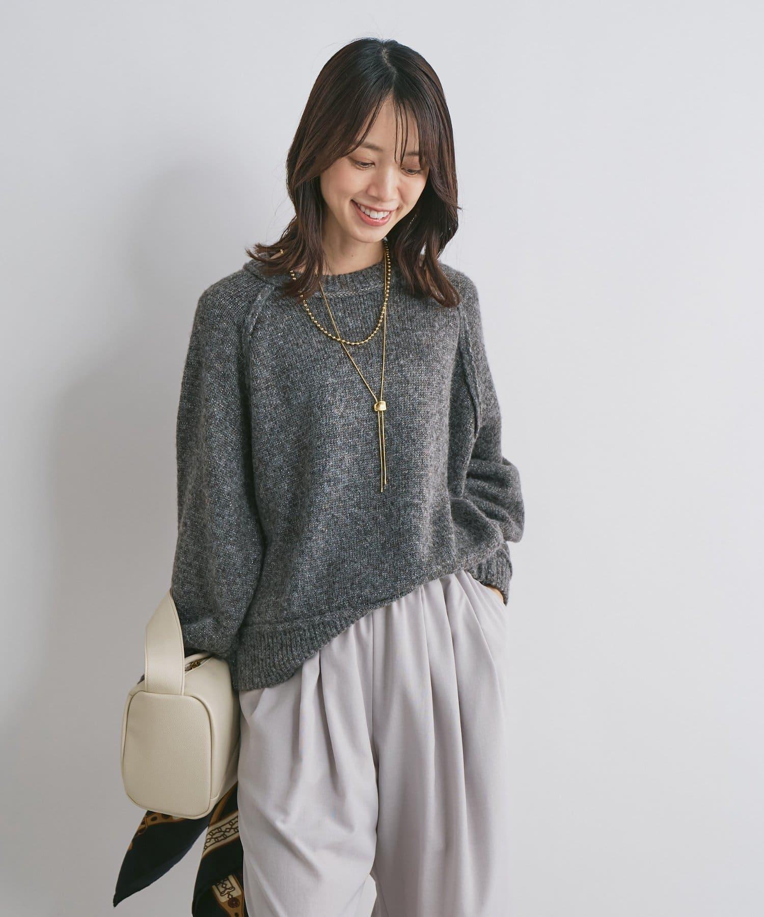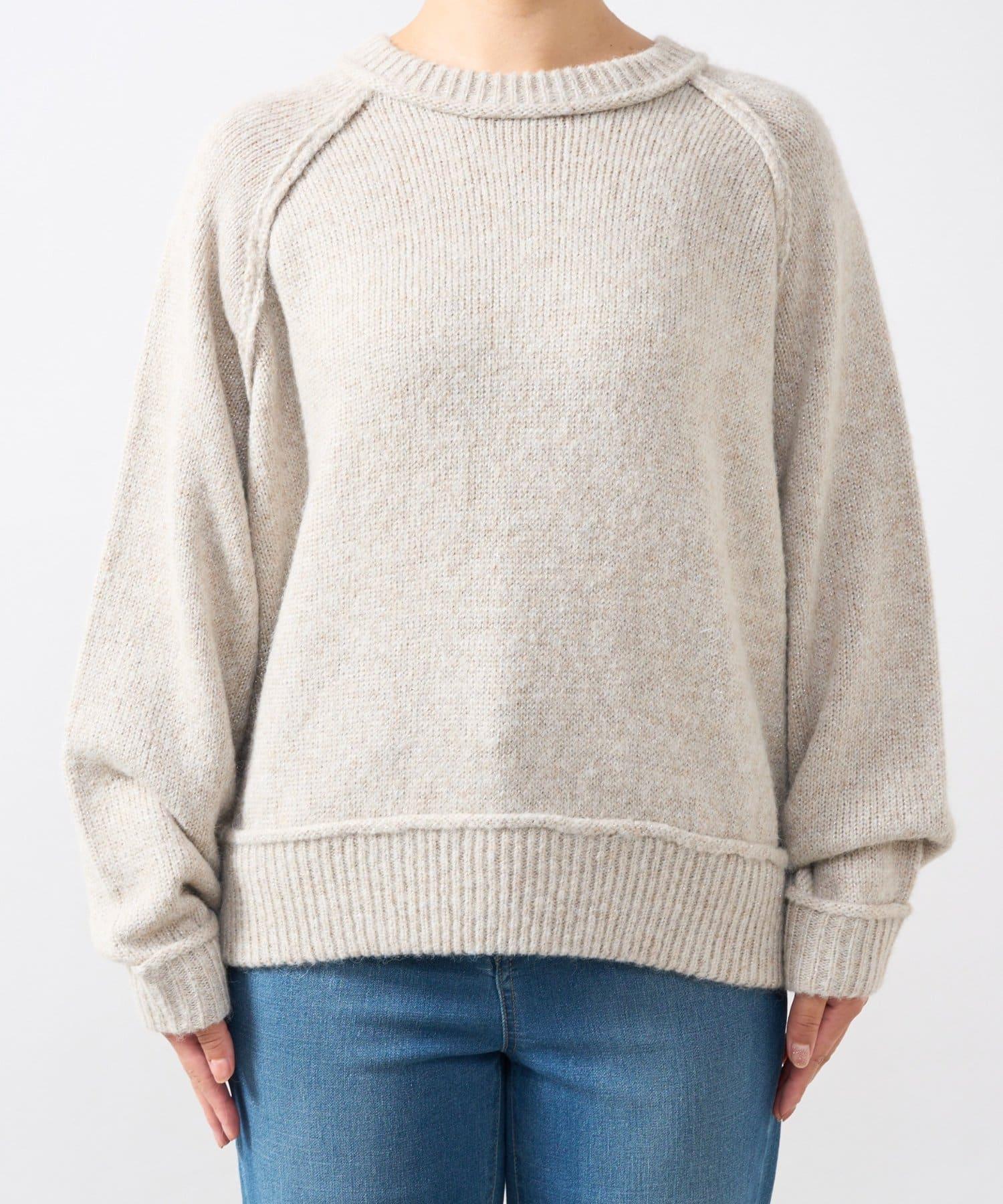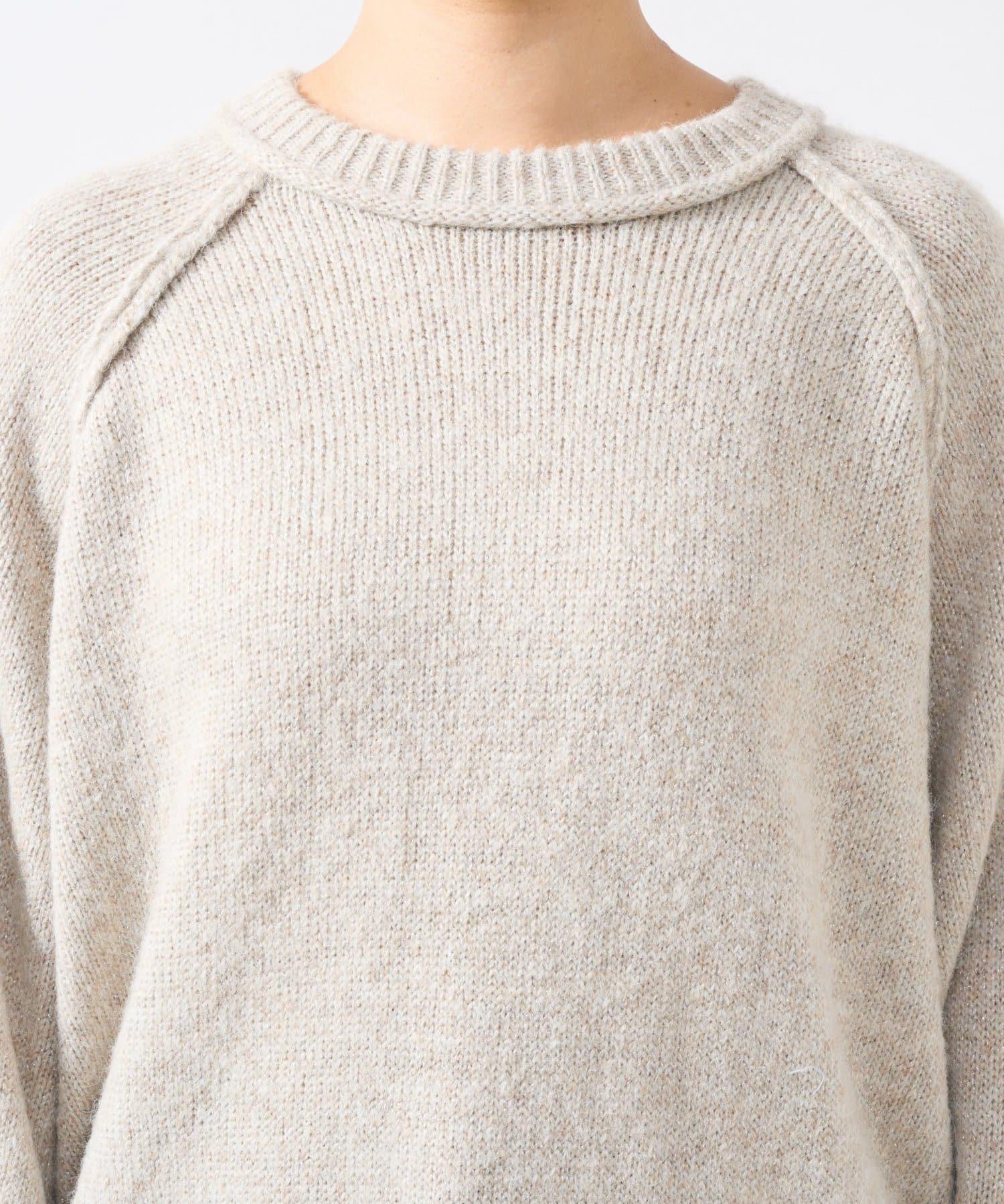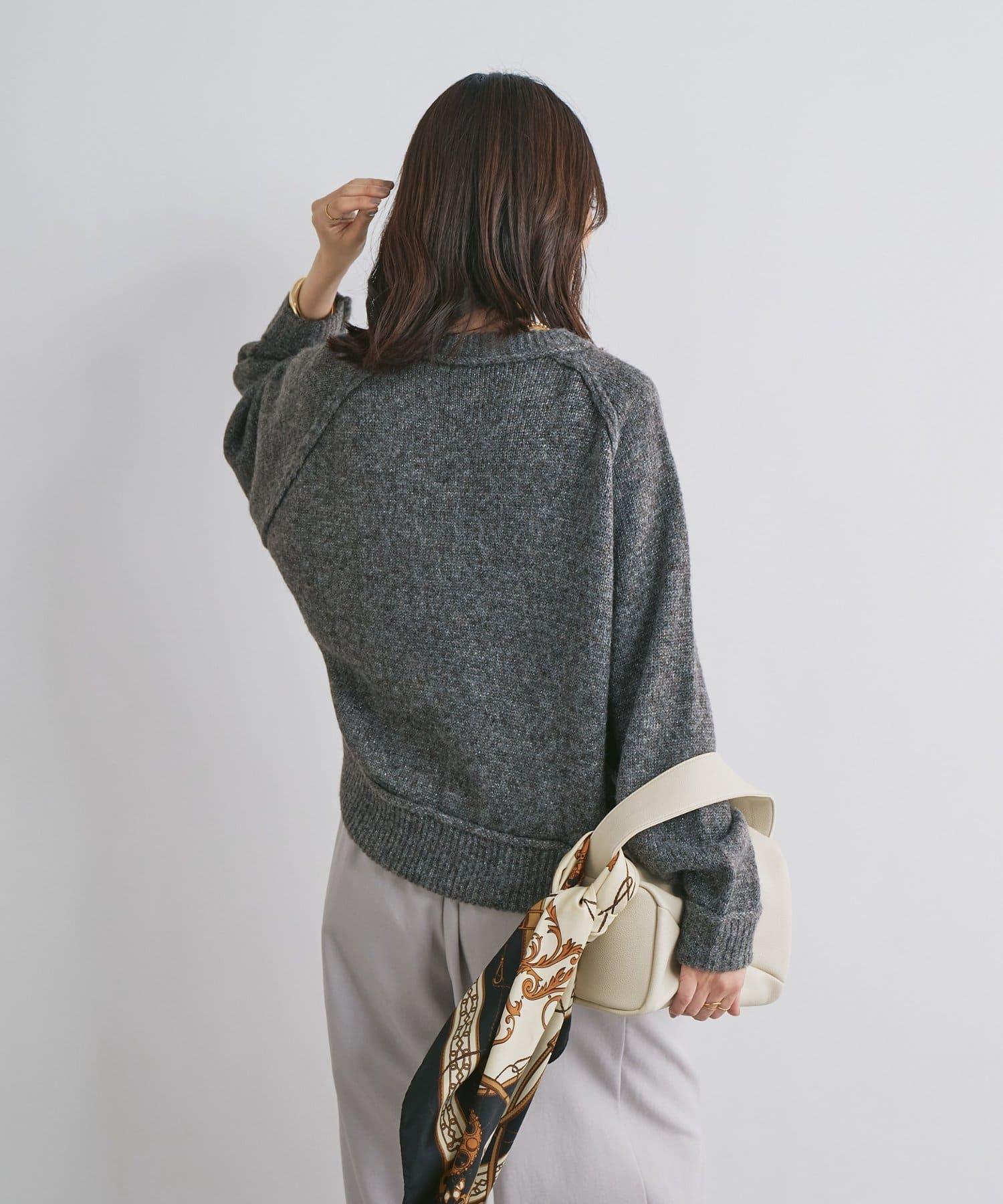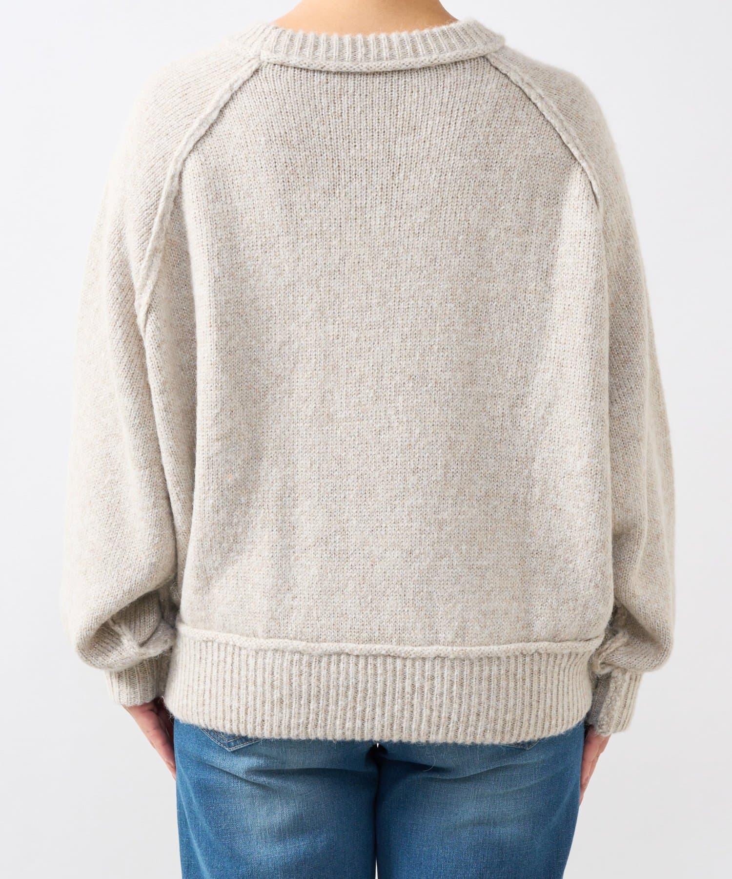 拉鍊亮絲紗線插肩袖針織衫
