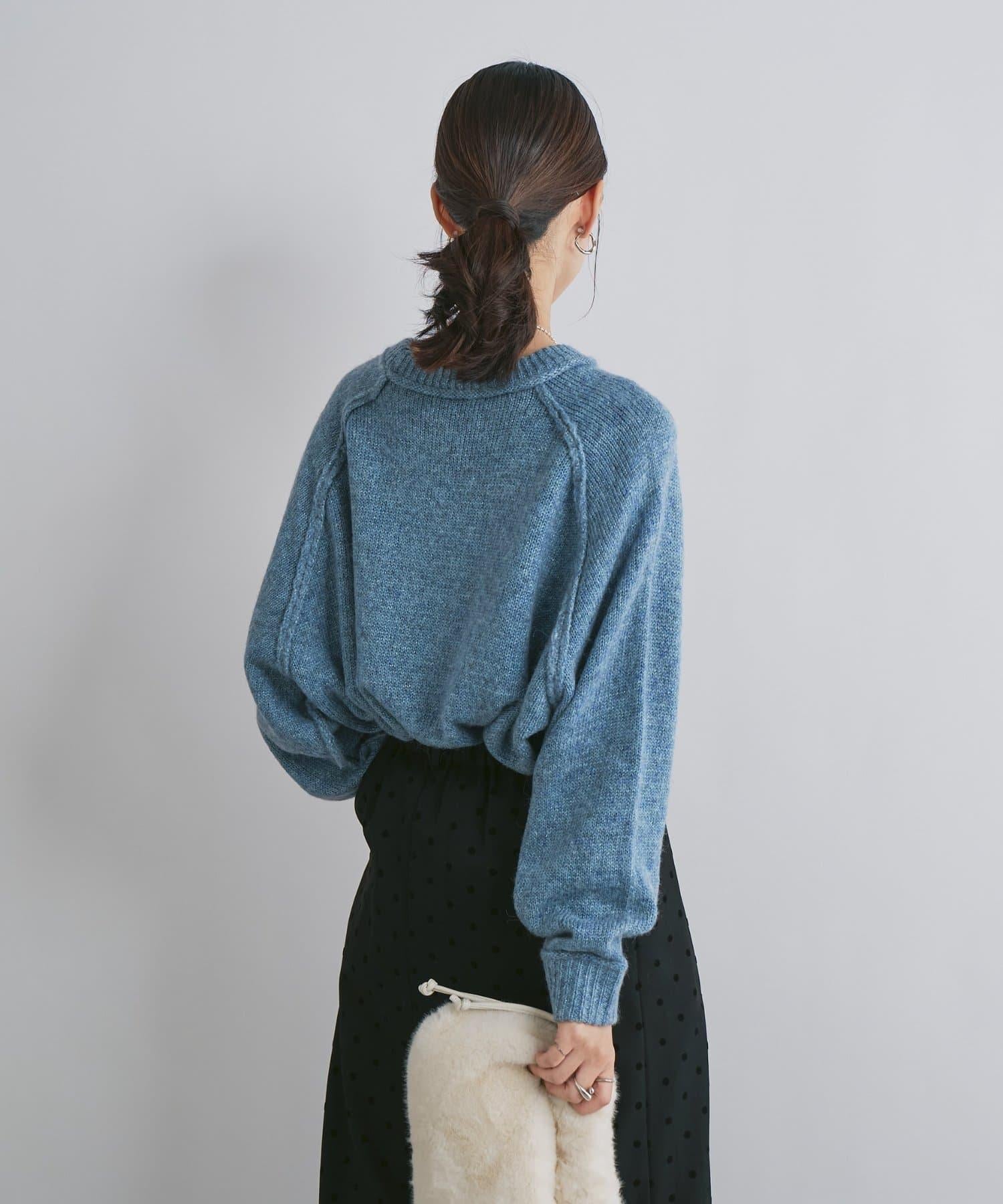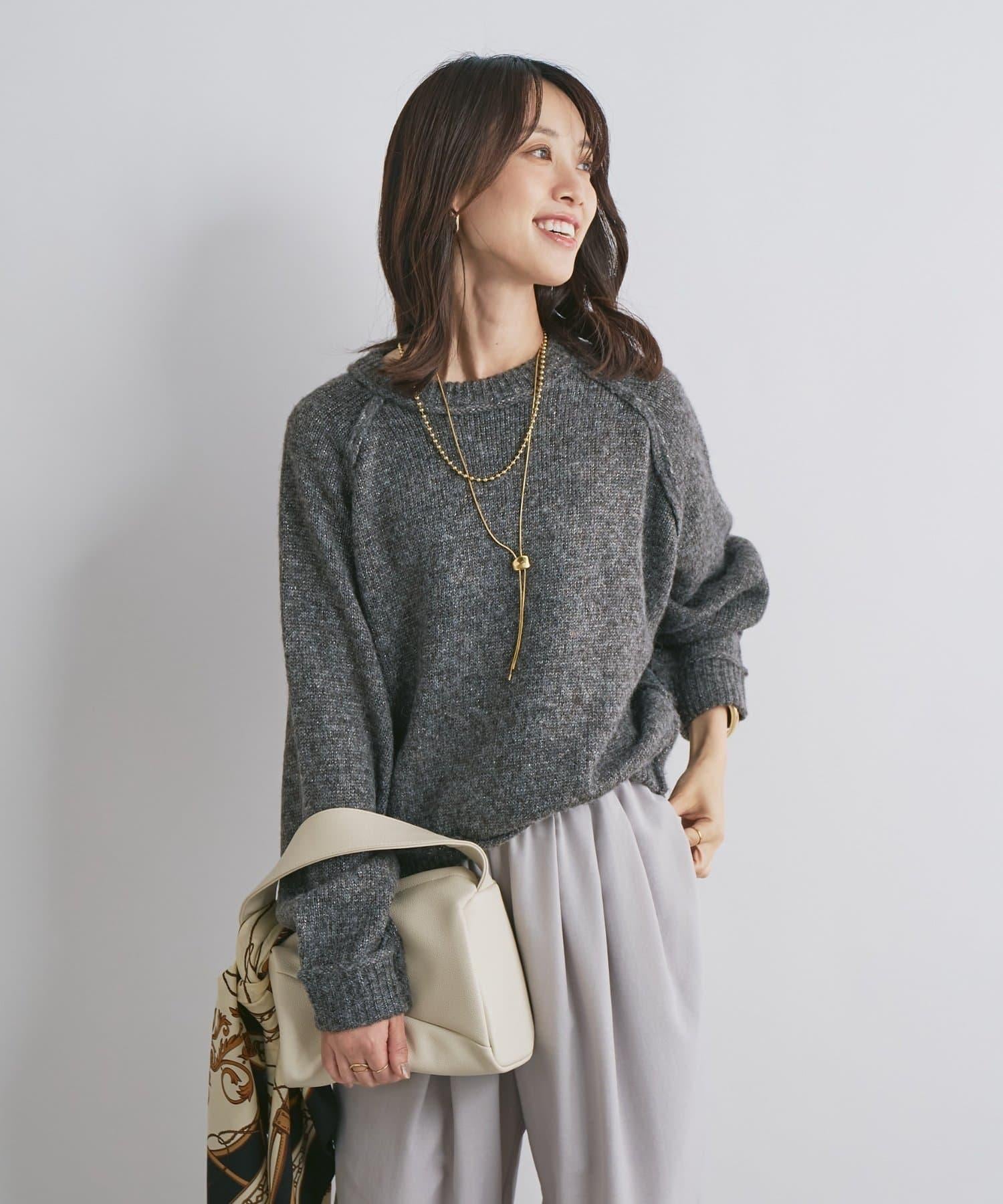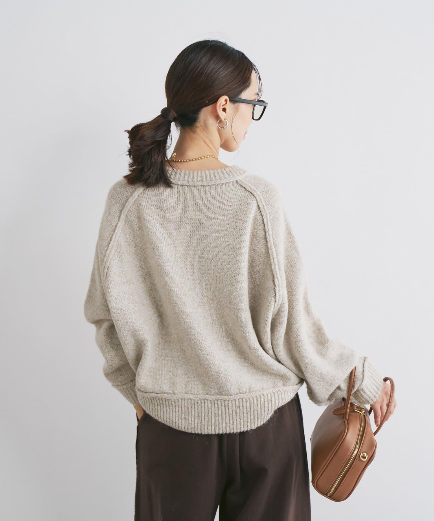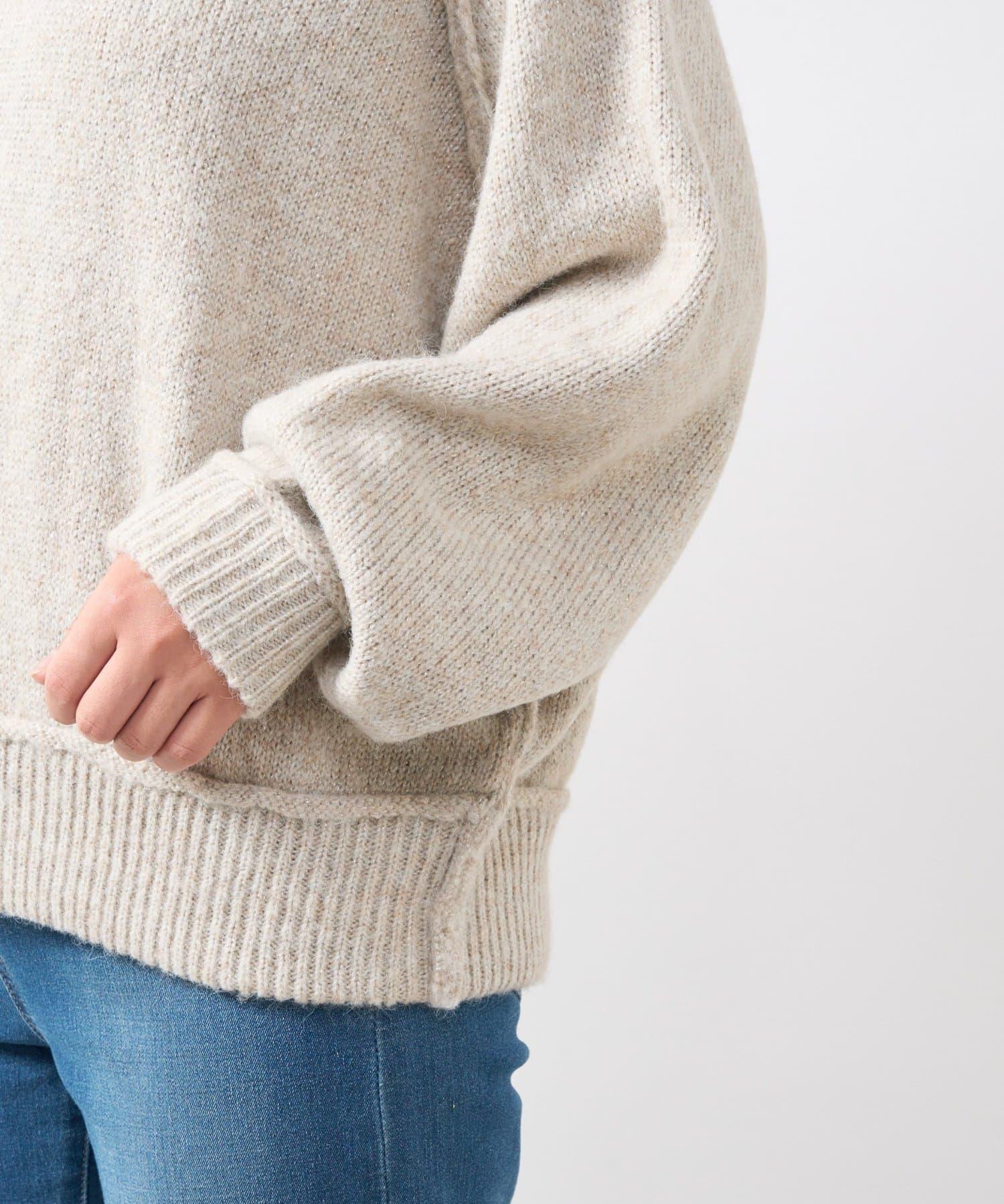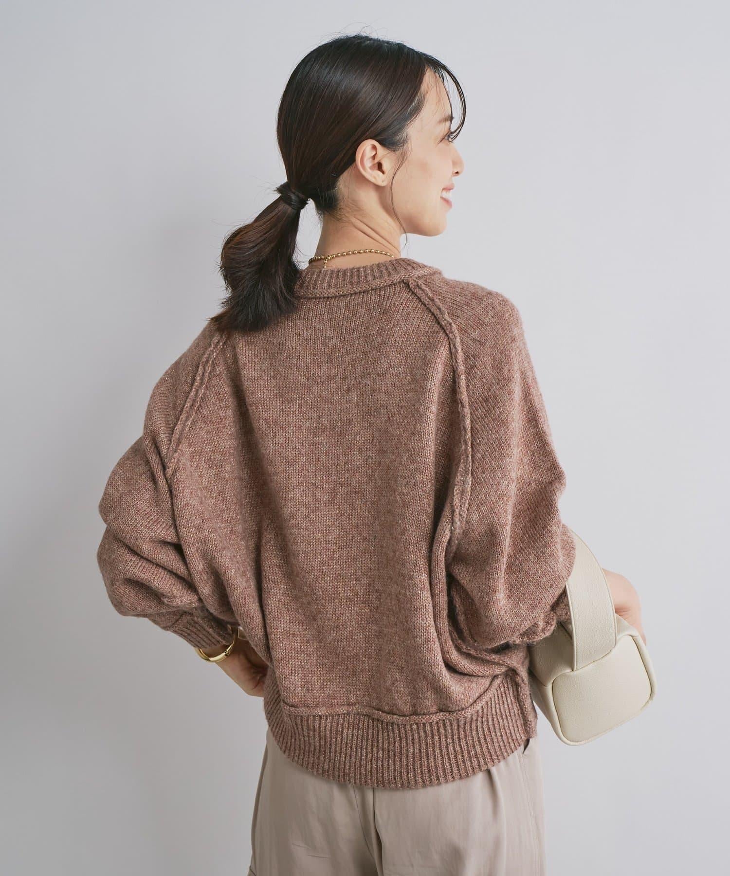 拉鍊亮絲紗線插肩袖針織衫