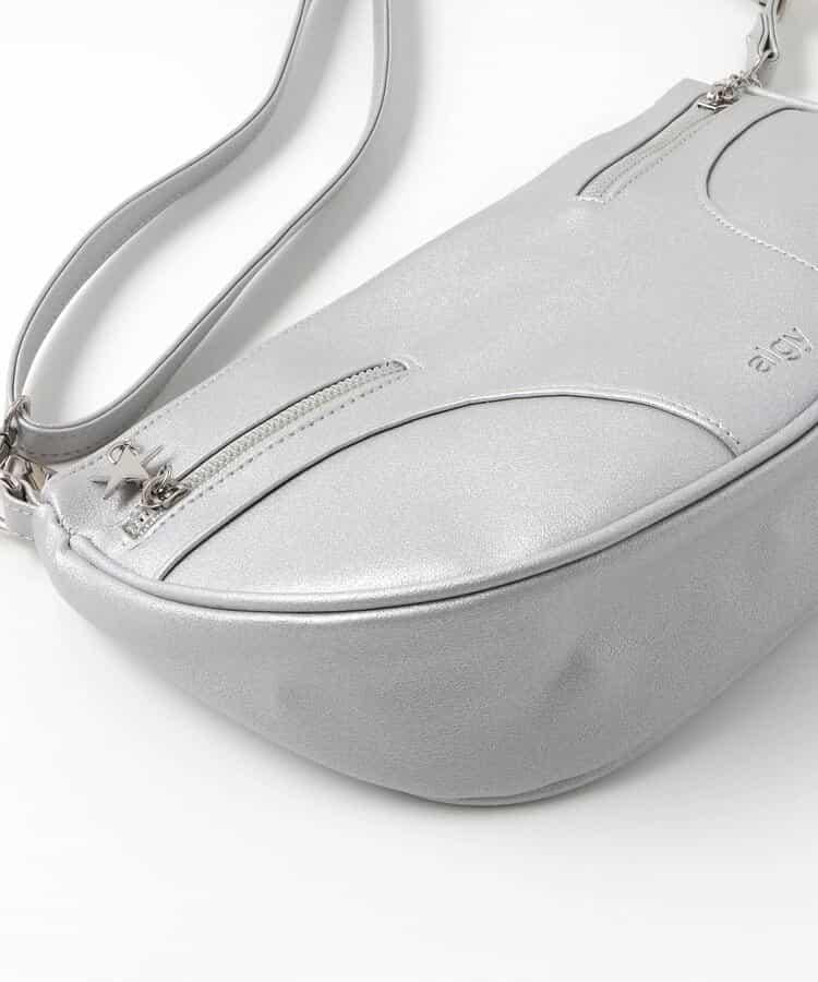 時尚的圓形手袋,配有兩條拉鍊和星星圖案拉環。