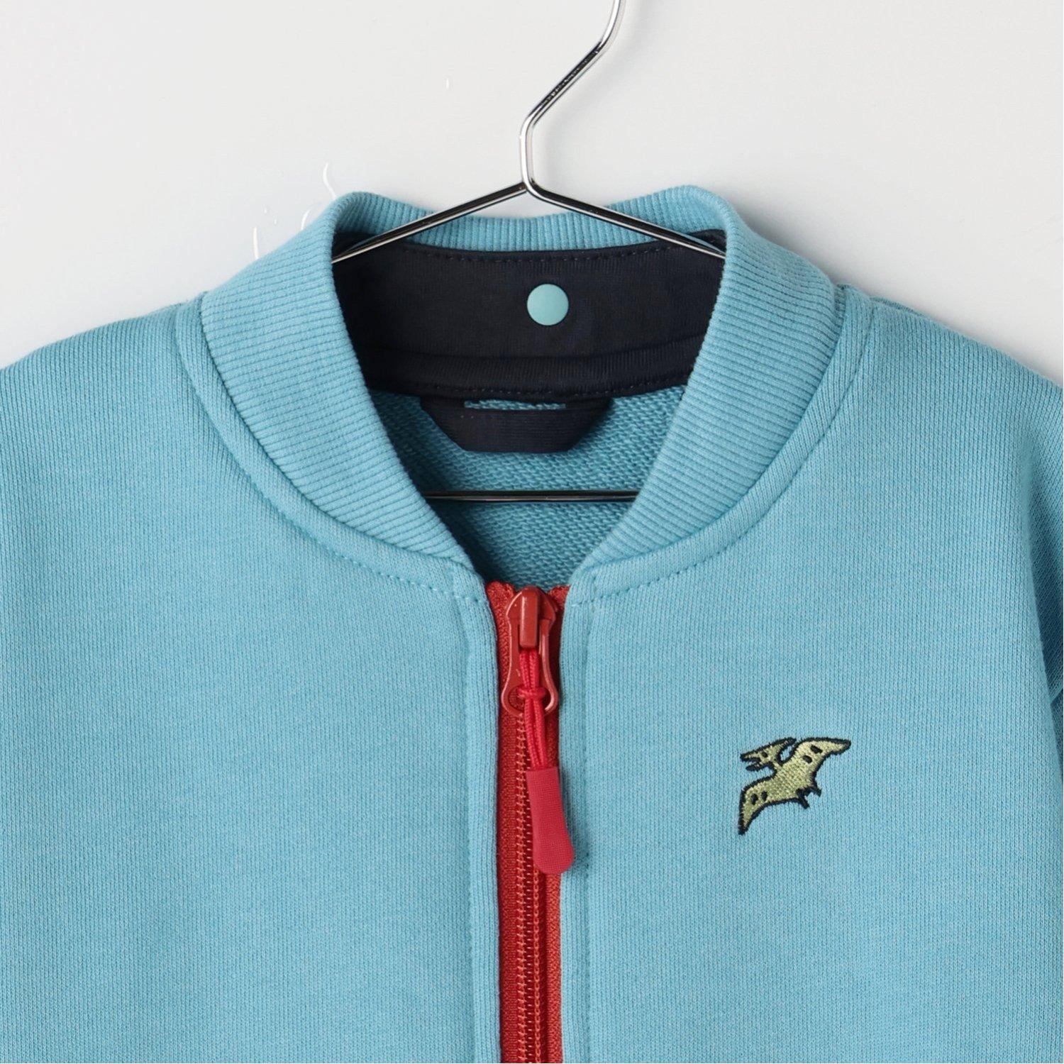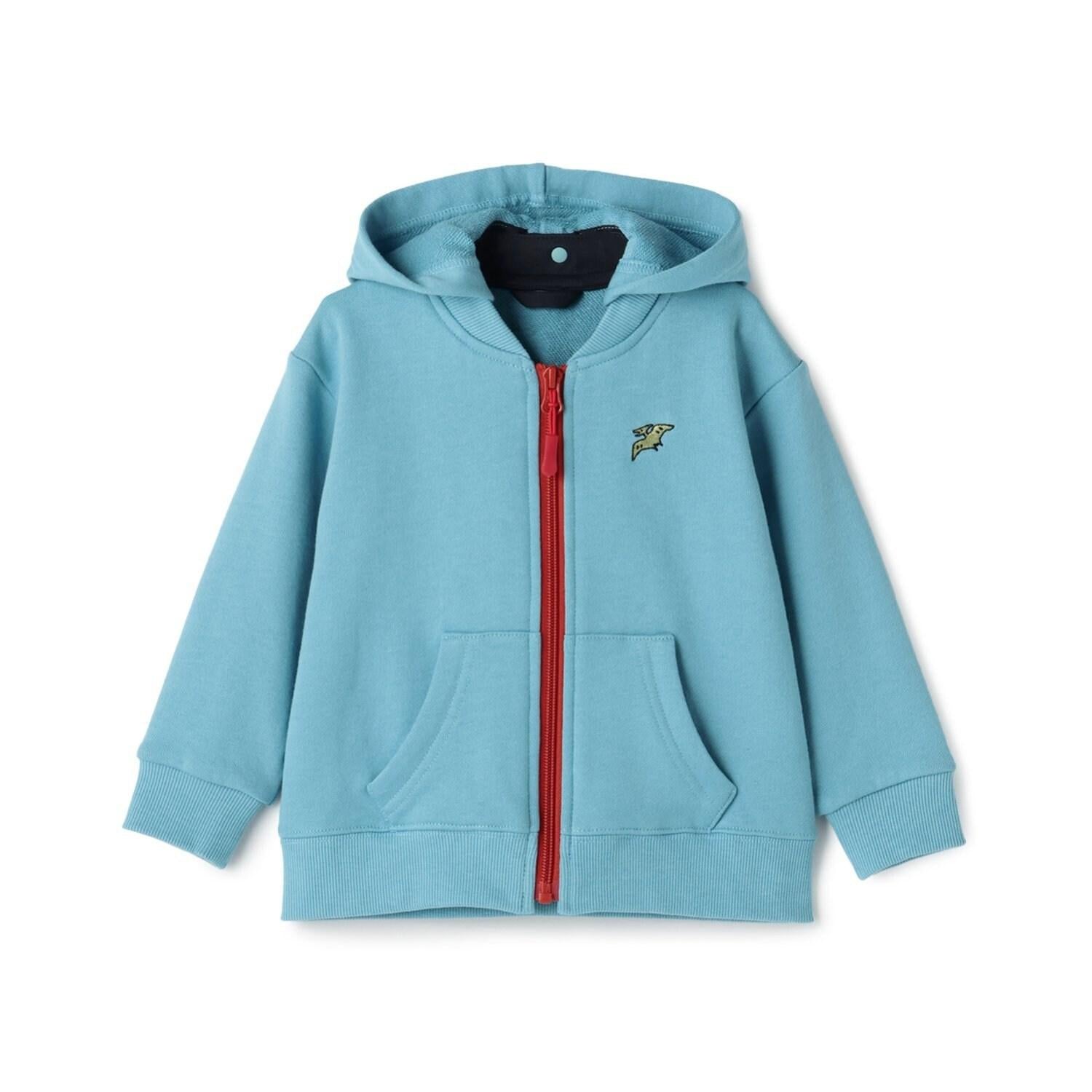 拉鍊的色彩搭配和可愛的恐龍刺繡是這款連帽衫的亮點。
