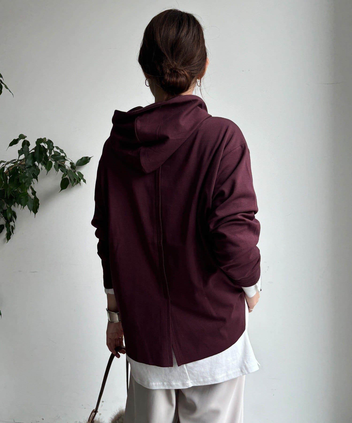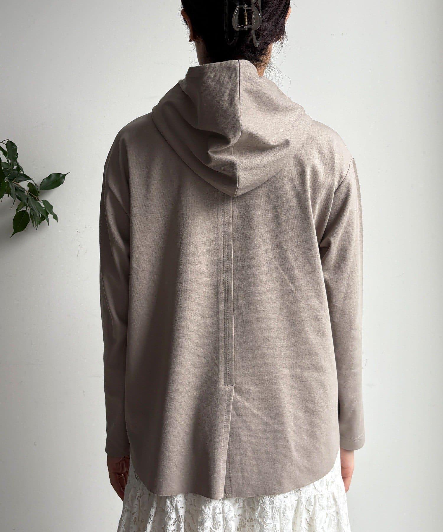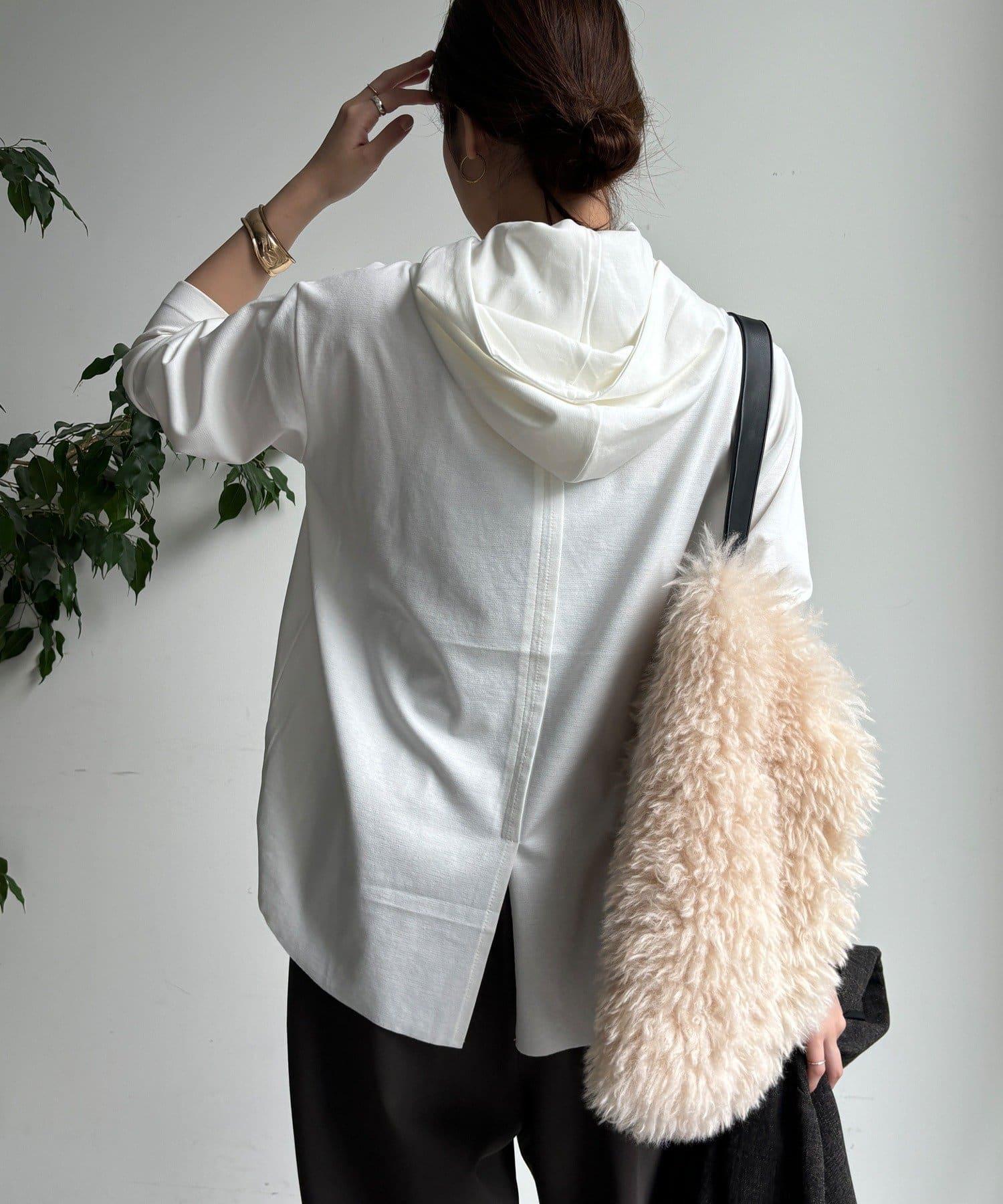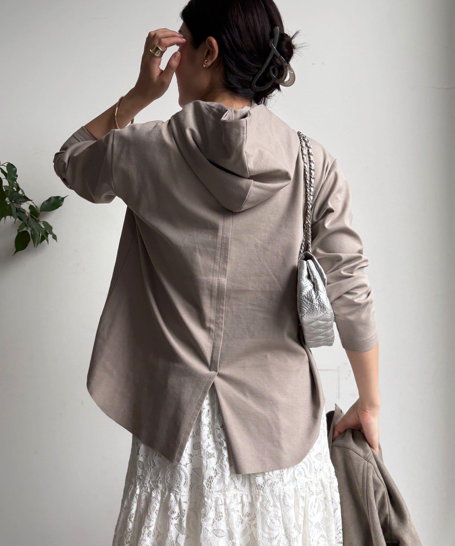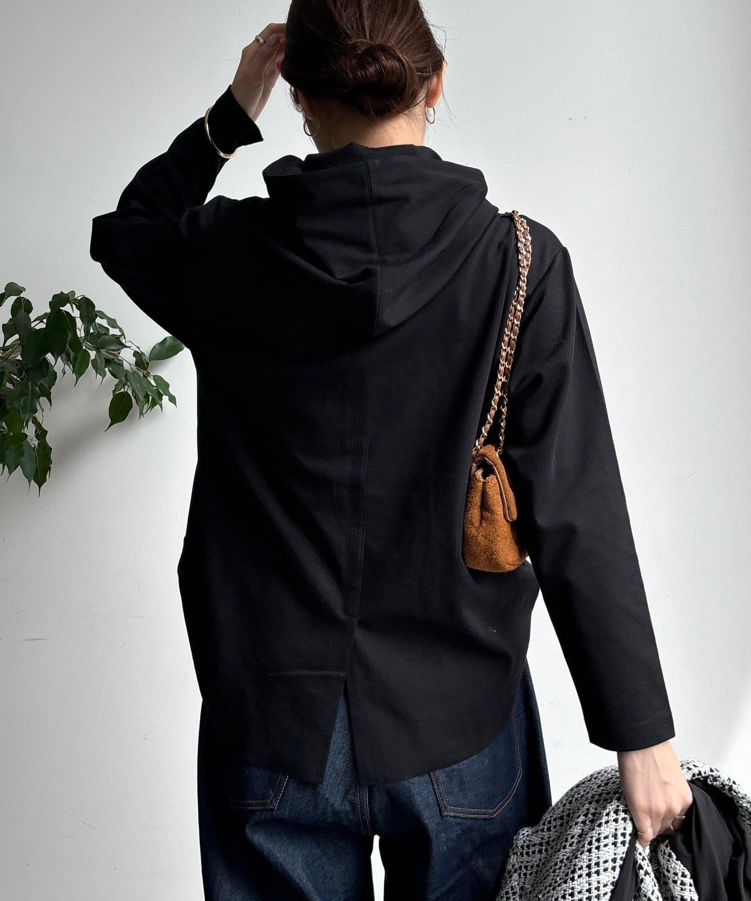 簡單的連帽衫,巧妙的開關和背部開衩設計,時尚感十足。
