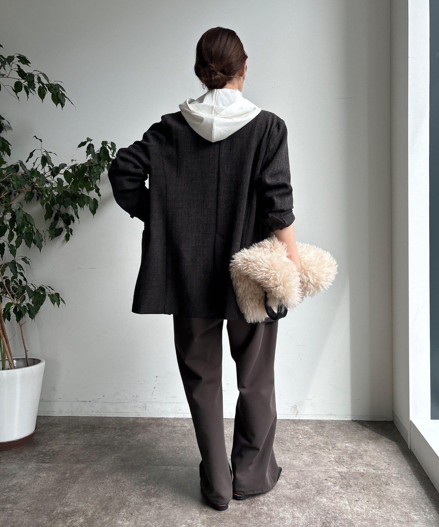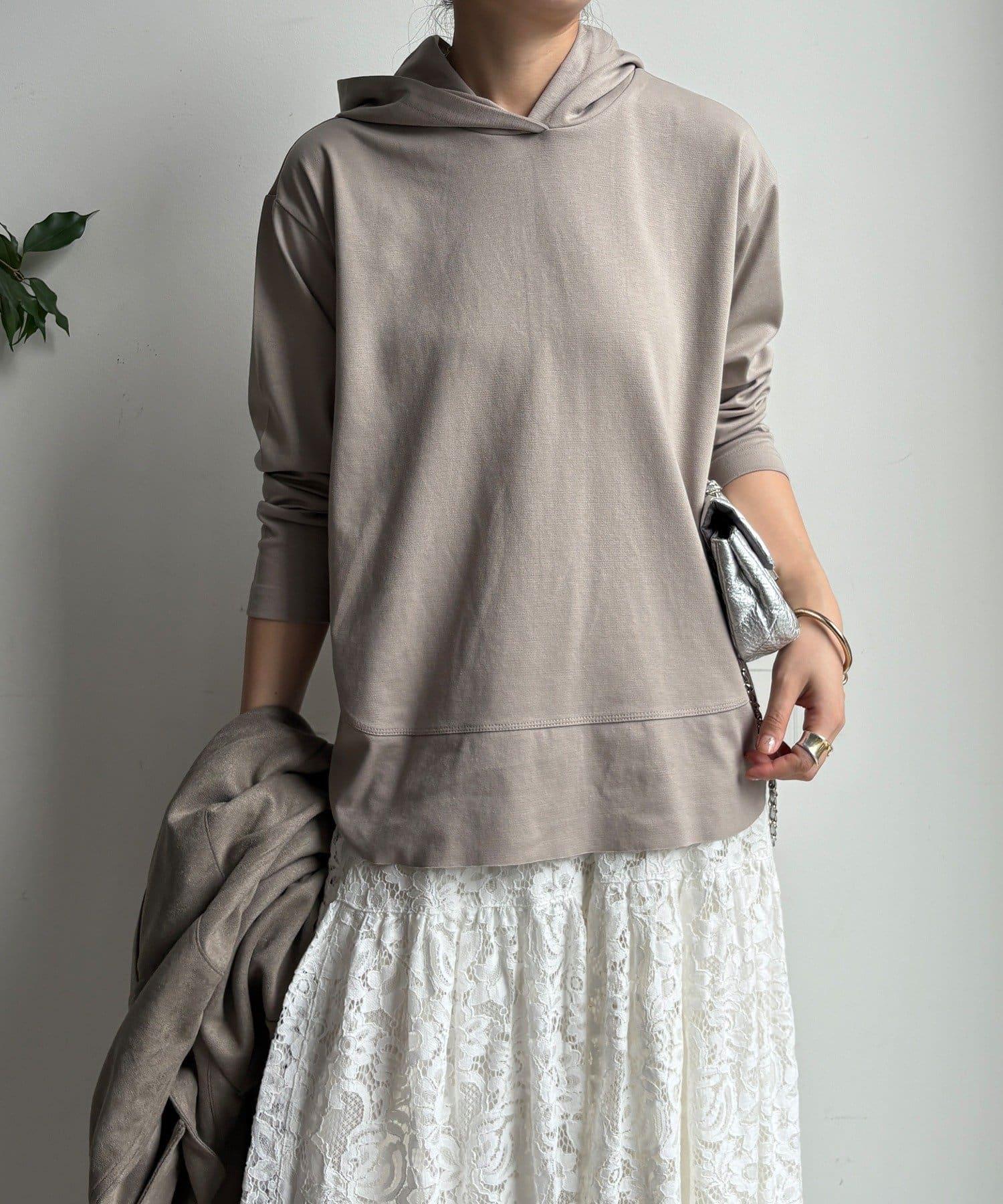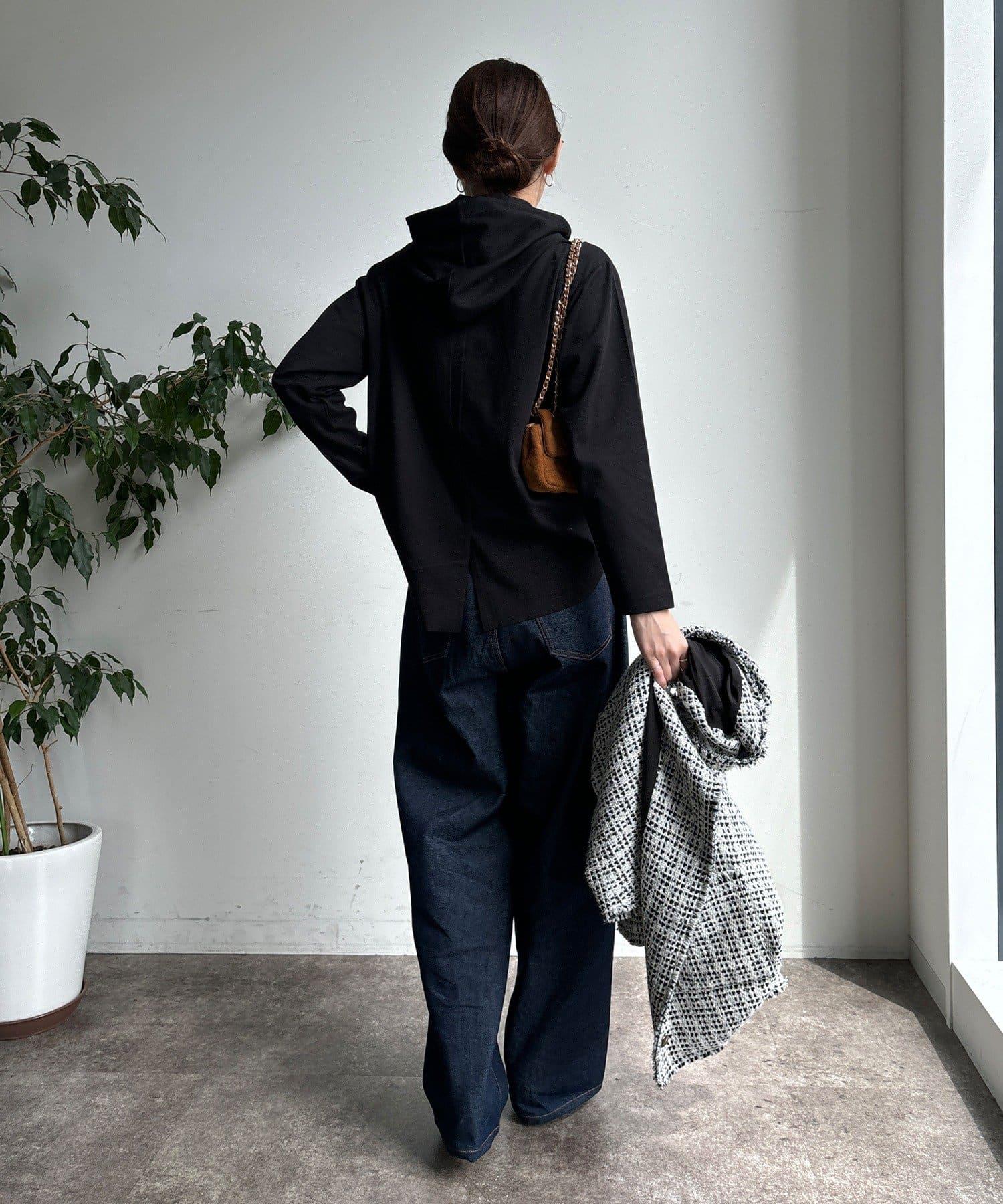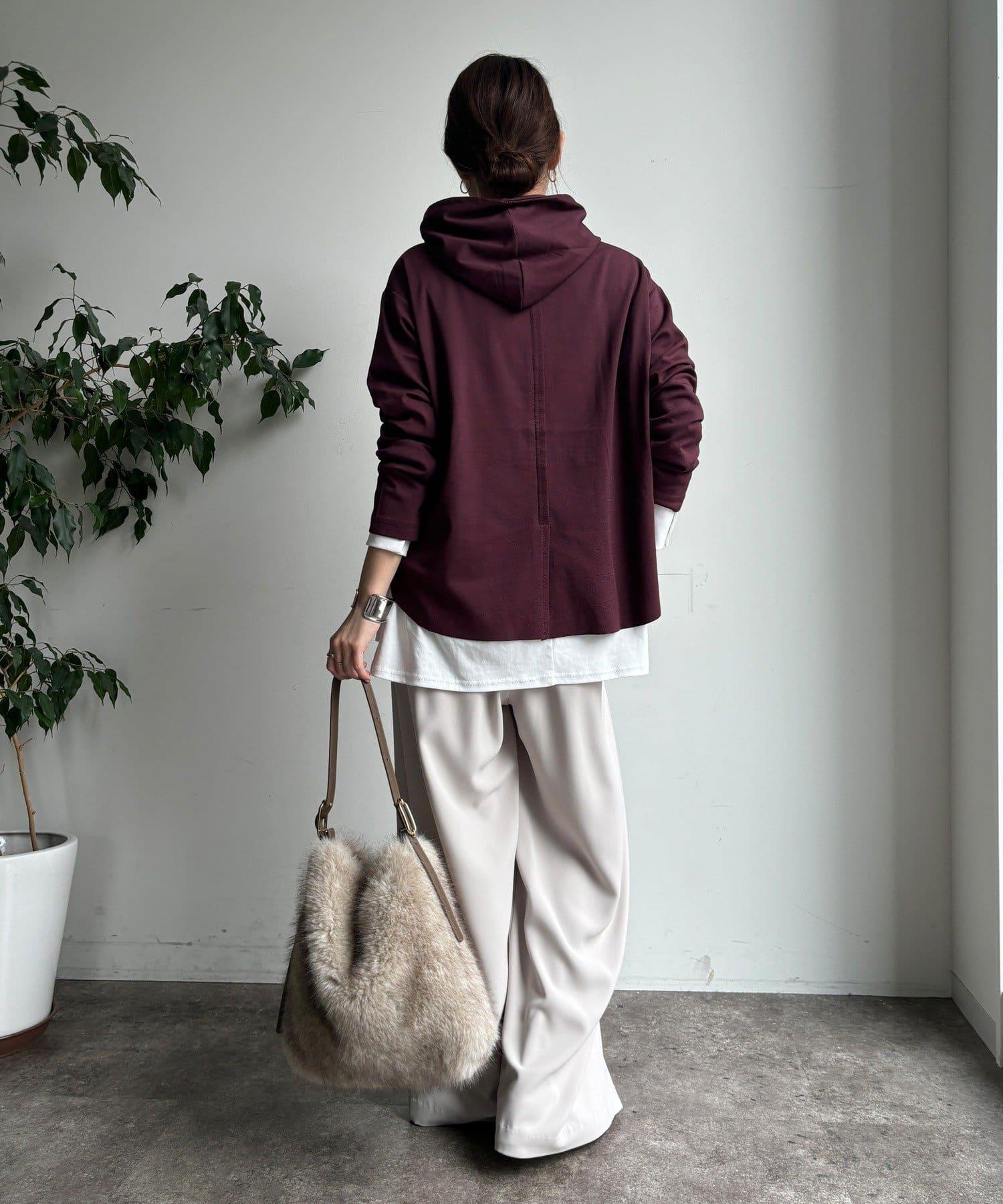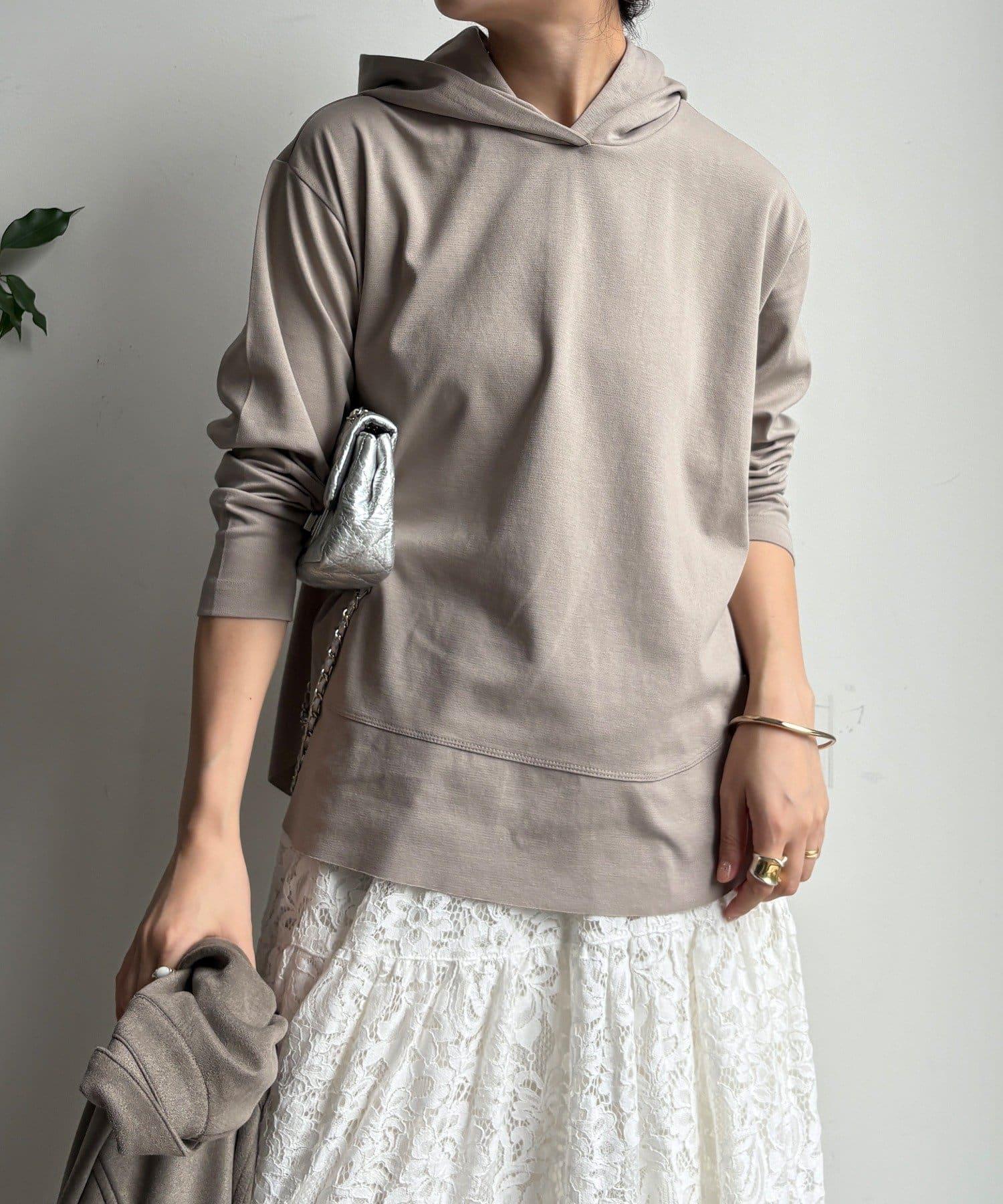 簡單的連帽衫,巧妙的開關和背部開衩設計,時尚感十足。