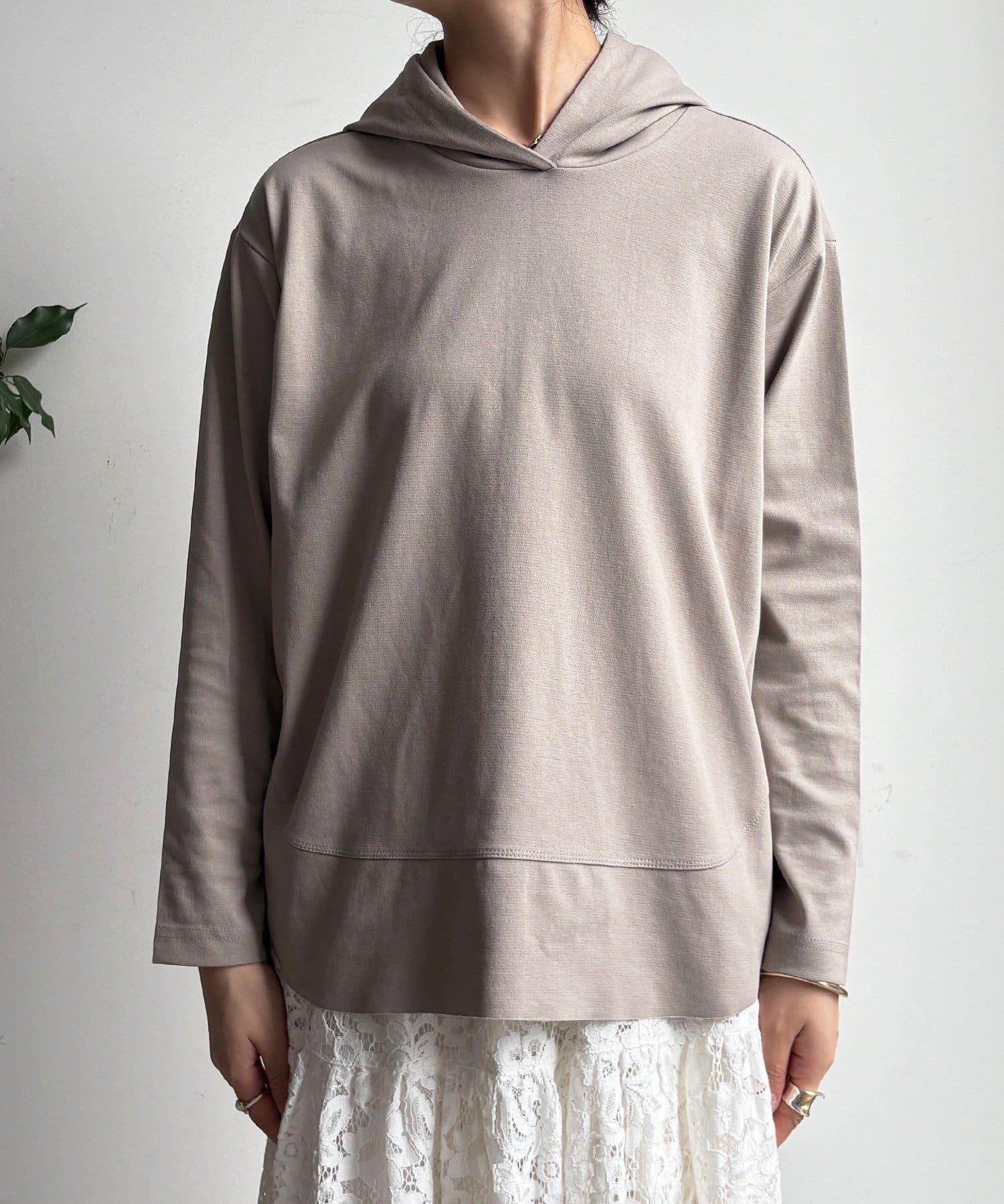 這款連帽衫單色簡約,但前下襬和後背的開關設計和後背的開衩設計十分搶眼。