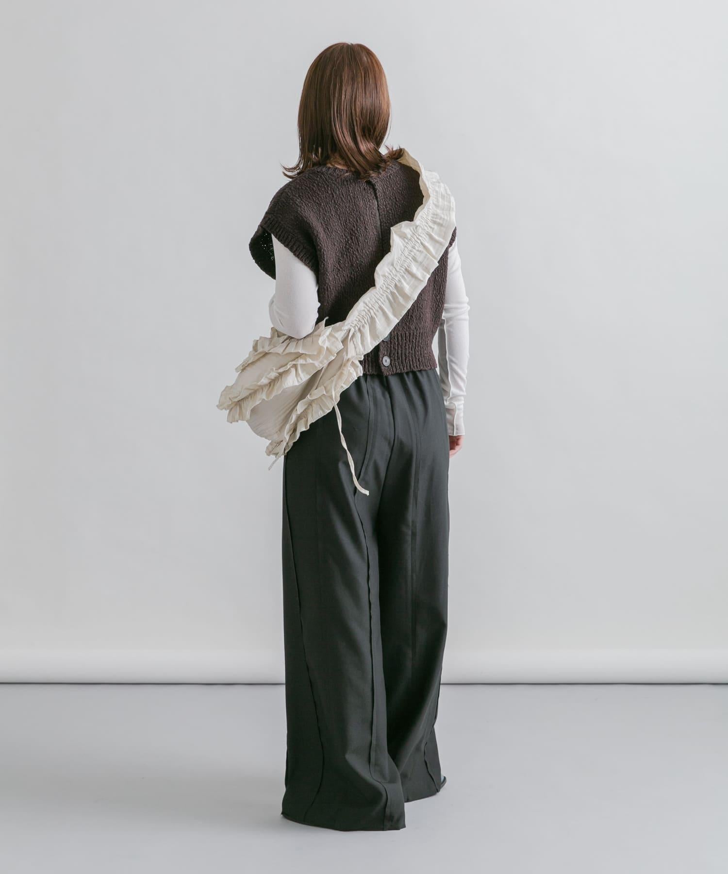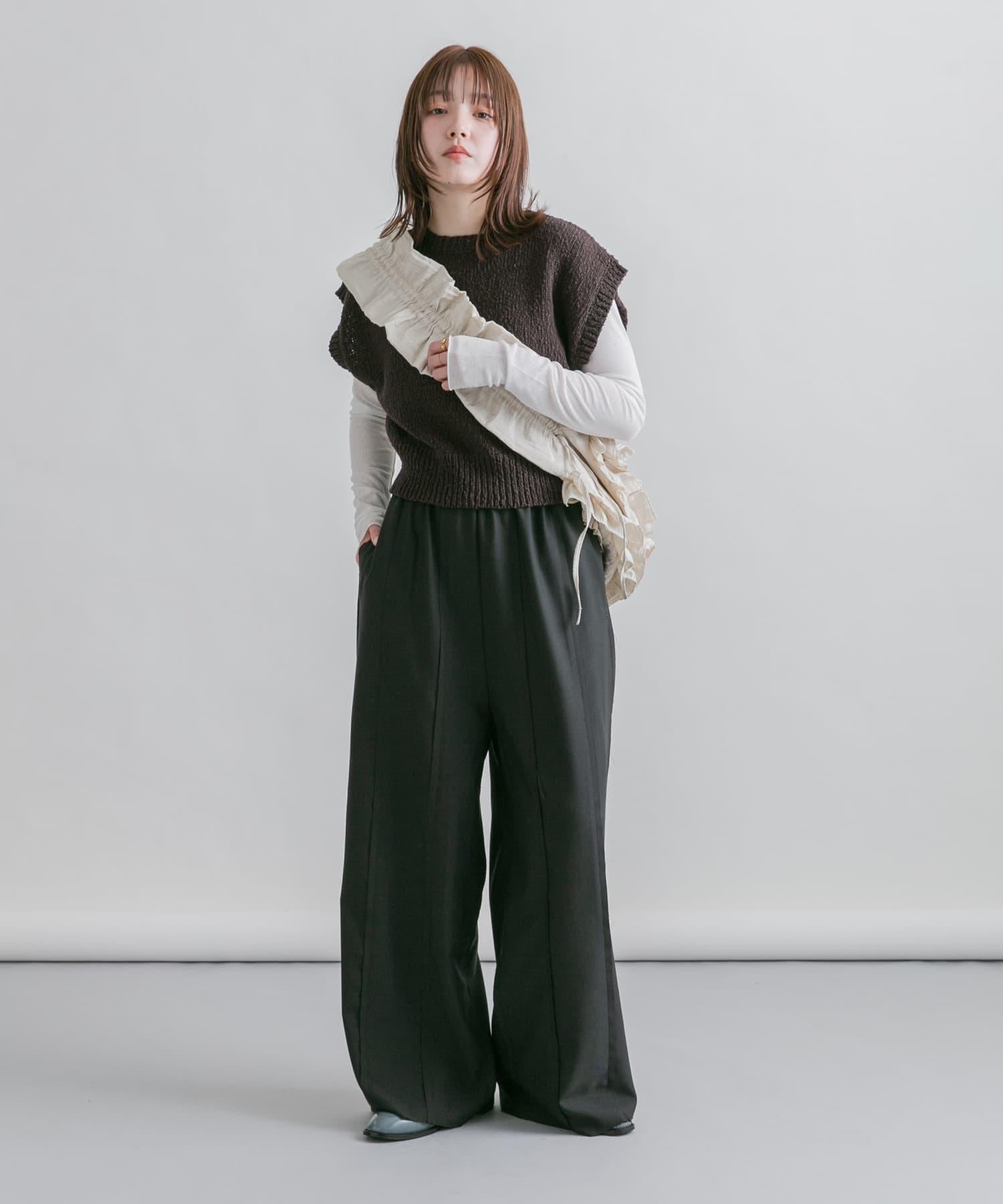 褲子腰部有鬆緊帶,寬鬆合體。這款長褲乍一看很基本,但👍後採用了剪裁設計。寬大的輪廓也營造出陽剛之氣。根據搭配單品的不同,這款長褲可以長期穿著。