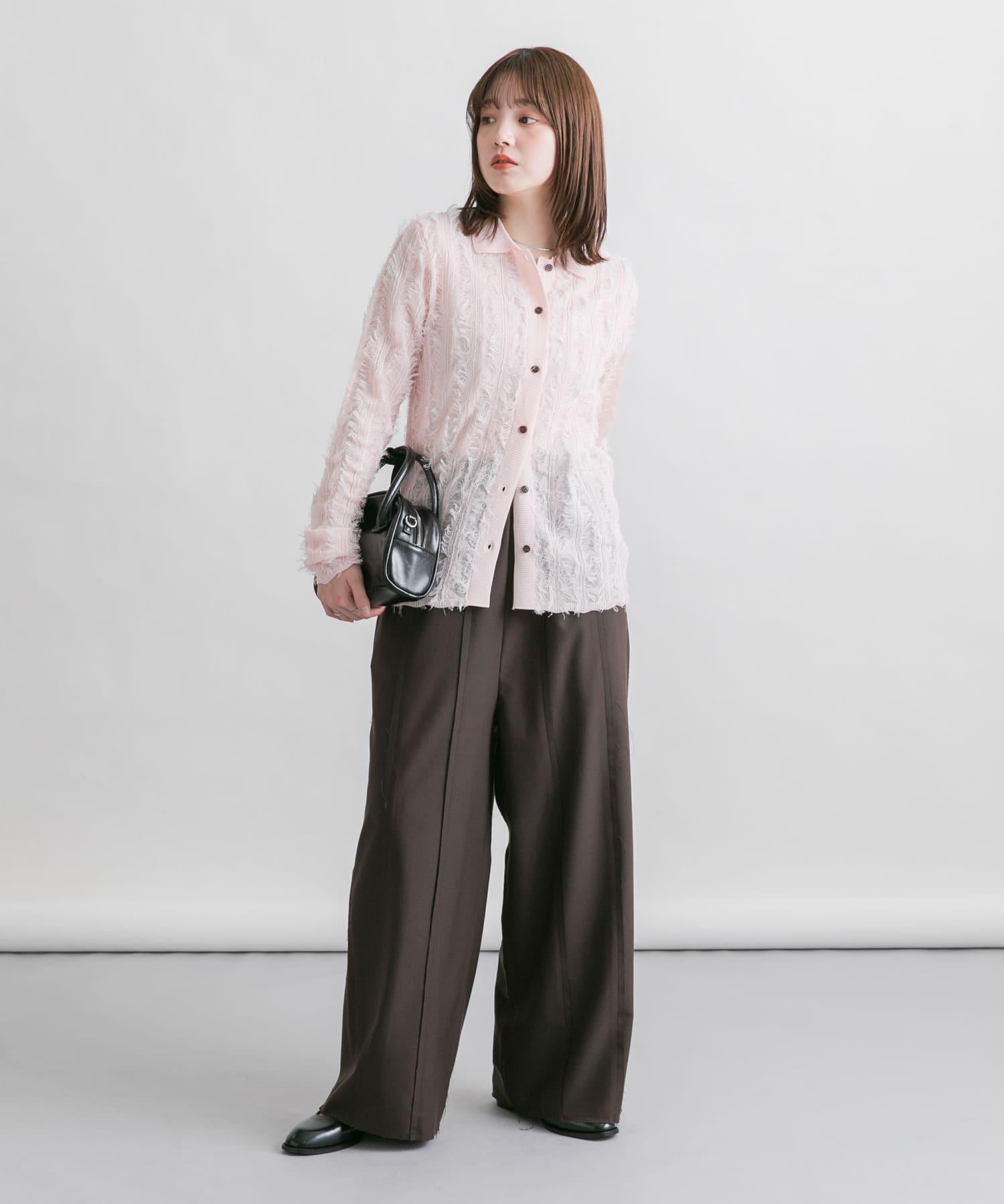 在某些設計中,本產品的邊緣被有意剪掉。在反覆穿著和洗滌後,邊緣可能會脫落,請注意不要強行拉扯,並用剪刀處理。