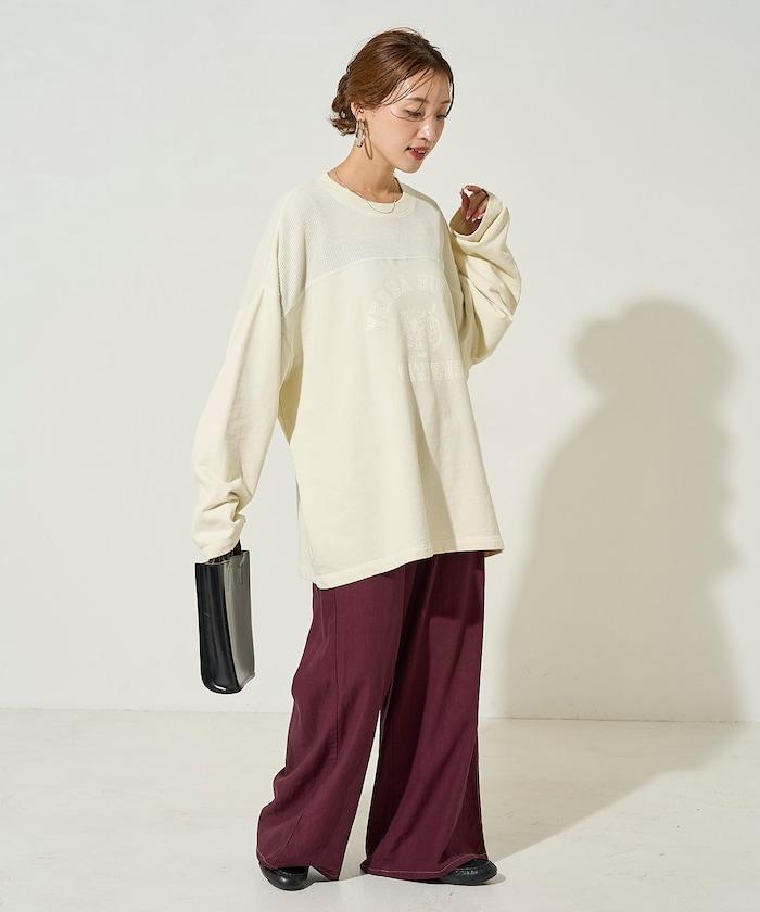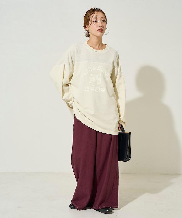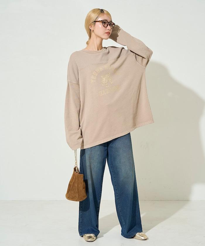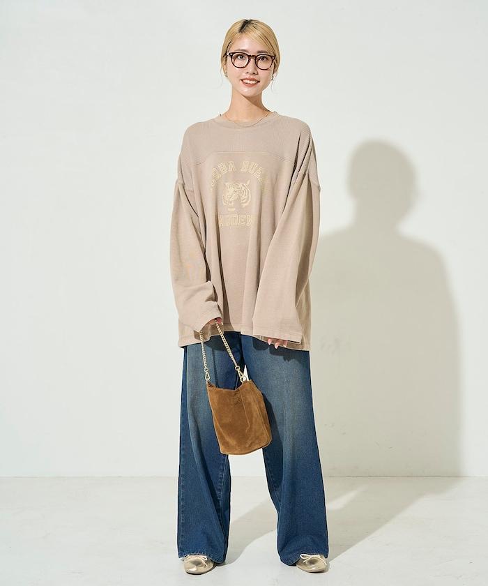 這款印花 T 的存在感很強,可搭配簡單的牛仔褲,給人更精緻的印象。