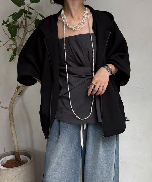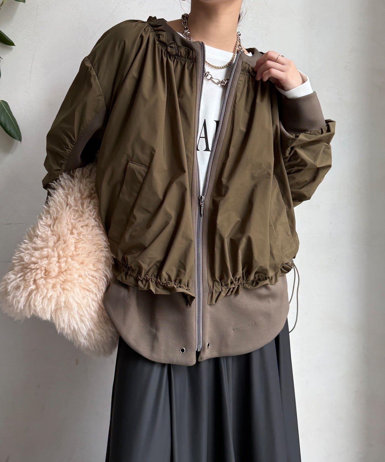 這是一款可切換不同材質的設計罩衫,快速穿上即可完成協調造型!